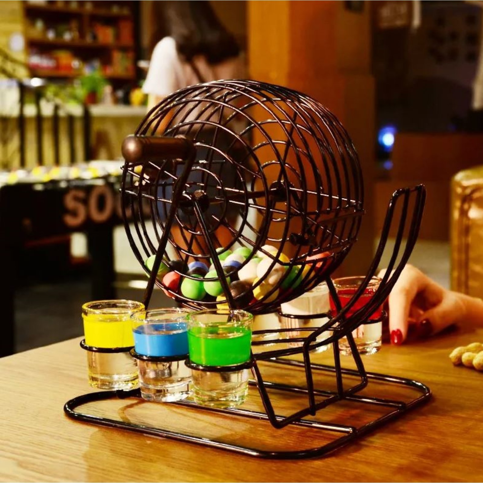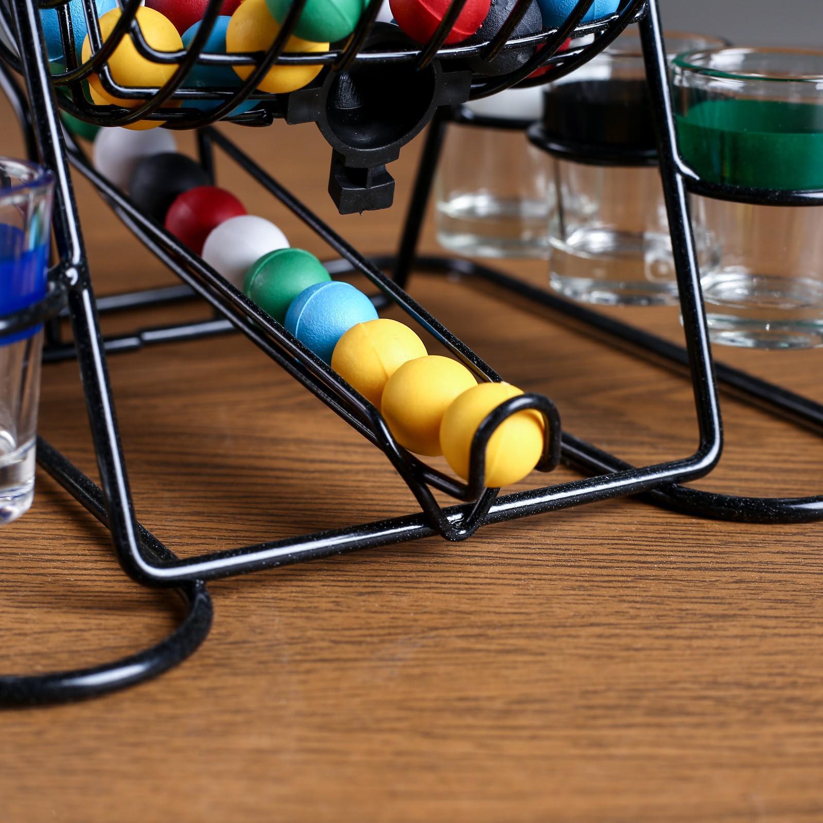 Настольная игра для взрослых «пьяный бинго», 6 стопок, 22 19 19 см. Игра «Спирт-лото» - это барабан с разноцветными шариками внутри и 6 рюмок, по цвету совпадающих с шарами. Участники по очереди вращают барабан и вытаскивают по шарику... Тот игрок, цвет рюмки которого совпадает с цветом вытянутого шара, выпивает ее содержимое. Кстати, единого мнения, что же наливать в рюмку – водку, чай, минералку, спирт, самогон, виски – нет. Главное – успеть перейти на минералку! Возраст:От 18 лет|Количество игроков:4 - 6 игроков|Жанр игры:Алкогольная|Страна:Китай  развернуть описание ▼