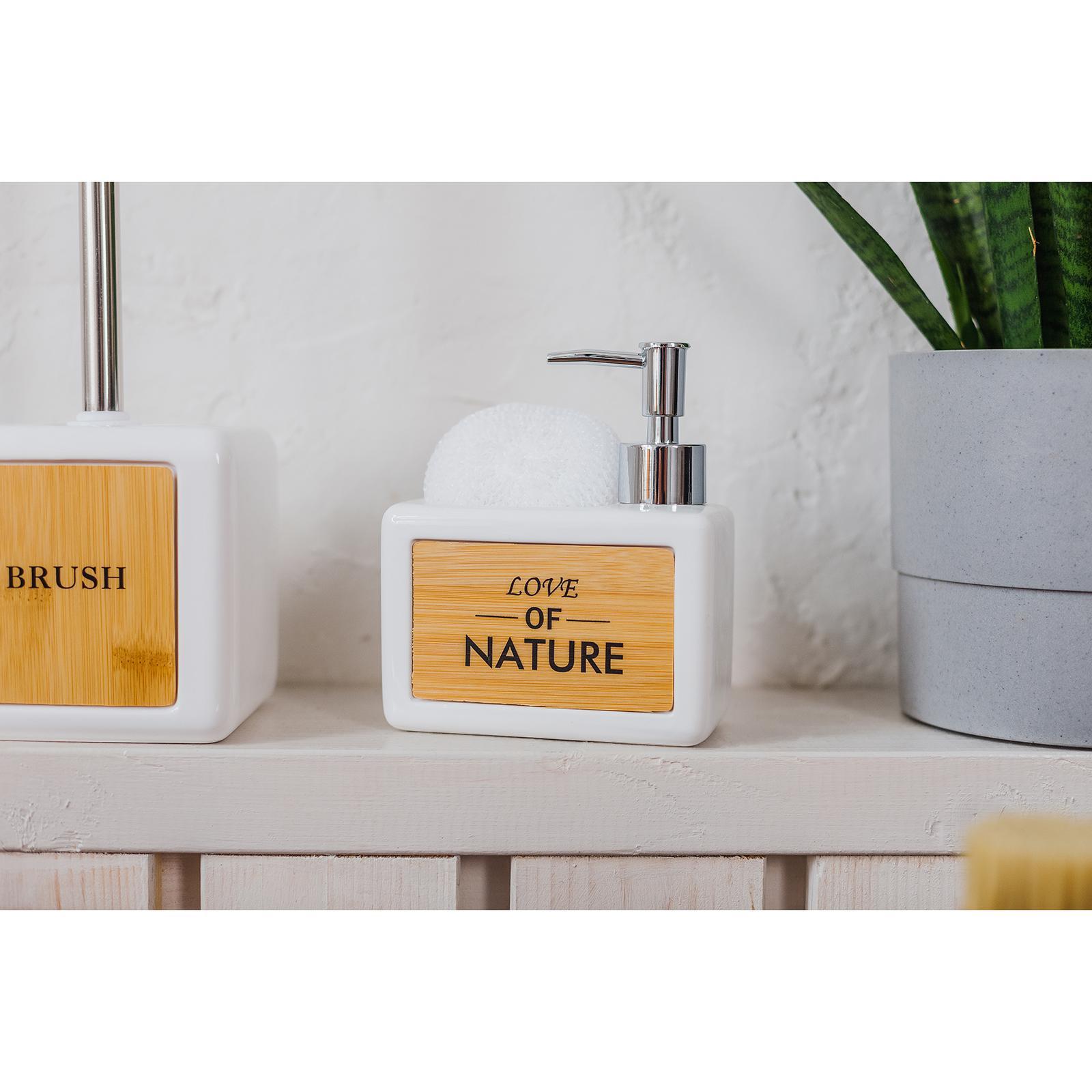 Дозатор для моющего средства с подставкой для губки savanna «природа», 500 мл, цвет белый. Дозатор для моющих средств SAVANNA “Природа” – это отличное решение для Вашей кухни. Он выполнен из качественных и прочных материалов: дерева, керамики и пластика. Стильный дизайн и натуральные оттенки позволяют ему гармонично вписаться в любой интерьер. Преимущества: Объем дозатора составляет 500 мл, что позволяет Вам экономно расходовать моющее средство. В комплекте идет керамическая емкость для моющего средства и подставка для губки. Дозатор очень прост в использовании и установке. Он оснащен удобным механизмом для подачи моющего средства, что позволяет избежать лишних капель и подтеков. Также стоит отметить, что дозатор SAVANNA легко моется, не боится влаги и перепадов температур. Забота о Вашем здоровье и чистоте на кухне – наша главная задача! Цвет: Белый parts count: 0 Объём, мл: 500 tnved: 6912008500 Тематика: Однотонная Материал: Дерево Материал: Керамика Наличие губки/щётки: Да Настенные: Нет Тип: Дозатор (диспенсер) Запрет реализации по сегментам: 00000000485 Способ заправки: Наливной Механизм управления: Ручной  развернуть описание ▼