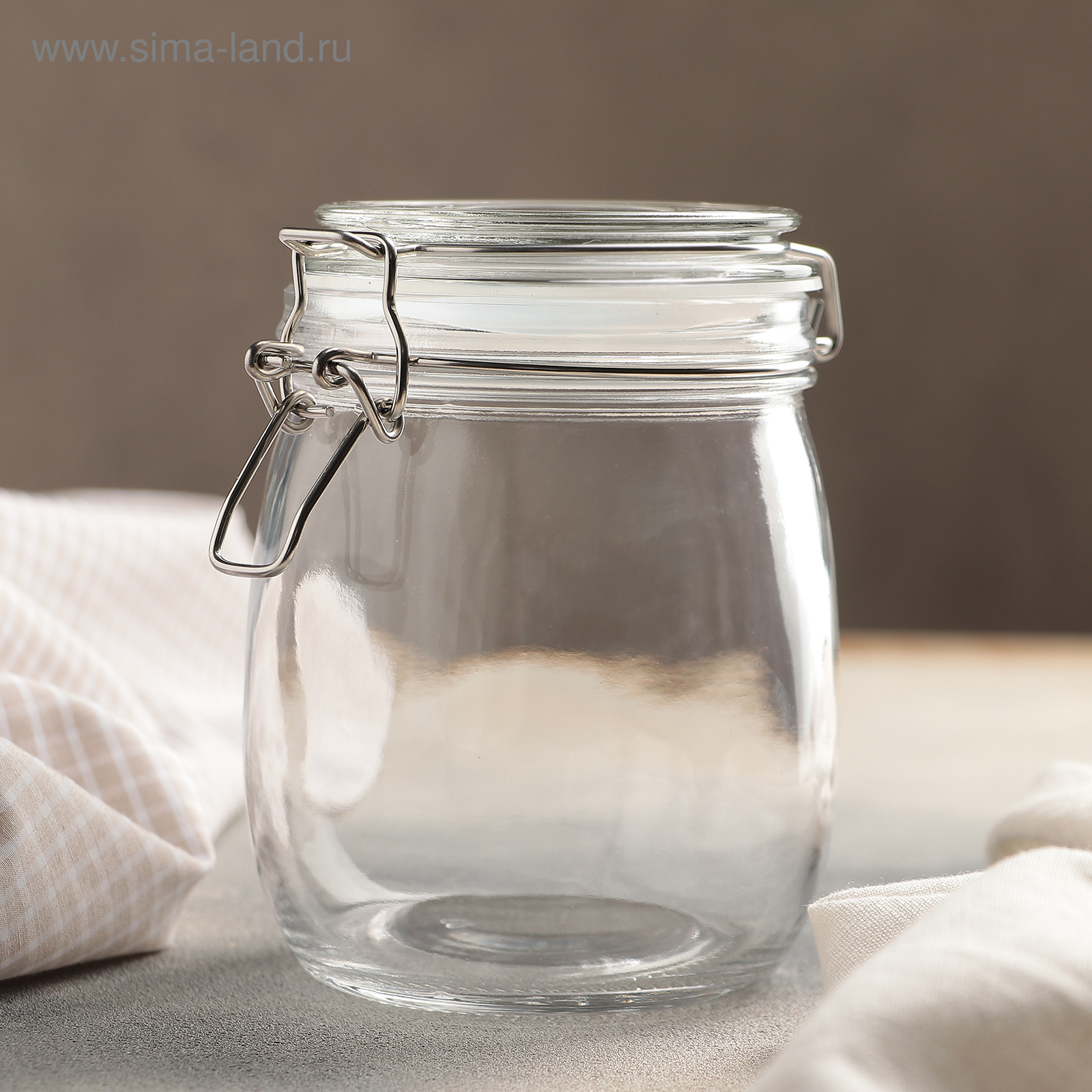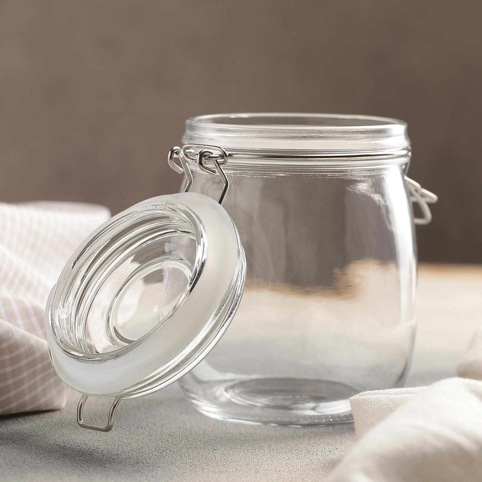 Банка стеклянная для сыпучих продуктов с бугельным замком доляна «оптима», 900 мл, 14,5x10,5x13,5 см