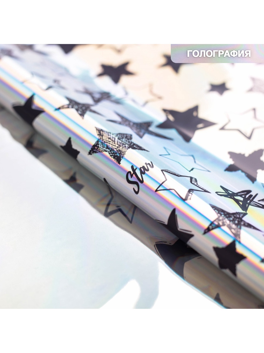 Плёнка упаковочная с голографией starry sky, 100 70 см. Размер, м:0.7 х 1|Цвет:Серебристый|Цвет:Чёрный|Плотность, г/м :60|Тематика:Звёзды|Тематика праздника:Универсальная тематика|Вид:В листах|Страна:Китай