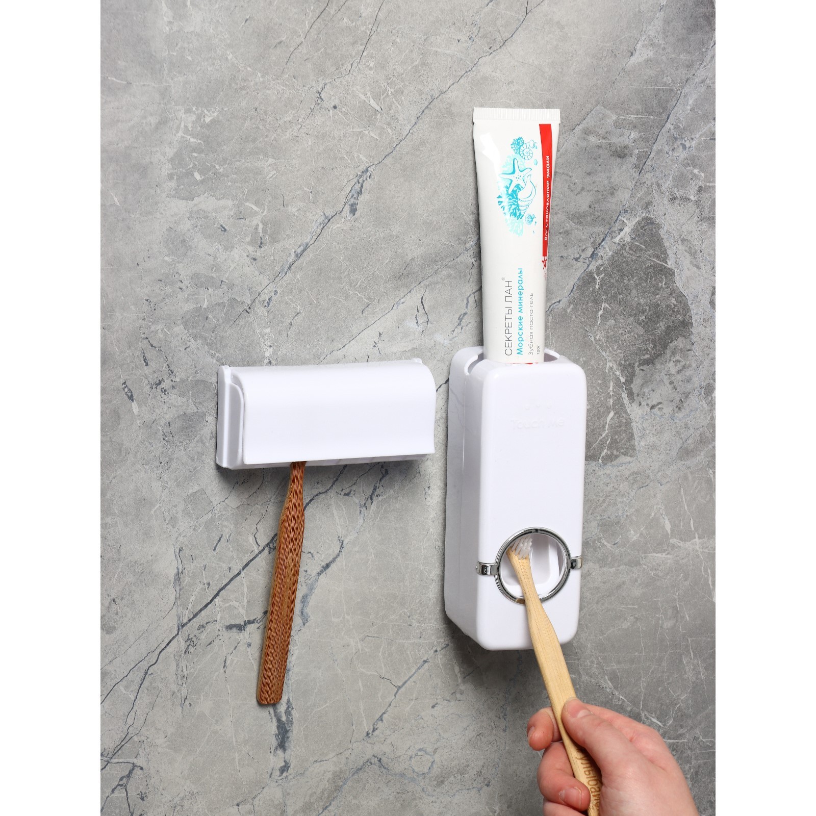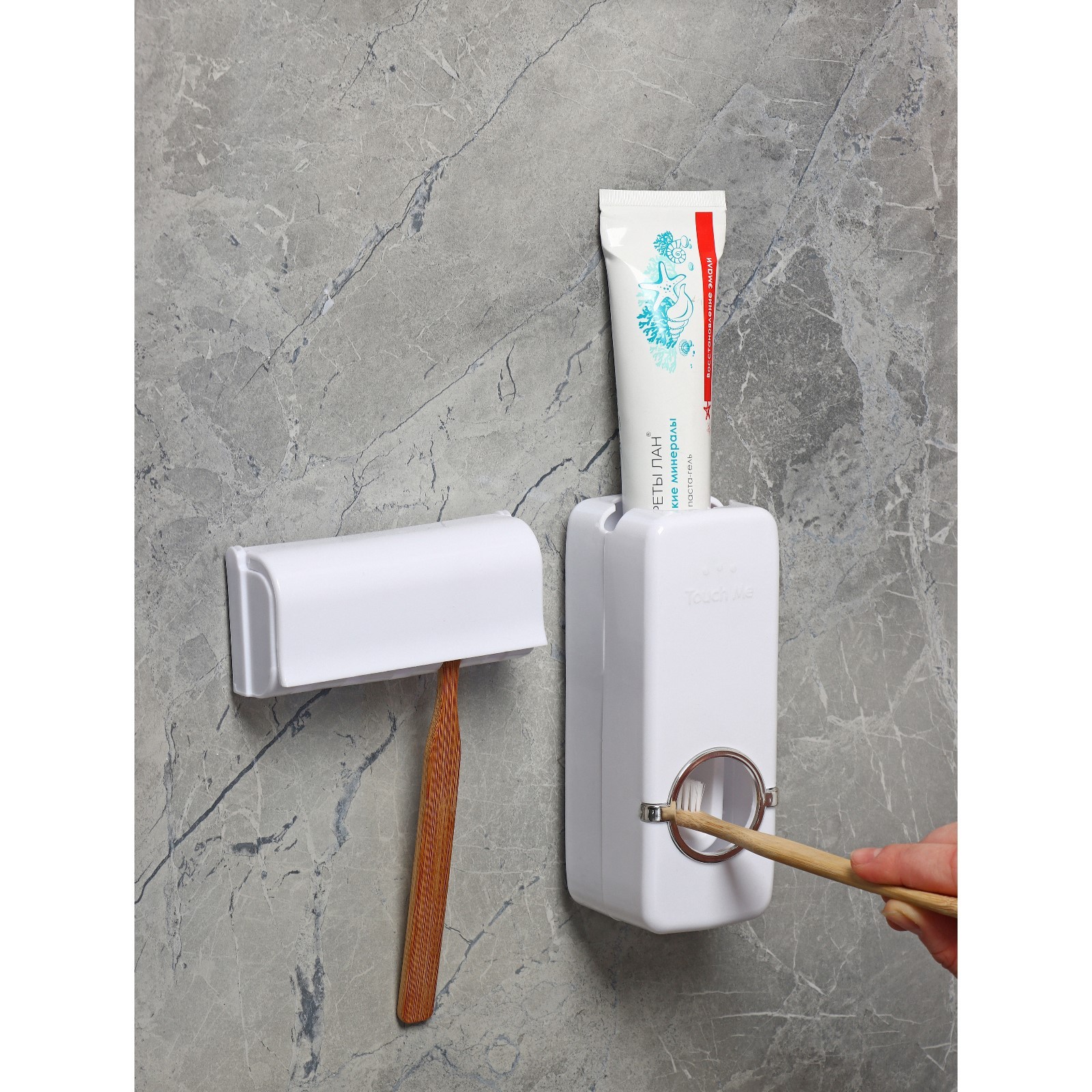 Держатель для зубных щёток и выдавливатель для зубной пасты доляна, 15,5x6x6 см (для пасты), 11,5x5,5x3,5 см (для щёток), цвет м