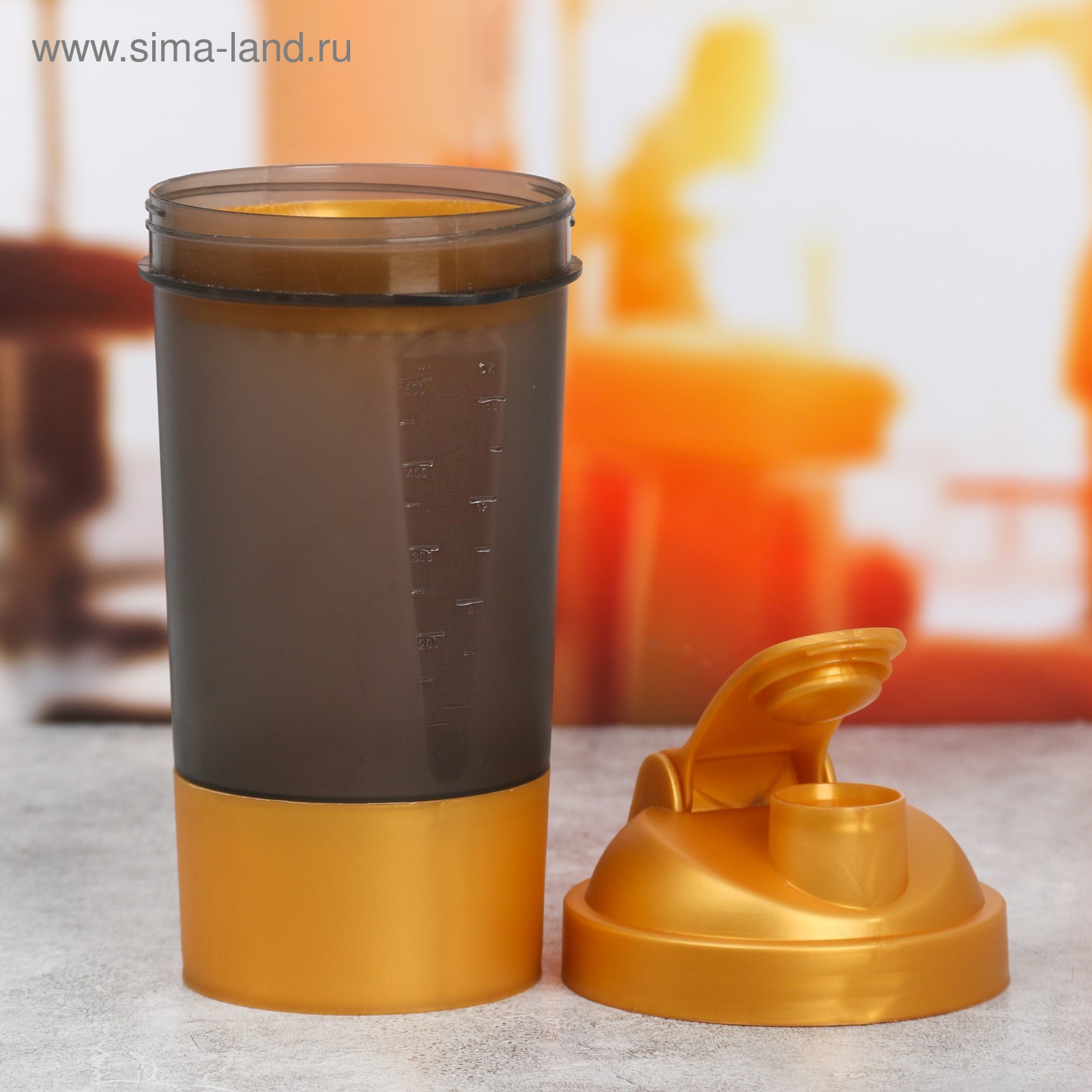 Шейкер спортивный с чашей под протеин, чёрно-золотой, 500 мл