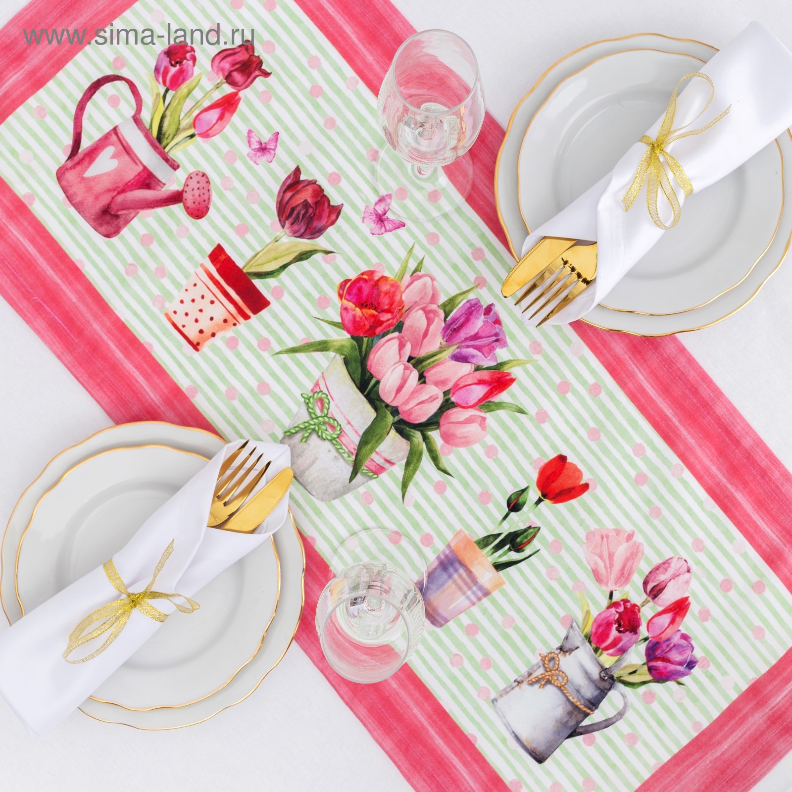 Дорожка на стол "этель" тюльпаны 30х70 см, 100% хл, саржа 190 гр/м2