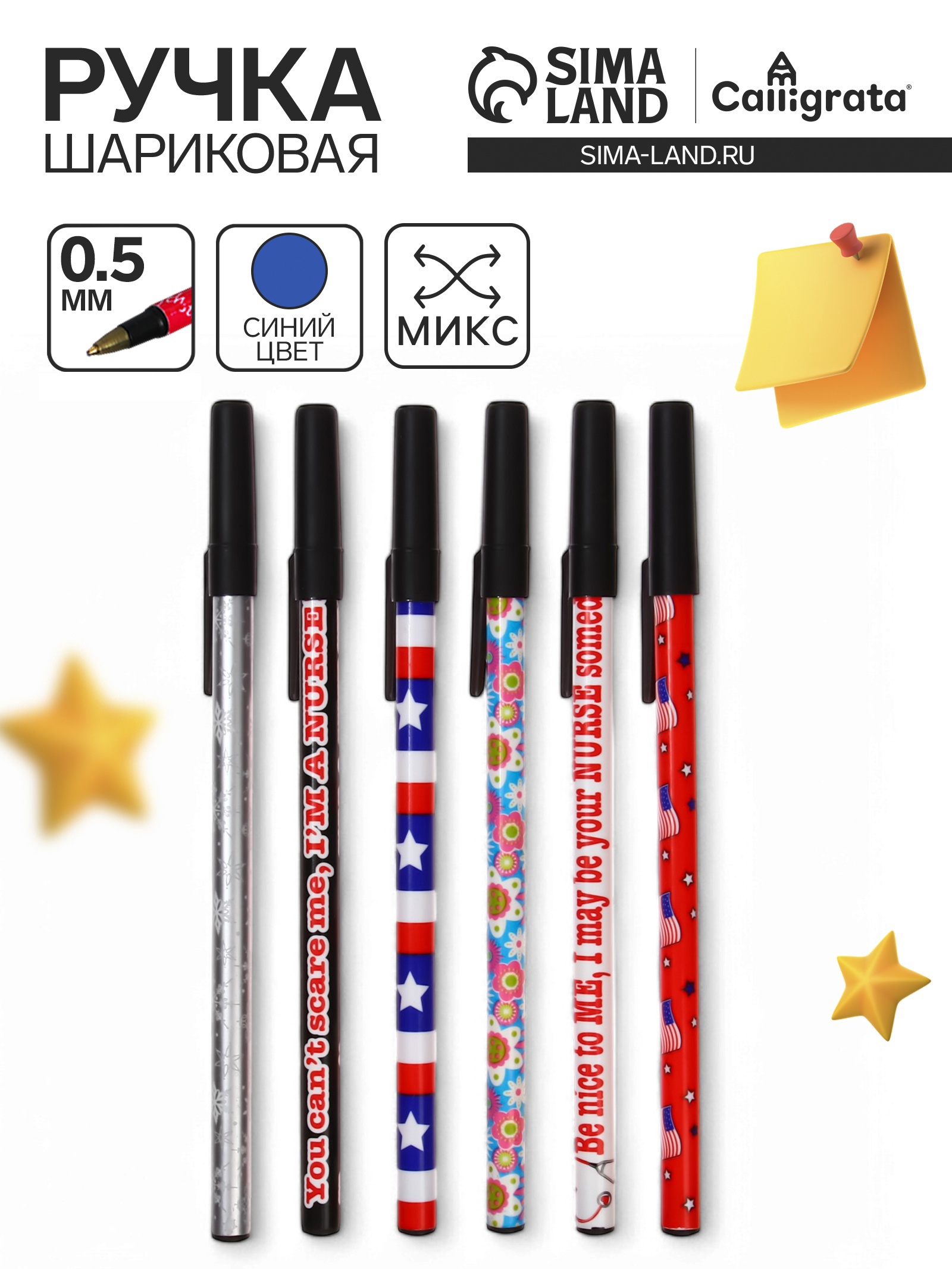 Ручка шариковая Calligrata, 0.5 мм, стержень синий, с рисунком, микс