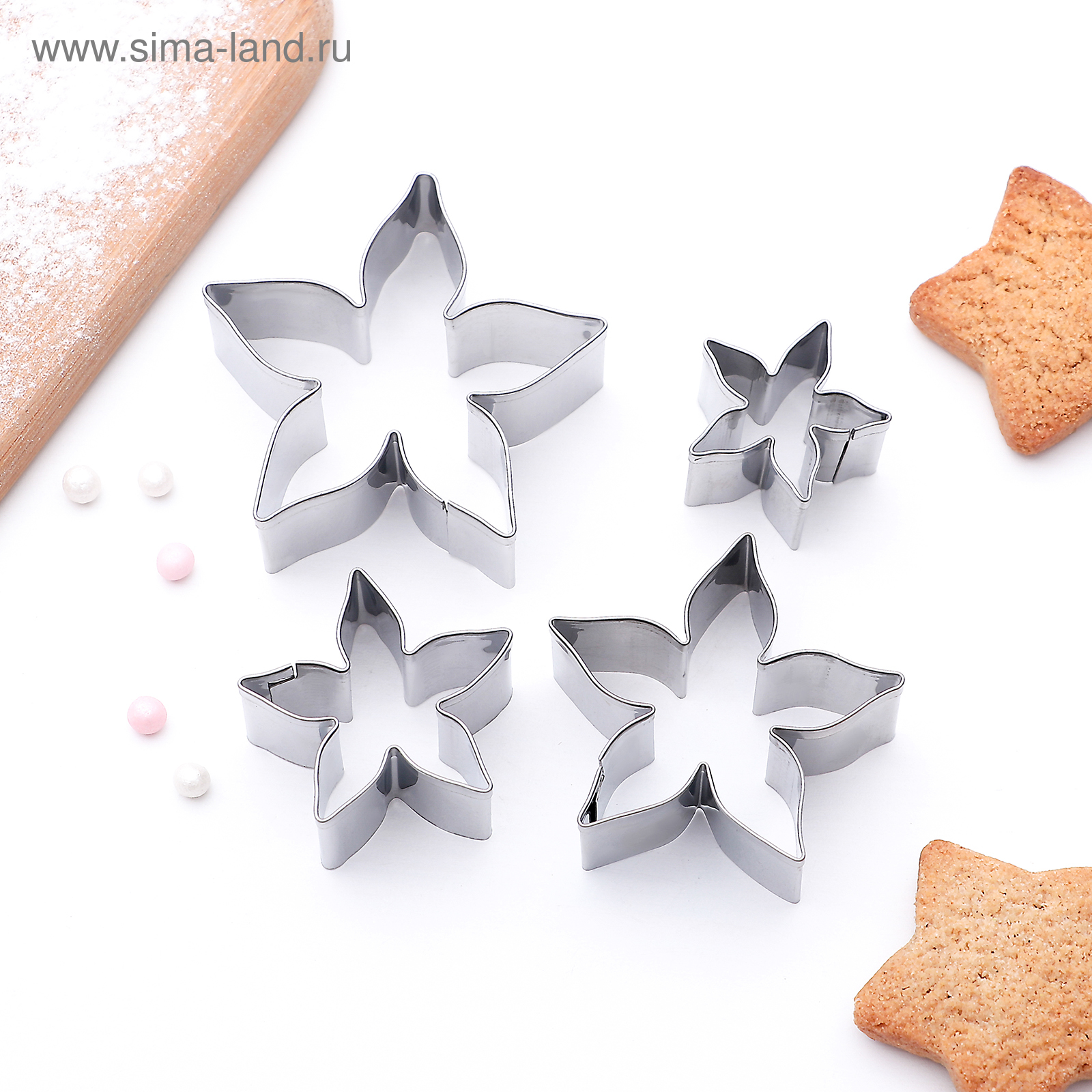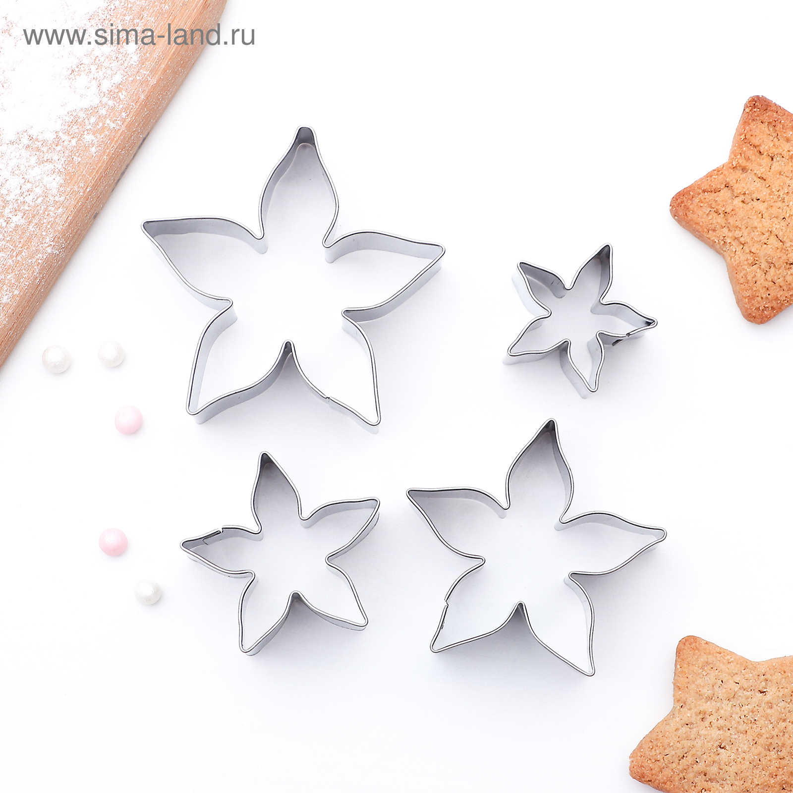 Набор форм для вырезания печенья доляна «лепестки розы», 5,5x5,5 см, 4 шт, цвет хромированный