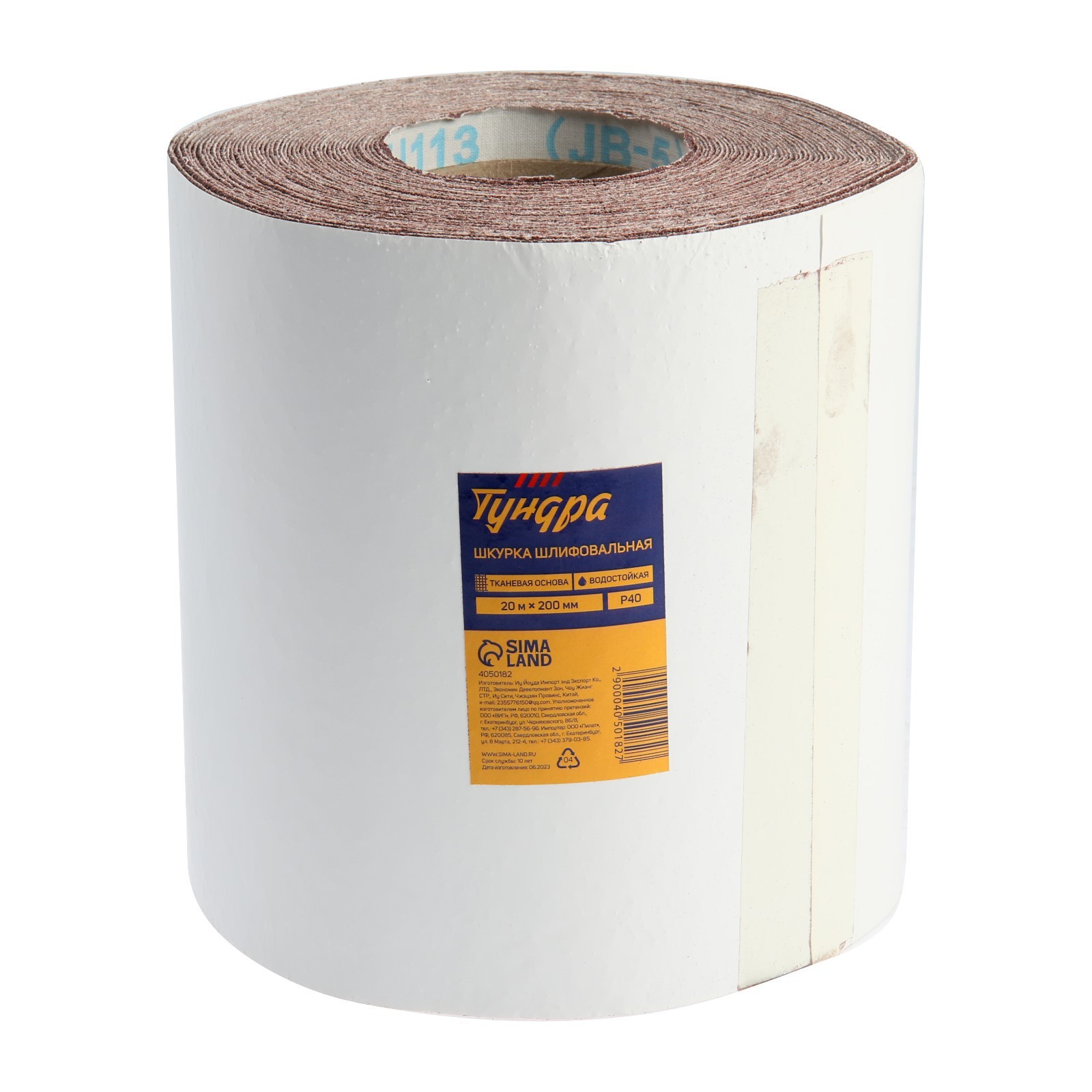 Шкурка шлифовальная в минирулонах тундра, на тканевой основе водостойкая, 200 мм 20 м, р40
