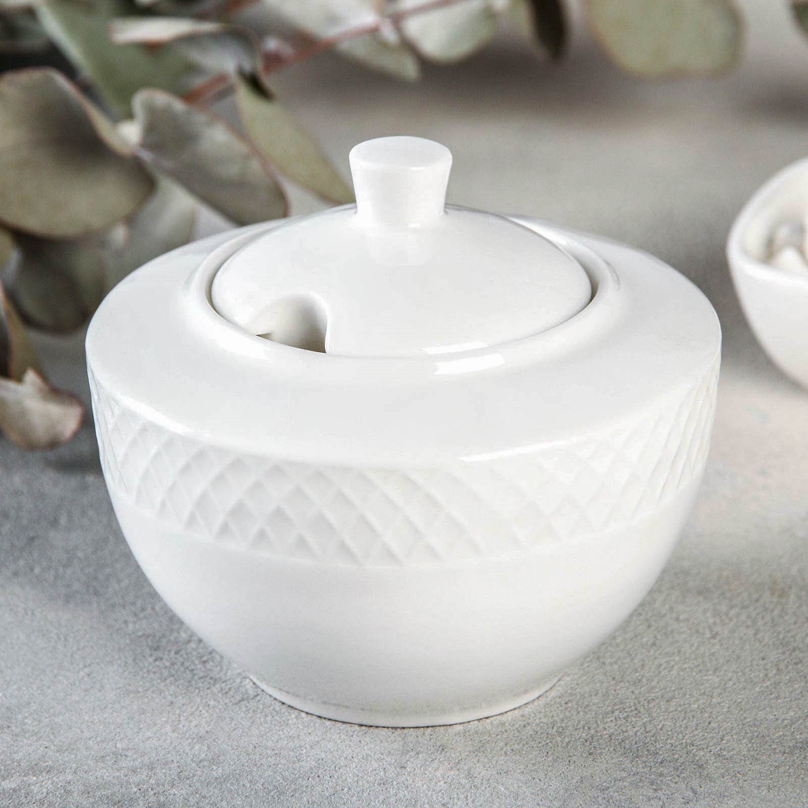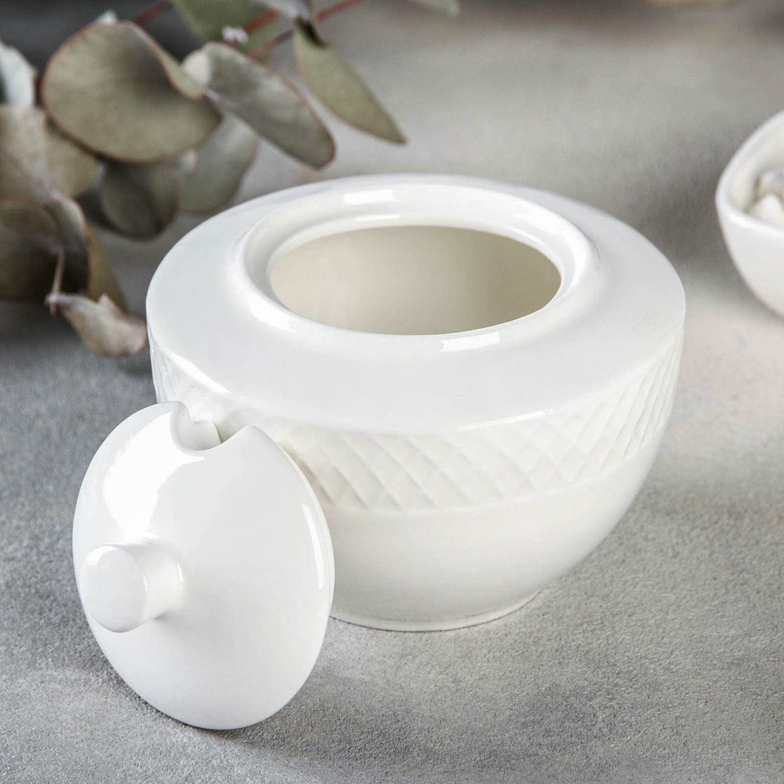 Сахарница фарфоровая с крышкой Wilmax «юлия высоцкая», 340 мл, цвет белый