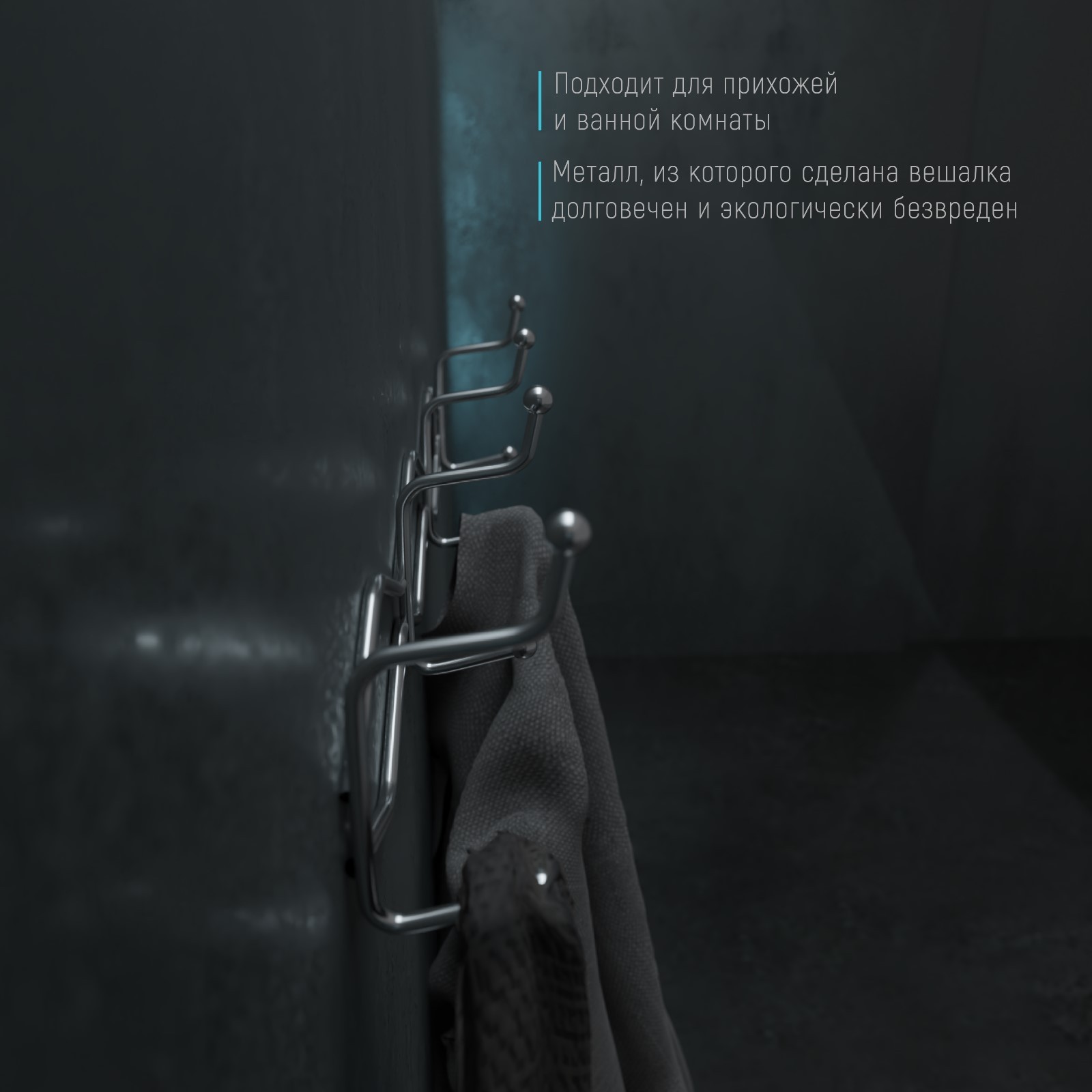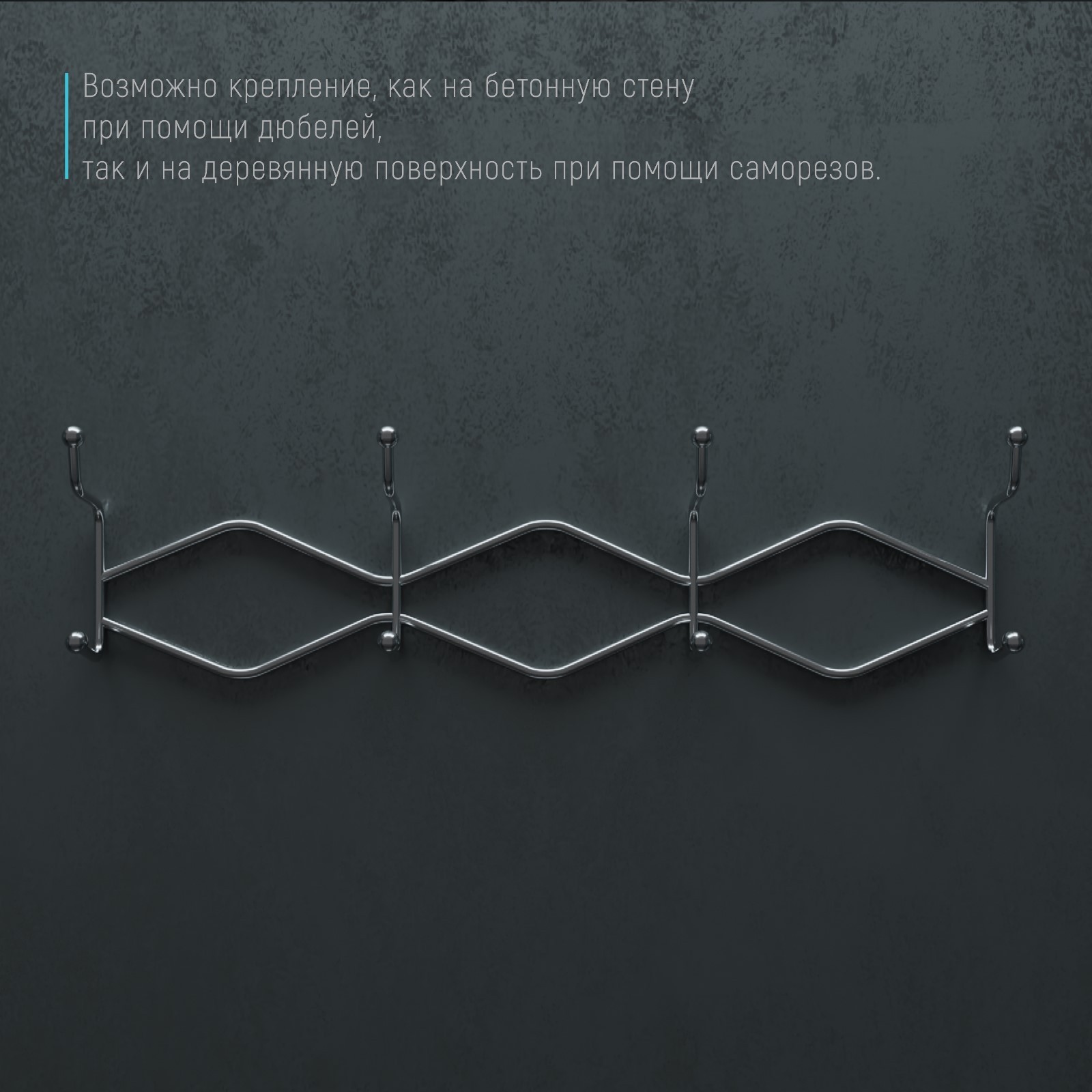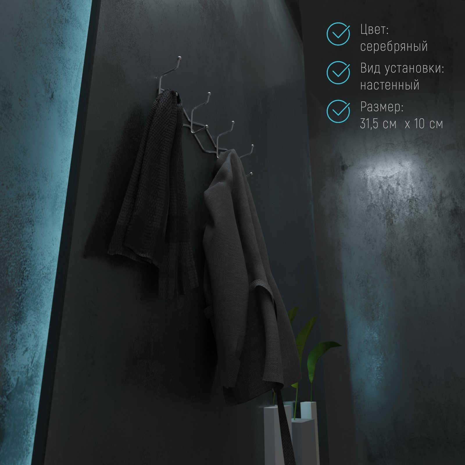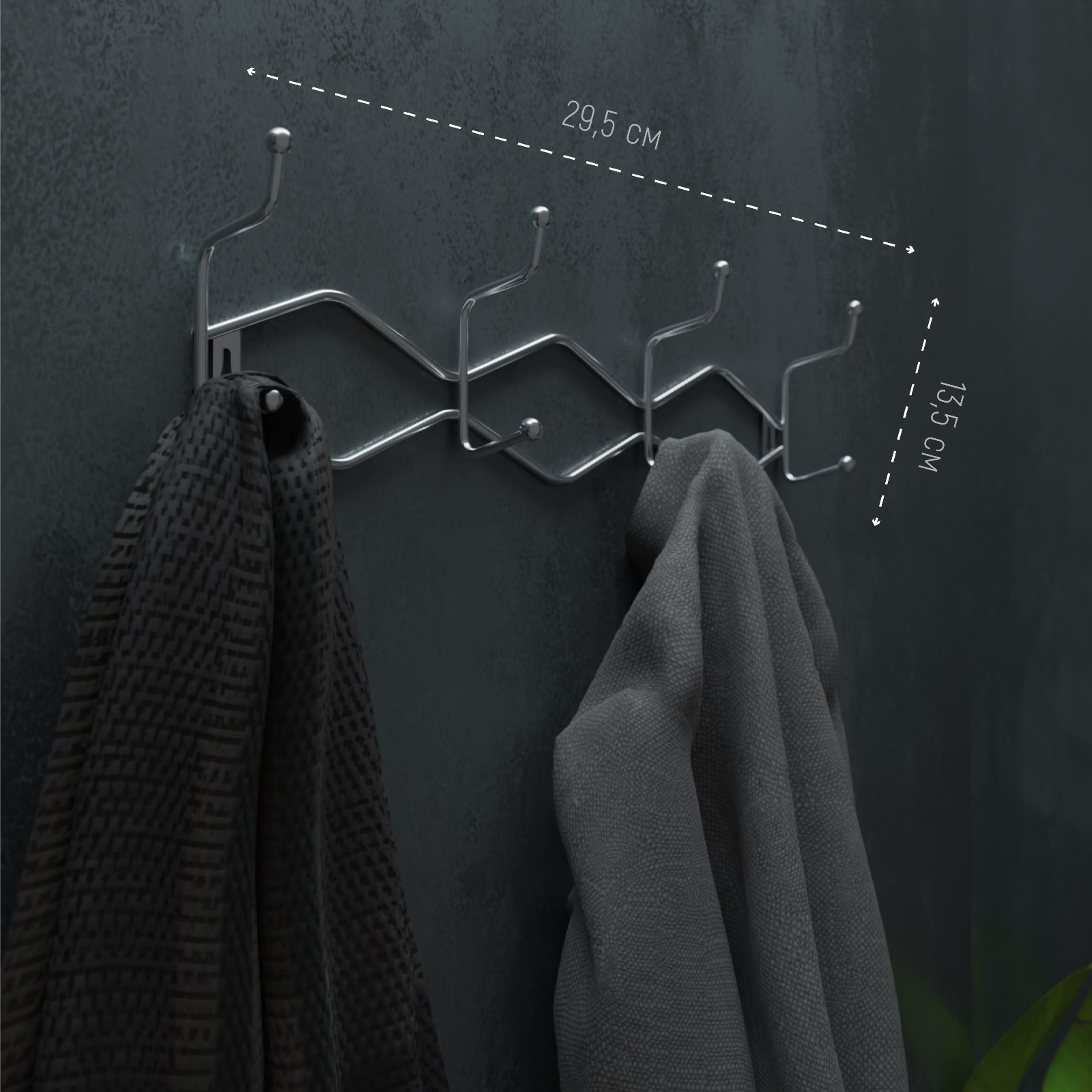 Вешалка настенная на 4 двойных крючка доляна «волна», 29,5x14x7 см, цвет хром