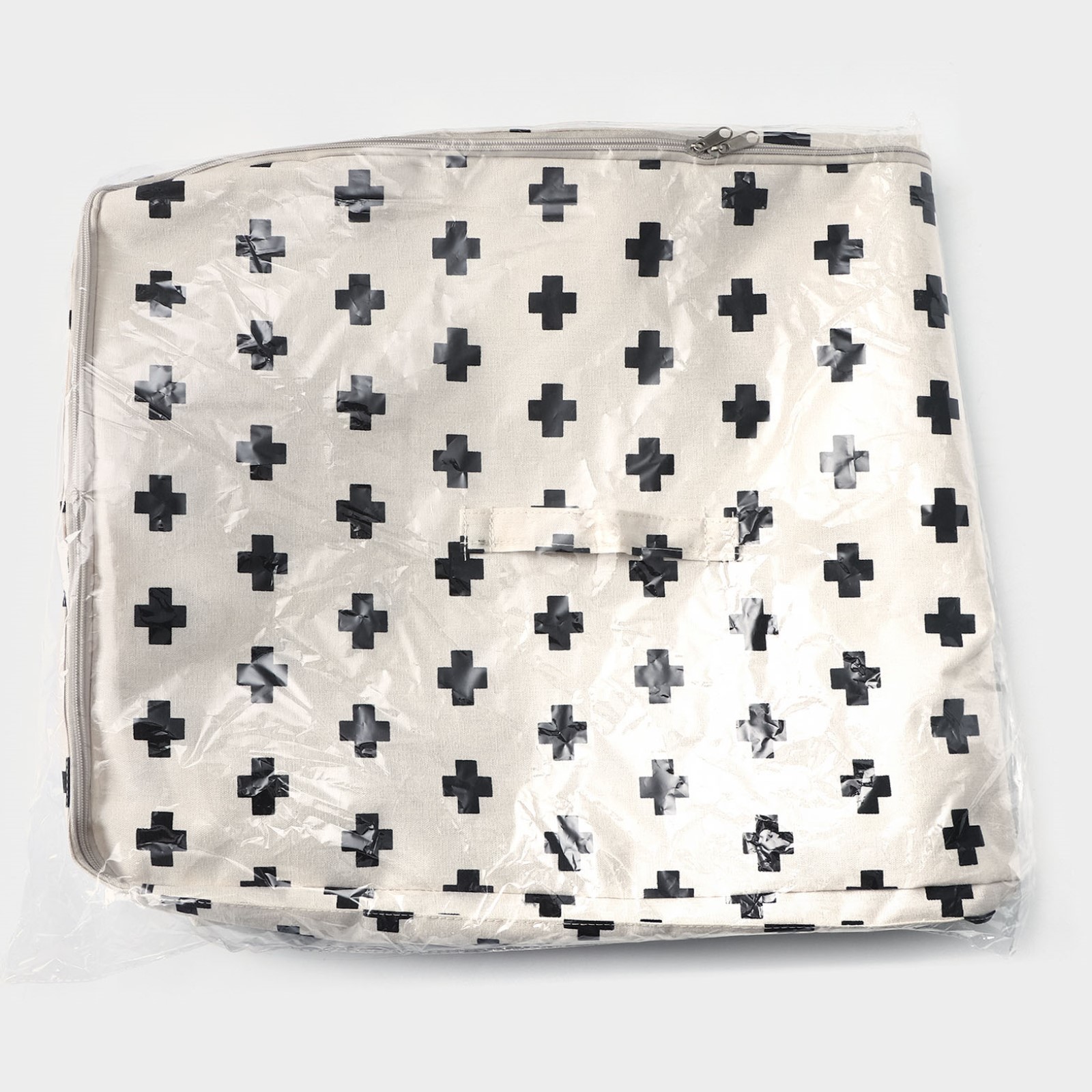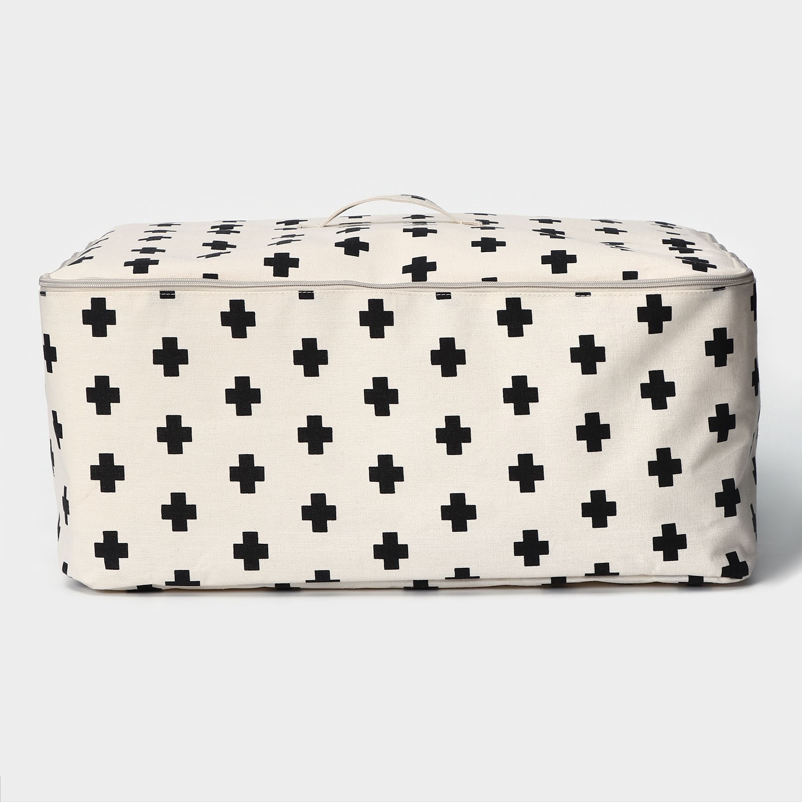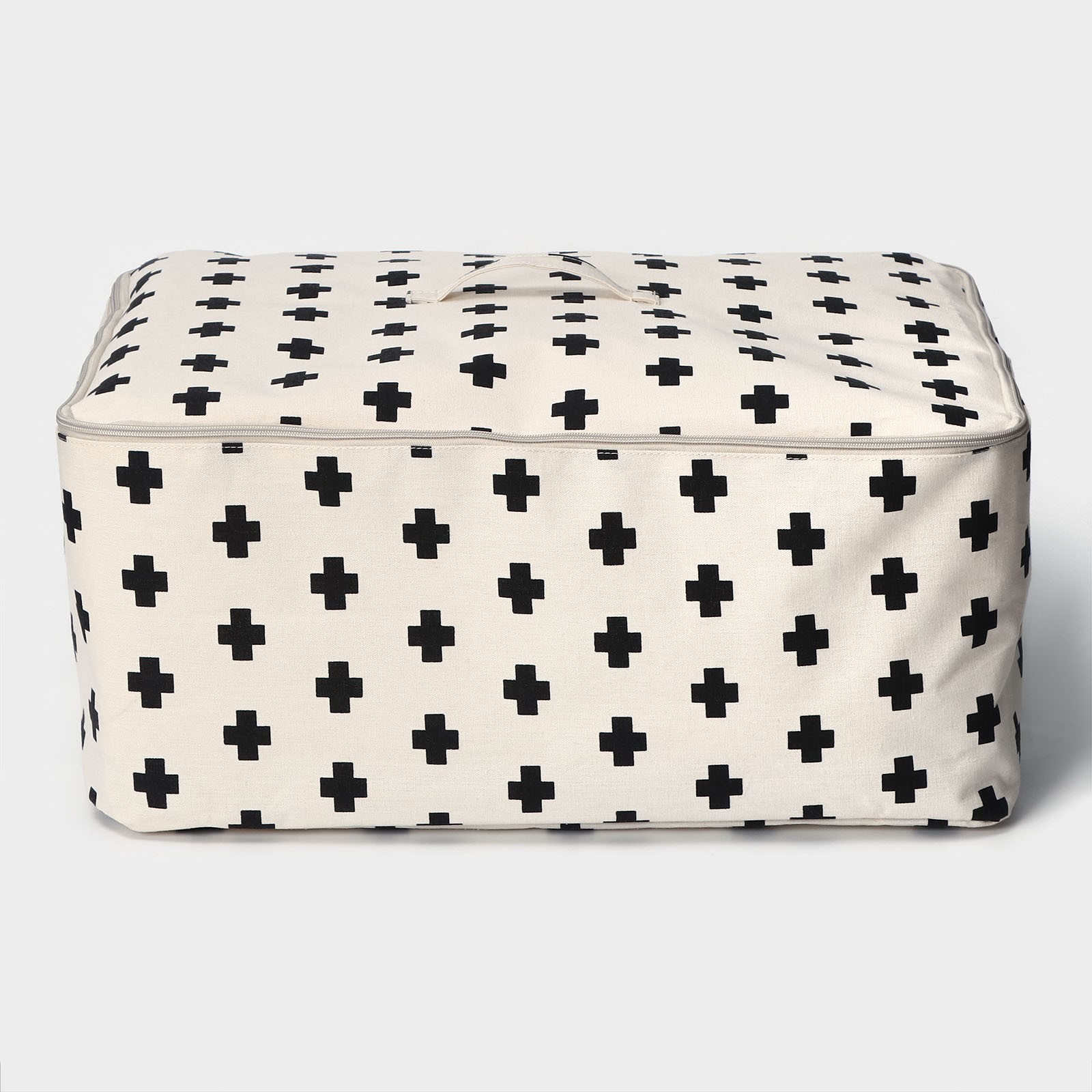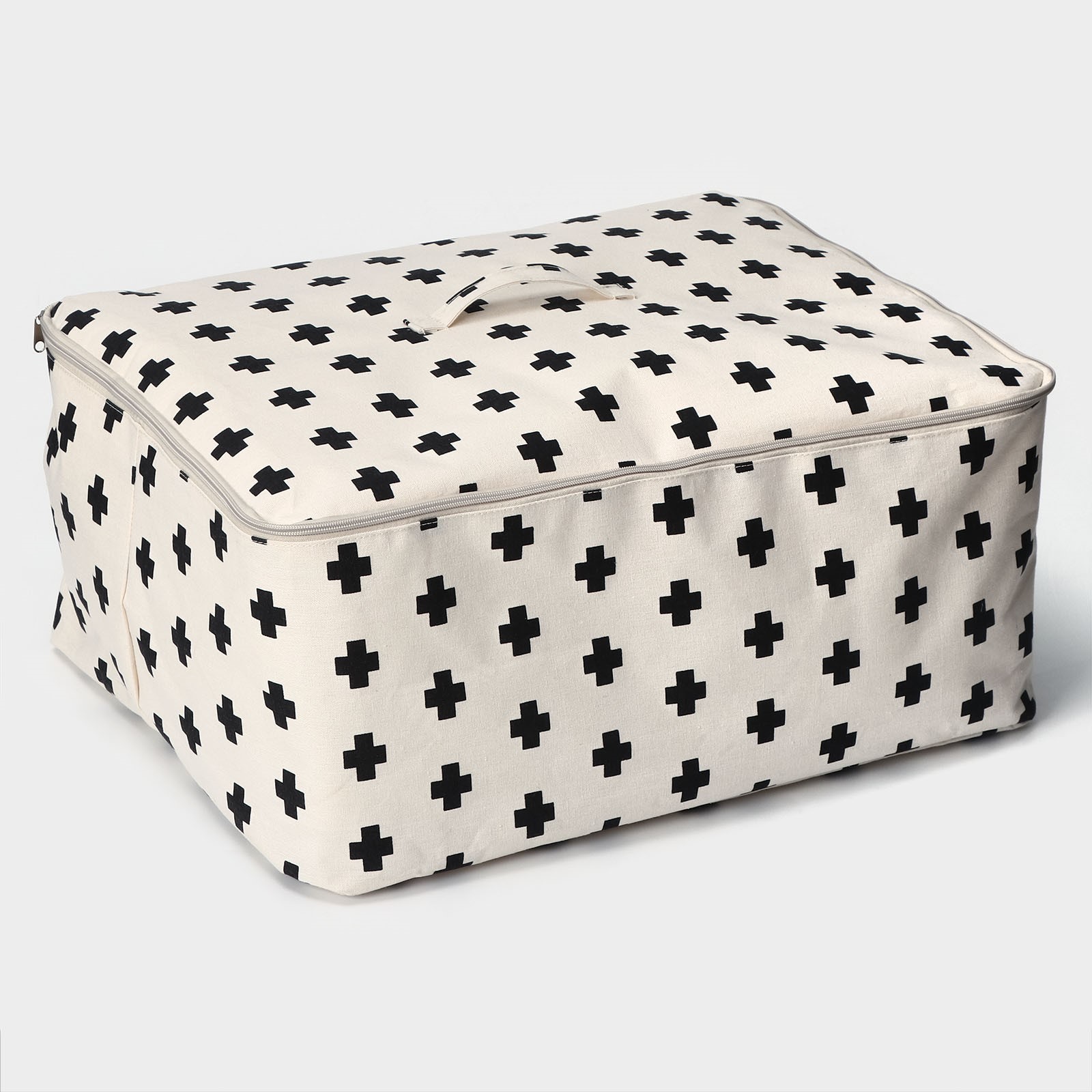 Кофр для хранения вещей «ажур», 55x42x25 см, цвет чёрно-молочный. Кофр для хранения вещей позволит навести порядок дома раз и навсегда! Подходит для удобного хранения постельного белья, сезонный одежды, детской одежды, одеял, пледов. Преимущества: Нейтральная цветовая гамма кофров впишется в интерьер спальной, гардеробной или гостиной комнаты, а также в детскую комнату. Органайзеры для хранения легко очистить от загрязнений и компактно сложить в кладовку. Идеально подходит для хранения, удобен для размещения в шкафу. Цвет: Белый Ширина, см: 55 Высота, см: 25 Глубина, см: 42 Количество отделений: 1 Материал: Текстиль Материал: Лён  развернуть описание ▼