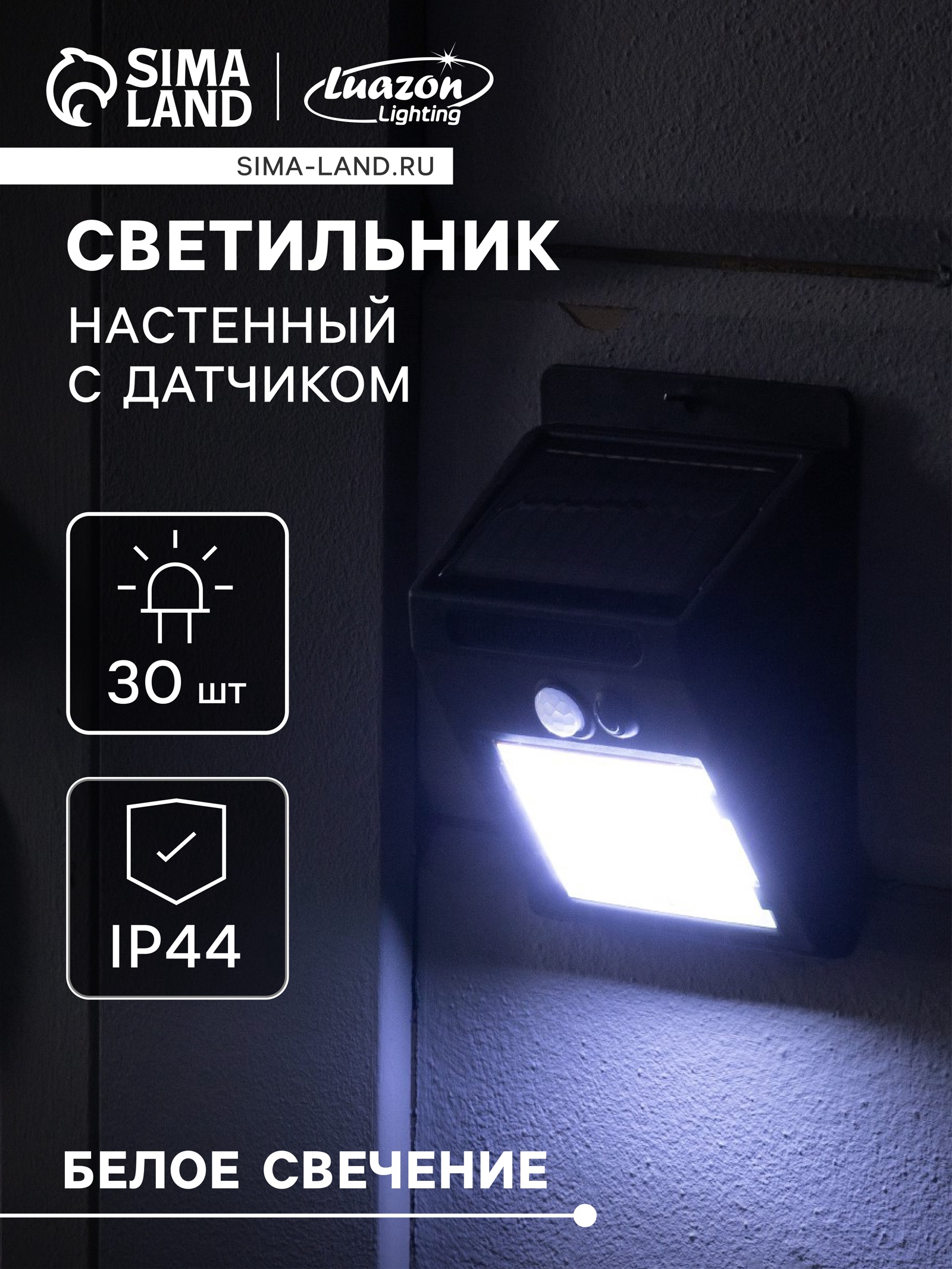 Садовый светильник, уличный, на солнечной батарее с датчиком движения, накладной, 30 Led, свечение белое