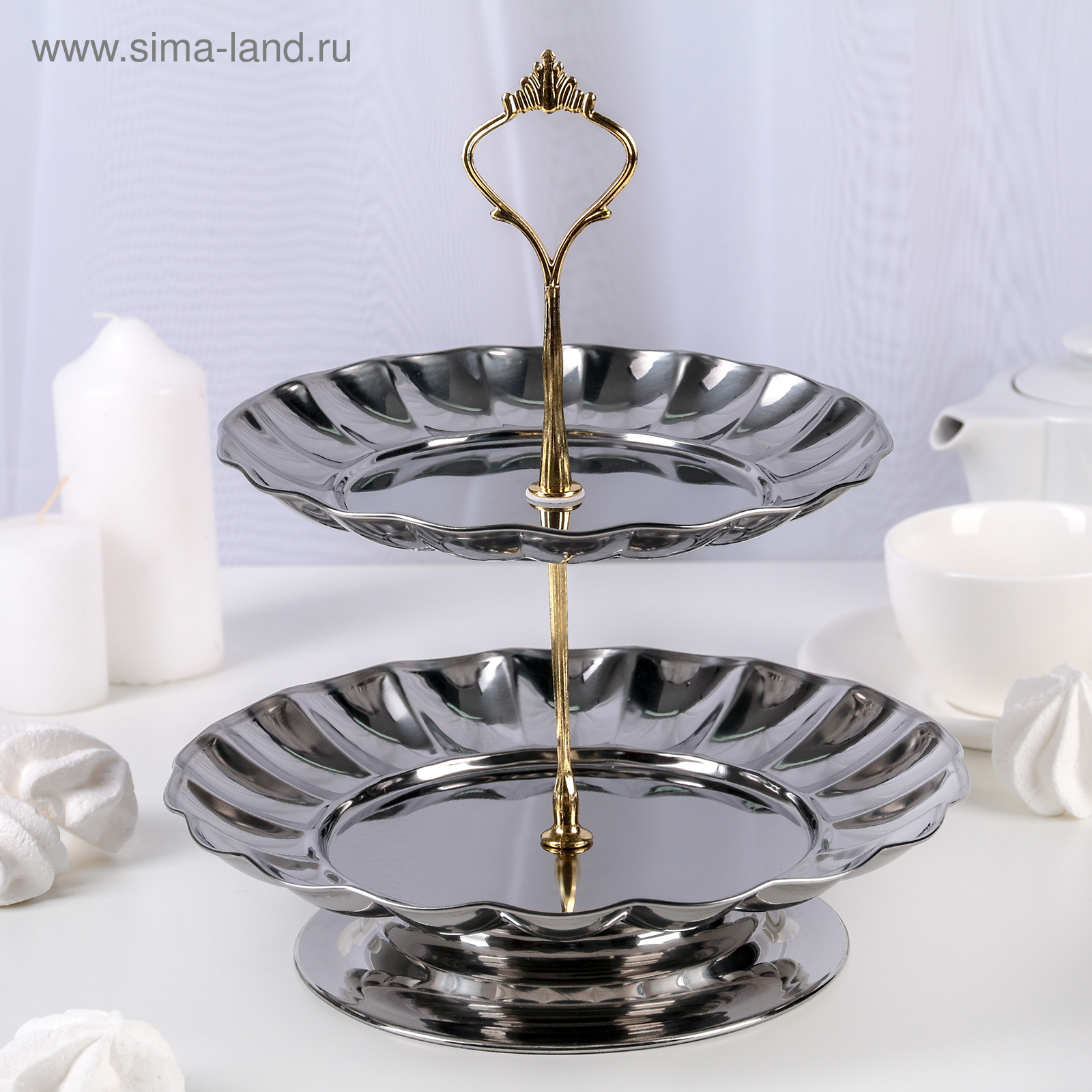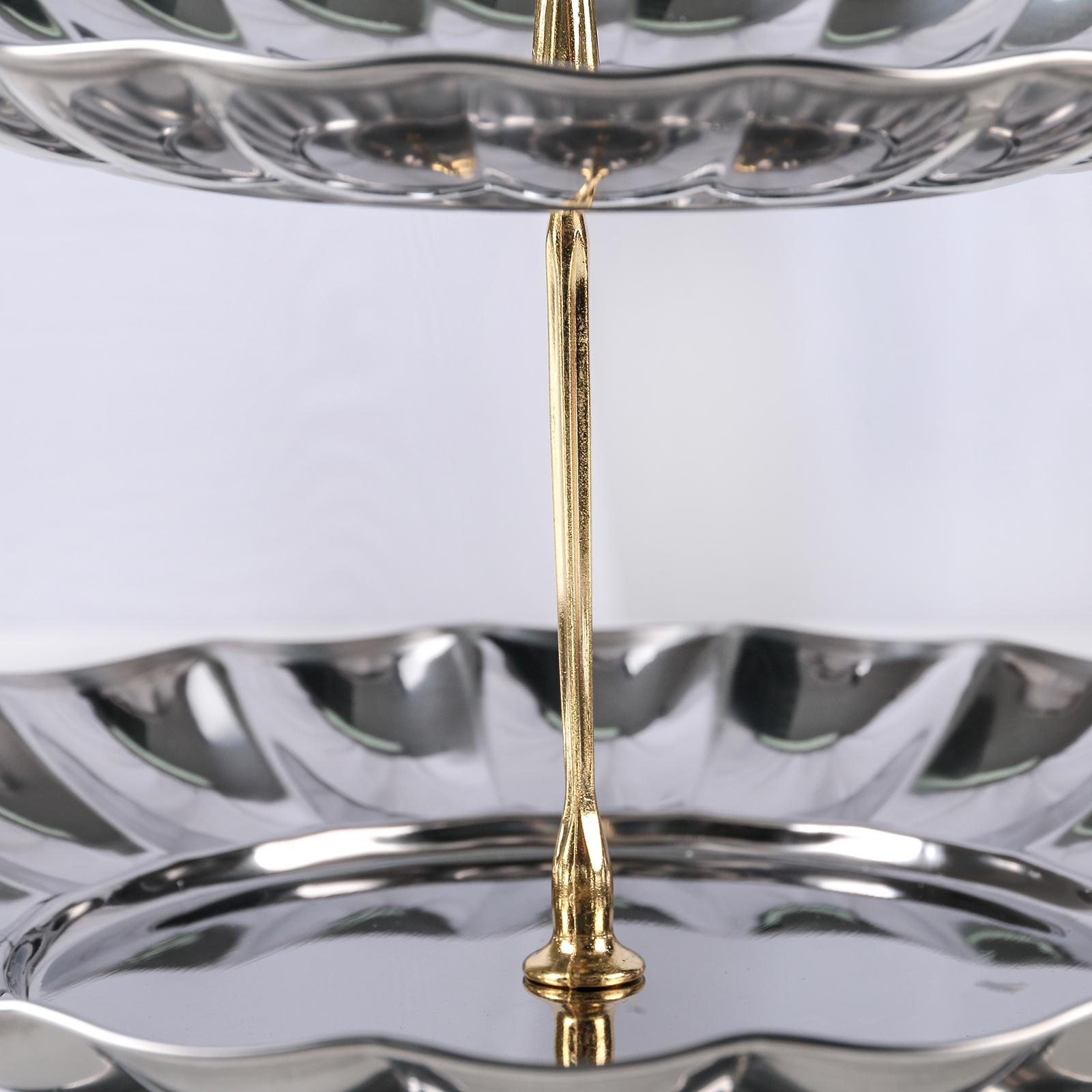 Блюдо 2-х ярусное, D=18/22 см, цвет серебряный