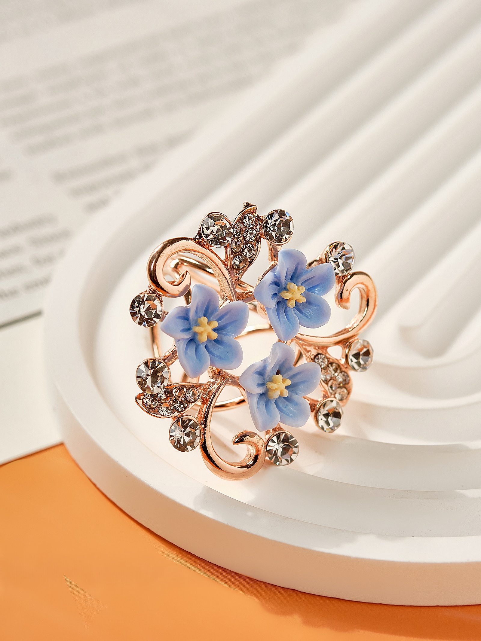Кольцо для платка «цветы незабудки», голубое в золоте. Добавьте свежести в образ! Кольцо для платка с нежными голубыми цветами – аксессуар для женщин, который подчеркнёт женственность и станет приятным подарком к 8 Марта для мамы, бабушки, дочери или сестры. Нежный цвет и дизайн: Голубой оттенок в сочетании с золотой фурнитурой создаёт лёгкий и воздушный образ. Украшение с растительным мотивом и стразами придаёт аксессуару изящность и свежесть.Удобство и универсальность: Кольцо подходит для любого платка и легко впишется в повседневный или праздничный стиль, добавляя акцент к образу.Материалы и качество: Металл и пластик обеспечивают прочность и лёгкость, а вставки из страз придают блеск и дополнительный шарм.Праздничная тематика: Дизайн с цветами незабудки отражает весеннее настроение и отлично подходит для подарка на Международный женский день.Выразите внимание и заботу: Этот аксессуар станет не просто украшением, а знаком тёплых чувств и заботы. Подарите кольцо для платка близкому человеку, чтобы подчеркнуть её индивидуальность и добавить в образ лёгкости и свежести. Набор:Нет|Цвет:Голубой|Для кого:Для женщины|Длина, см:4|Тематика праздника:8 Марта|Адресат:Бабушке|Адресат:Сестре|Адресат:Дочке|Адресат:Маме|Материал:Пластик|Материал:Металл|Цвет фурнитуры:Золотой|Вид:Кольцо|Вставка/Подвеска:Пластик|Вставка/Подвеска:Стразы|Материал основы:Металл|Тематика:Растения, цветы|Тематика:Цветы и растения|Страна:Китай  развернуть описание ▼