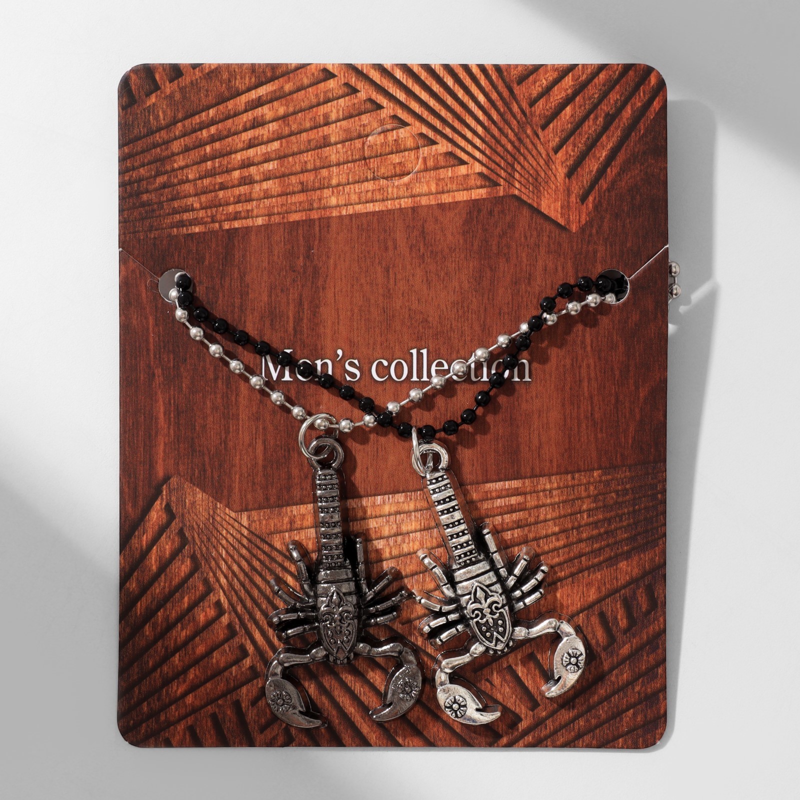 Кулоны парные «скорпион», 50 см, цвет серебро с чернёным серебром