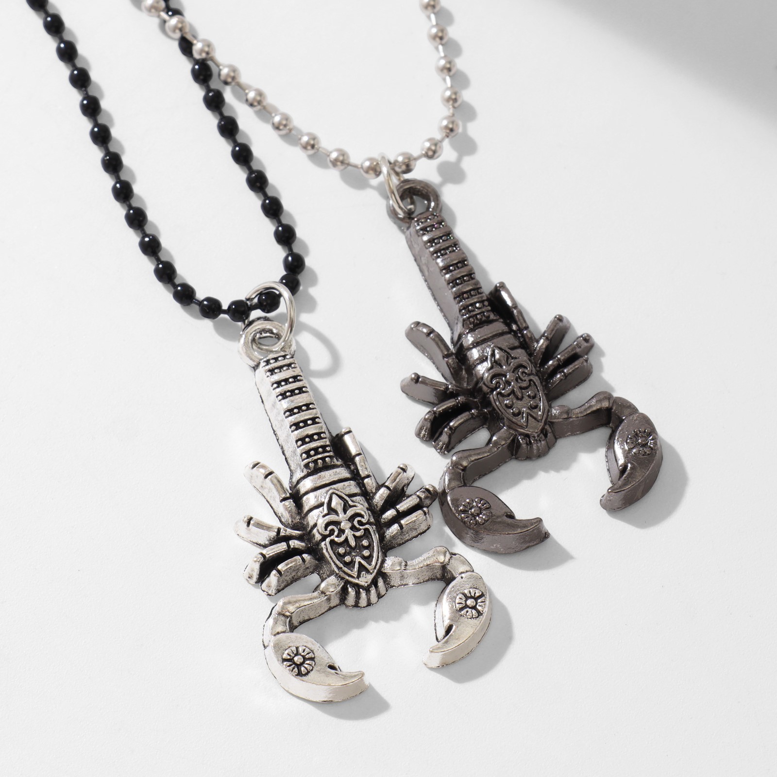 Кулоны парные «скорпион», 50 см, цвет серебро с чернёным серебром.