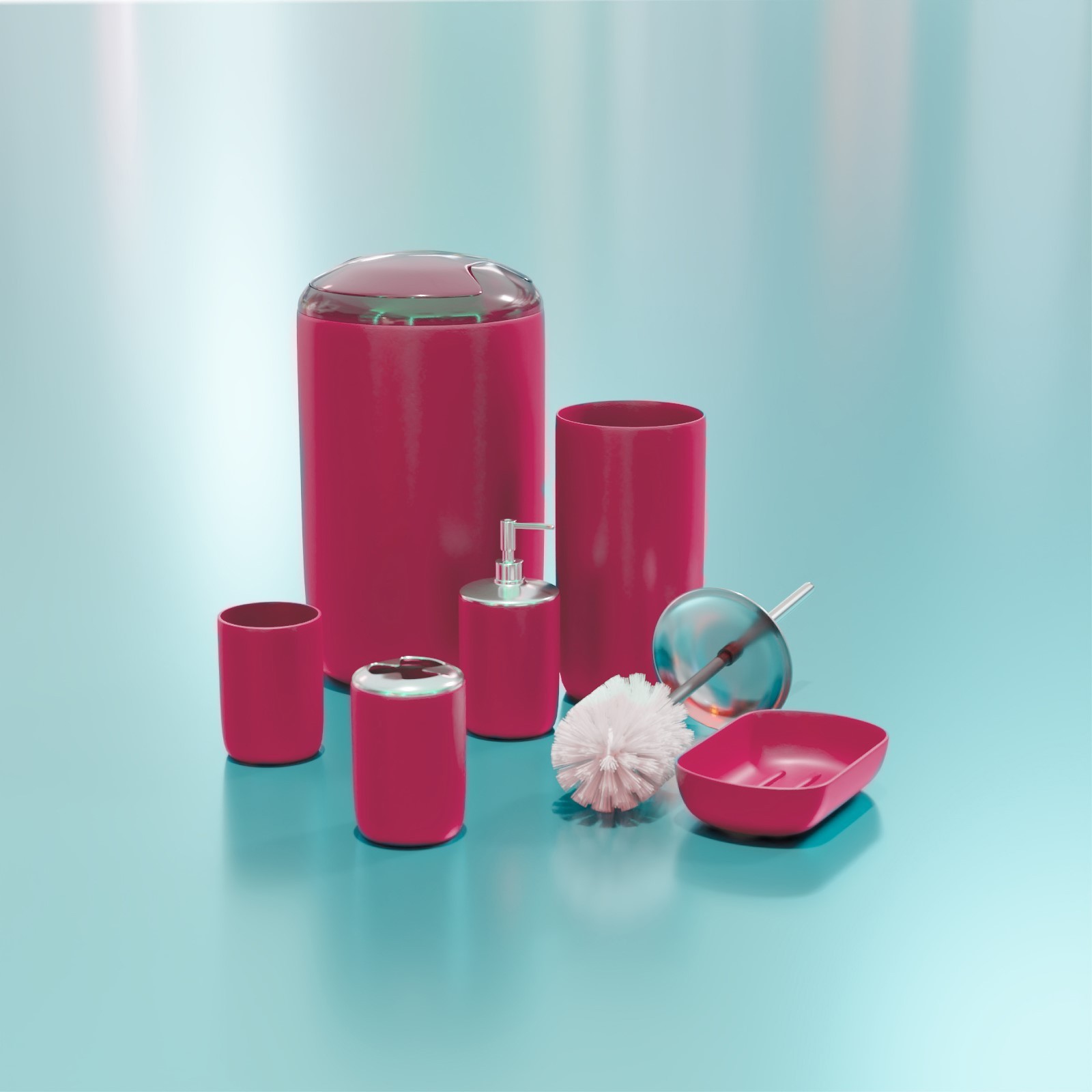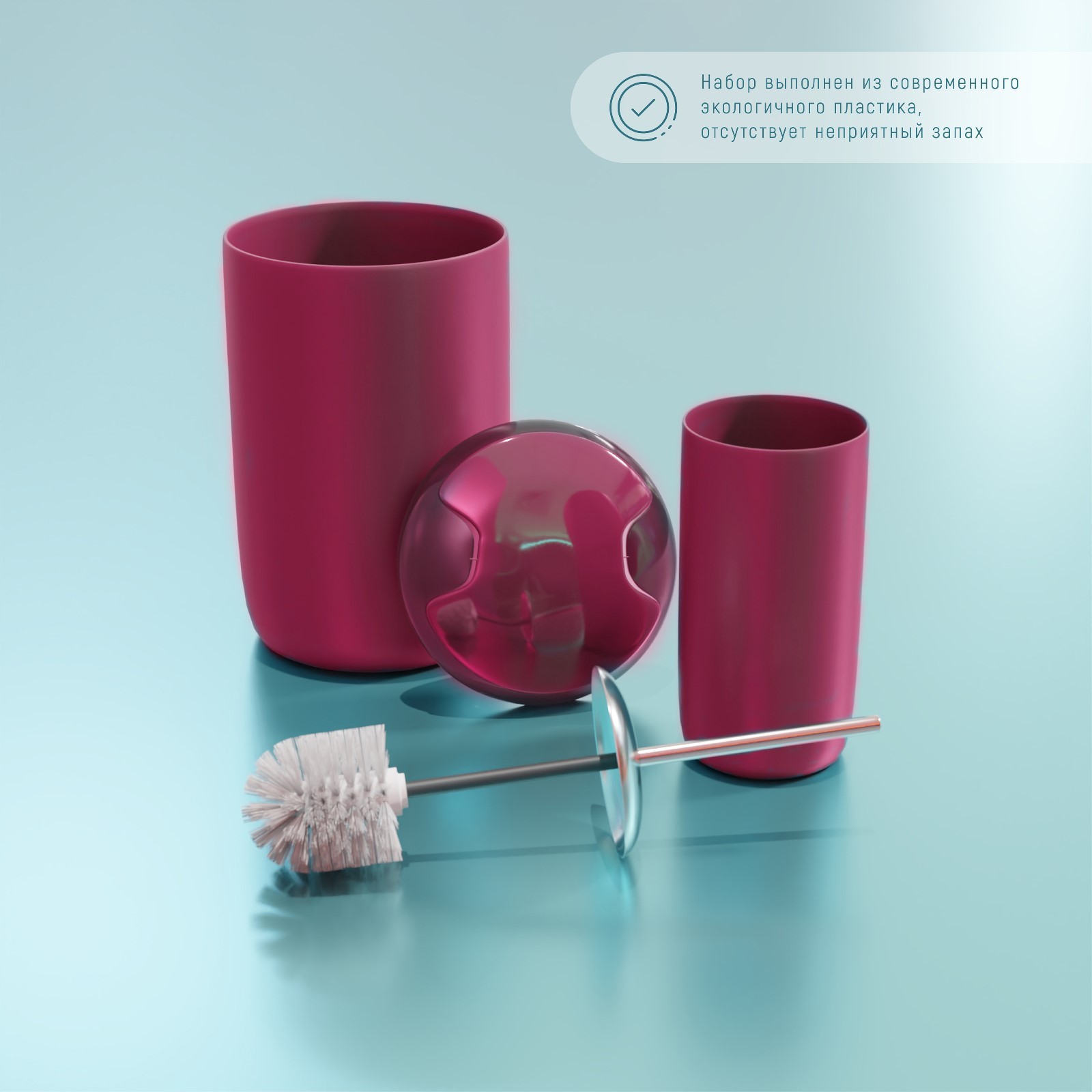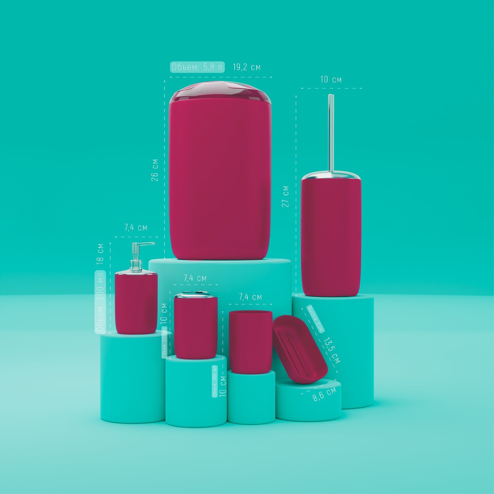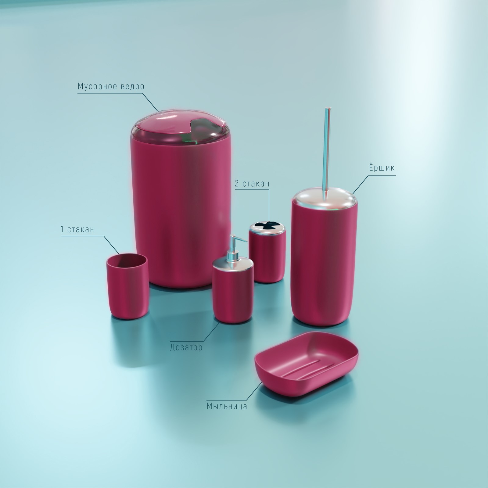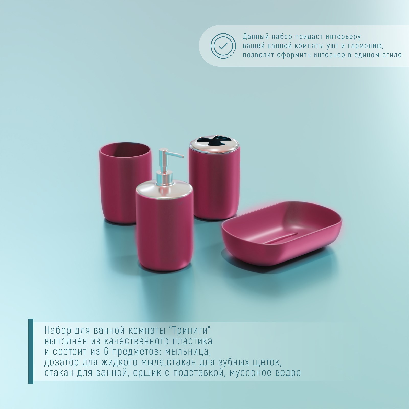 Набор аксессуаров для ванной комнаты «тринити», 6 предметов (мыльница, дозатор для мыла, два стакана, ёрш, ведро), цвет розовый