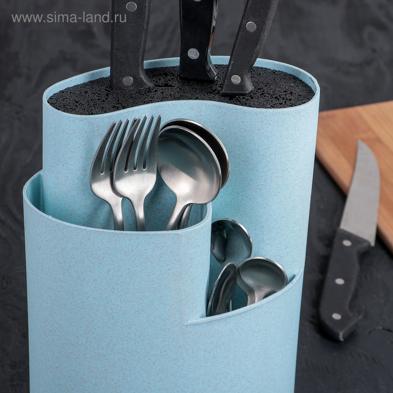 Подставка для ножей и столовых приборов «нежность», 18x11 см, цвет голубой. Благодаря подставке все ножи и столовые приборы всегда будут рядом. Кухонный органайзер не требует особого ухода. Он сэкономит место на вашей кухне и сохранит остроту лезвия ножей. Стильный дизайн станет отличным дополнением к любому интерьеру. Цвет: Голубой parts count: 0 Материал: Пластик Тип: С наполнителем  развернуть описание ▼
