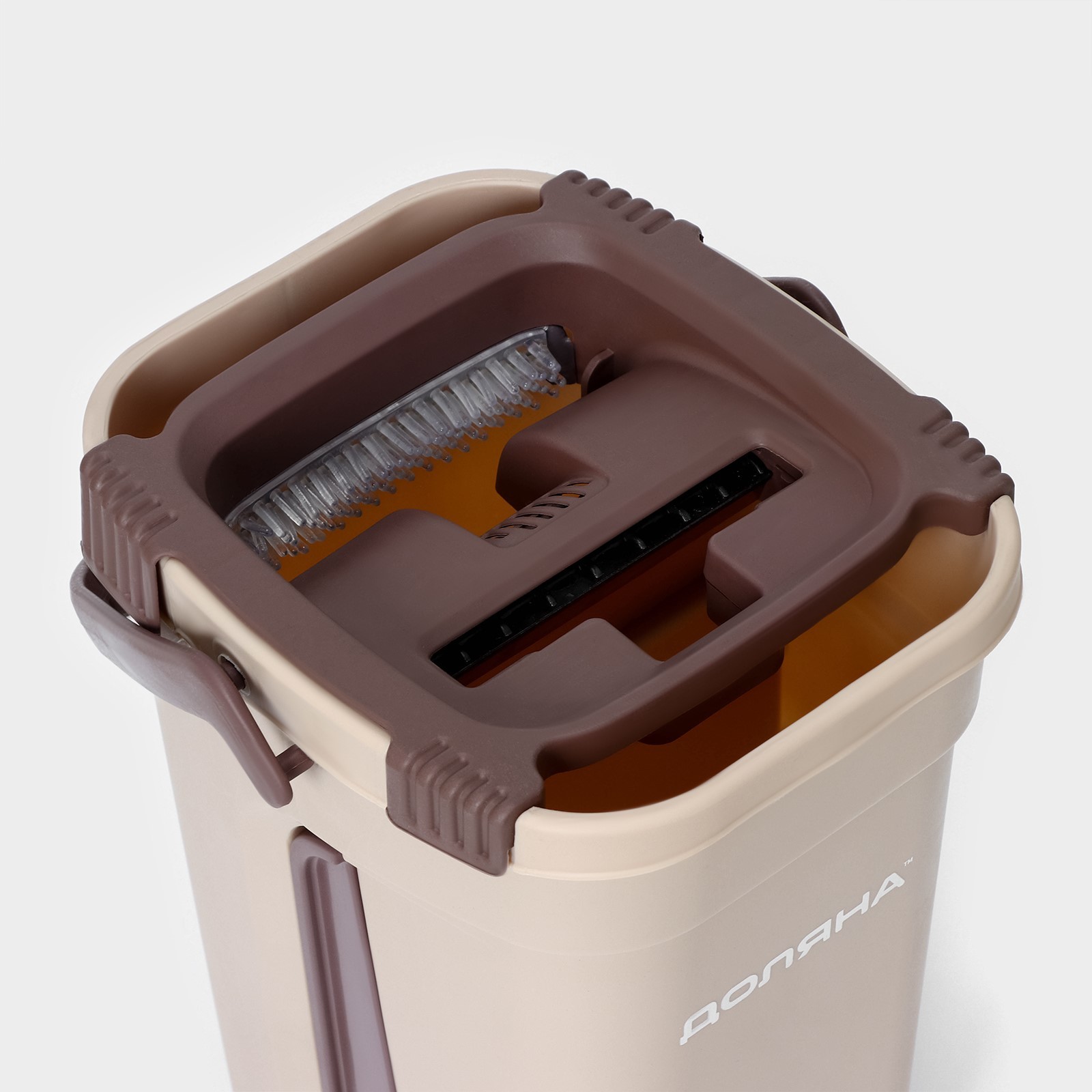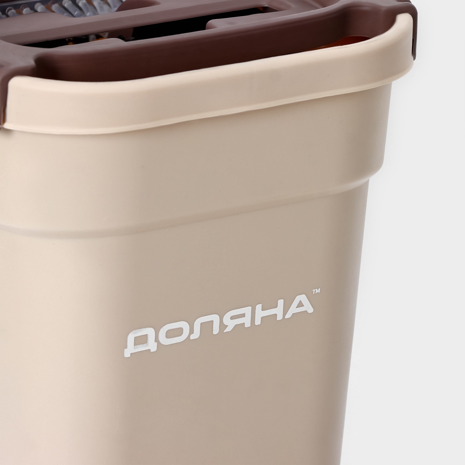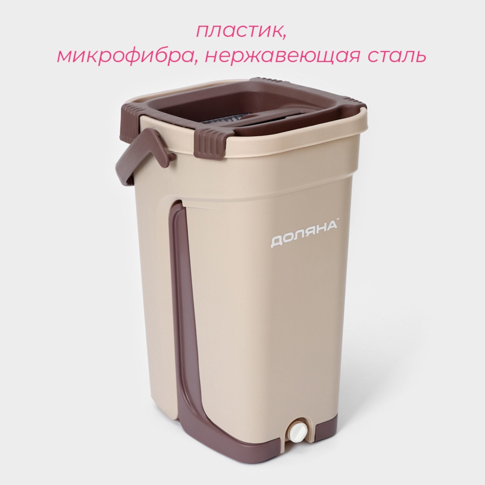 Швабра с отжимом и ведро доляна: швабра плоская, ведро с отсеками для полоскания и отжима 8 л, запасная насадка из микрофибры, ц