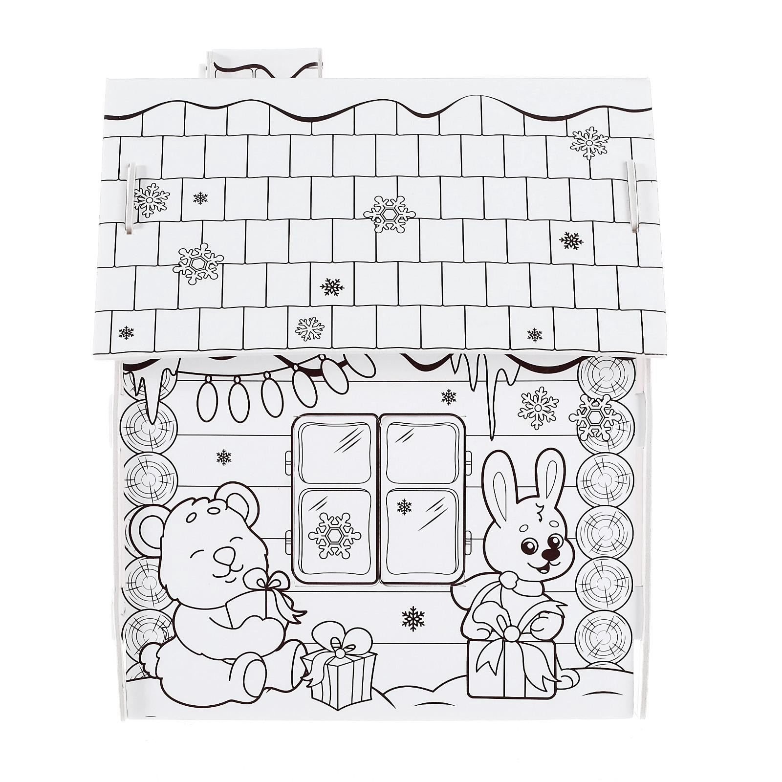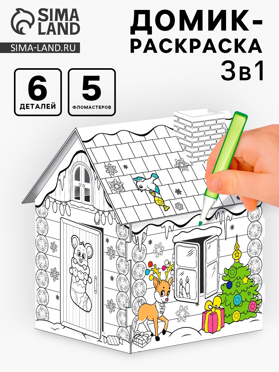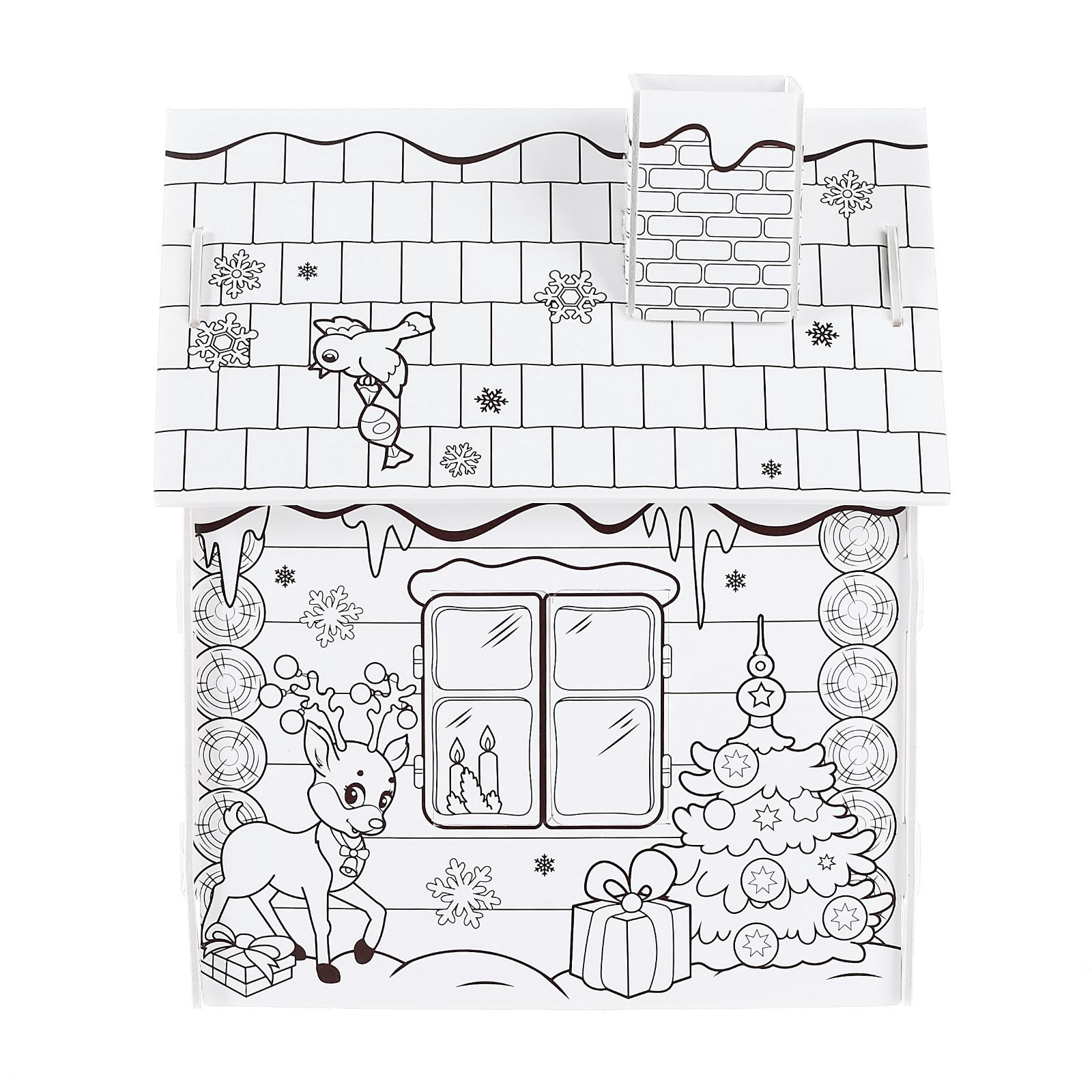 Домик-раскраска 3 в 1 «новогодний хоровод», 5 фломастеров, 6 деталей