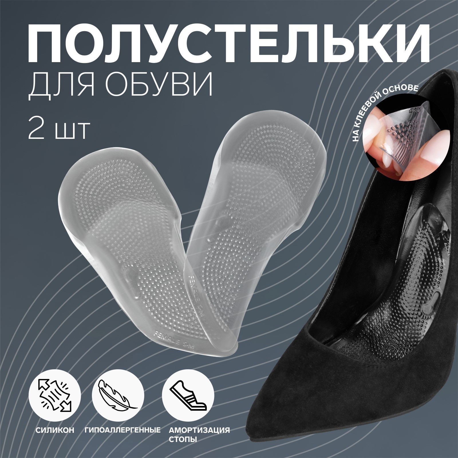 Полустельки для обуви, на клеевой основе, силиконовые, 12,5 X 6,4 см, пара, цвет прозрачный