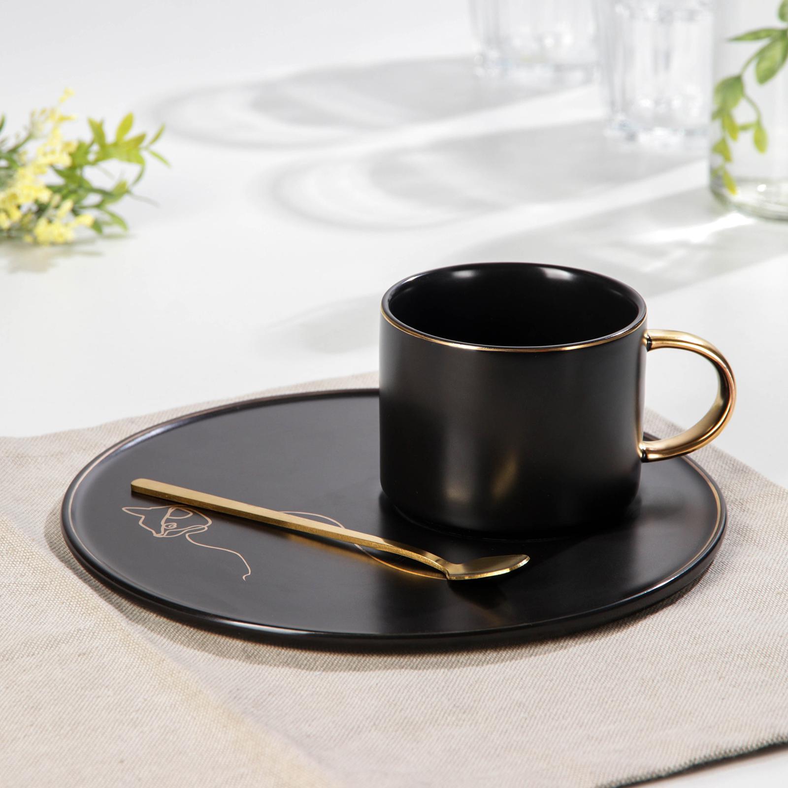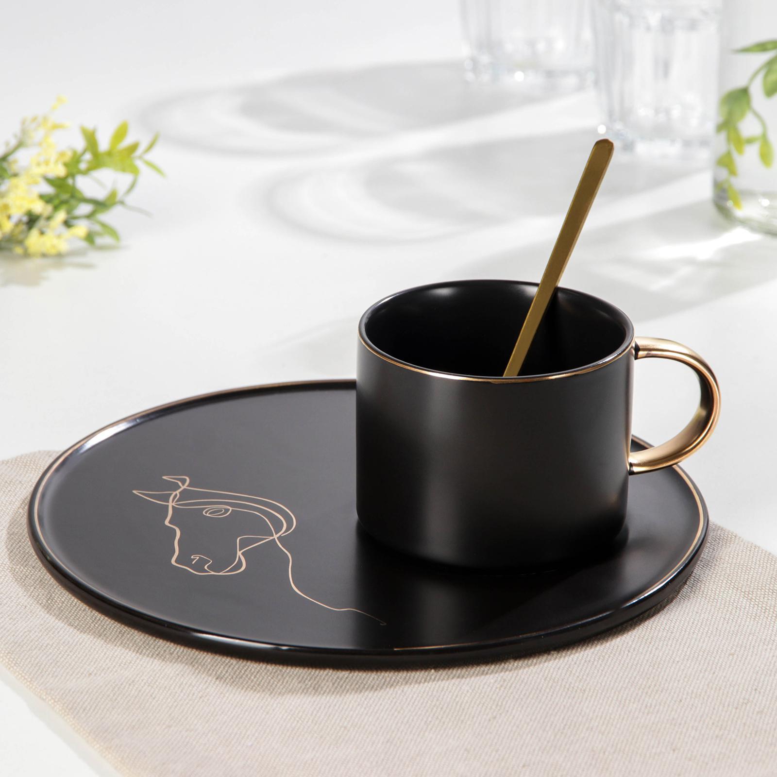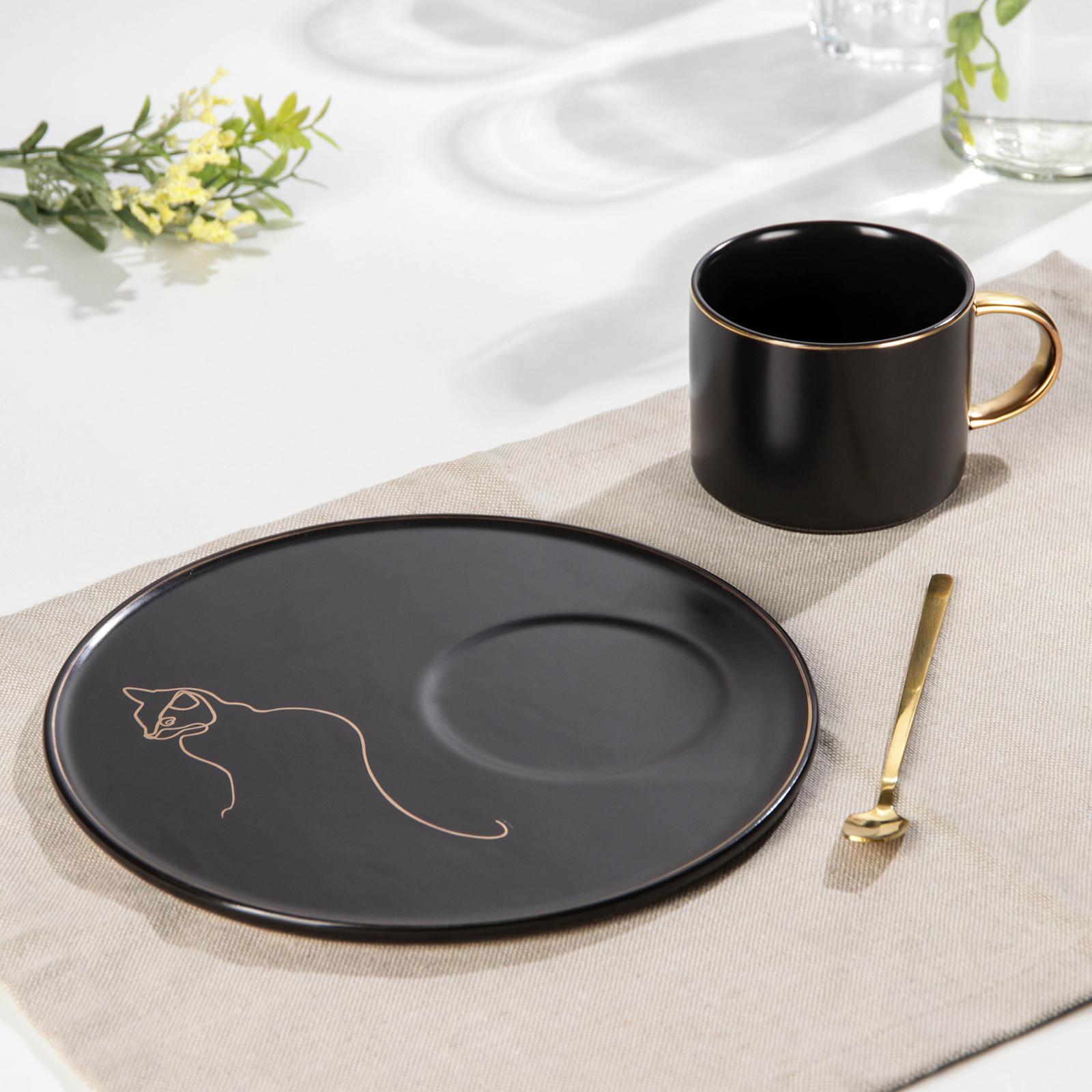 Чайная пара керамическая с ложкой «силуэт», 2 предмета: кружка 260 мл, тар D=19,6 см, рисунок микс
