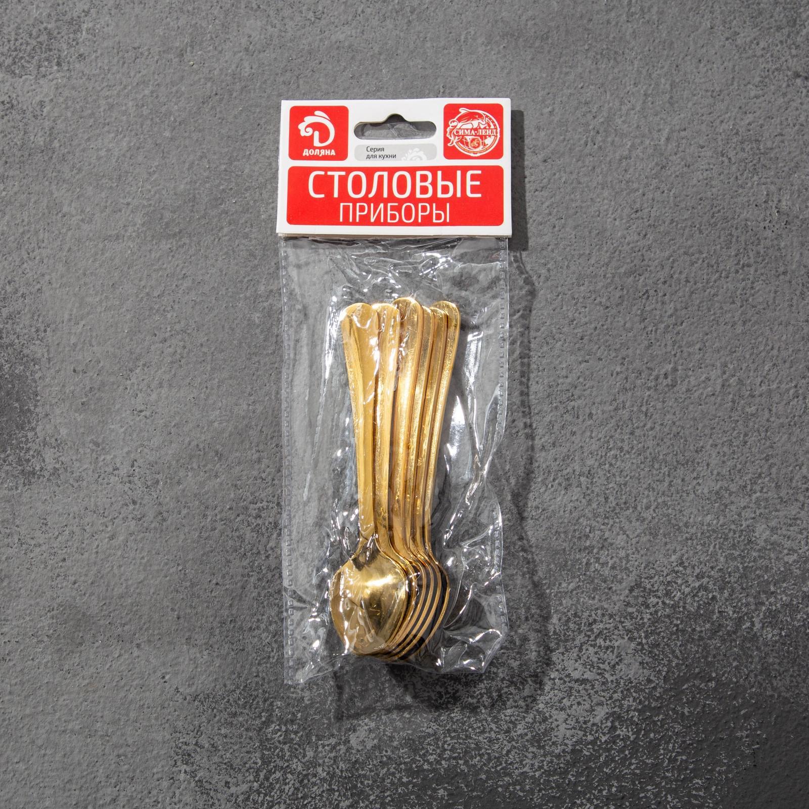 Набор ложек чайных из нержавеющей стали доляна «голд», длина 13 см, 6 шт, цвет золотой