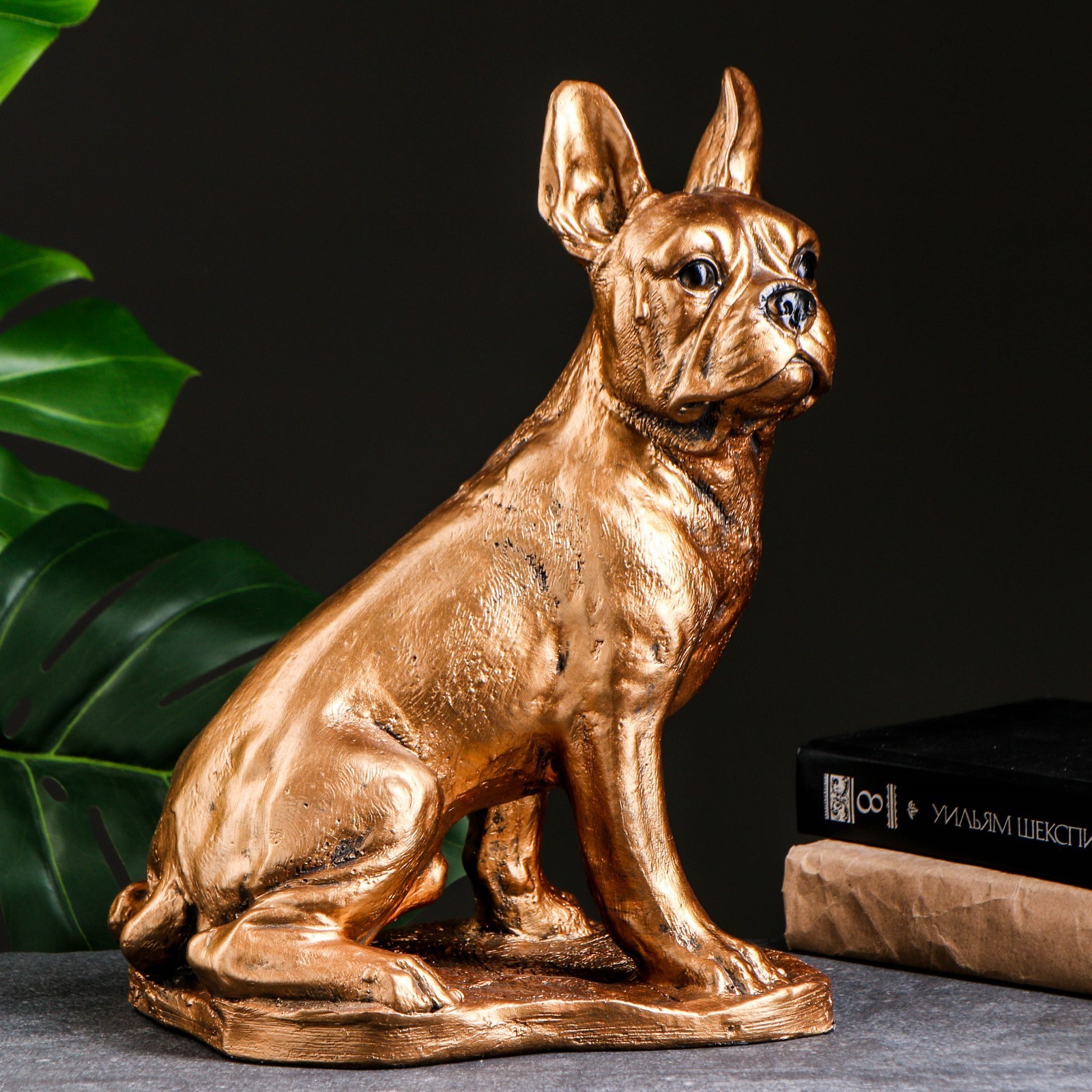 Копилка для денег «французский бульдог большой», гипс, бронза, 19 26 35 см