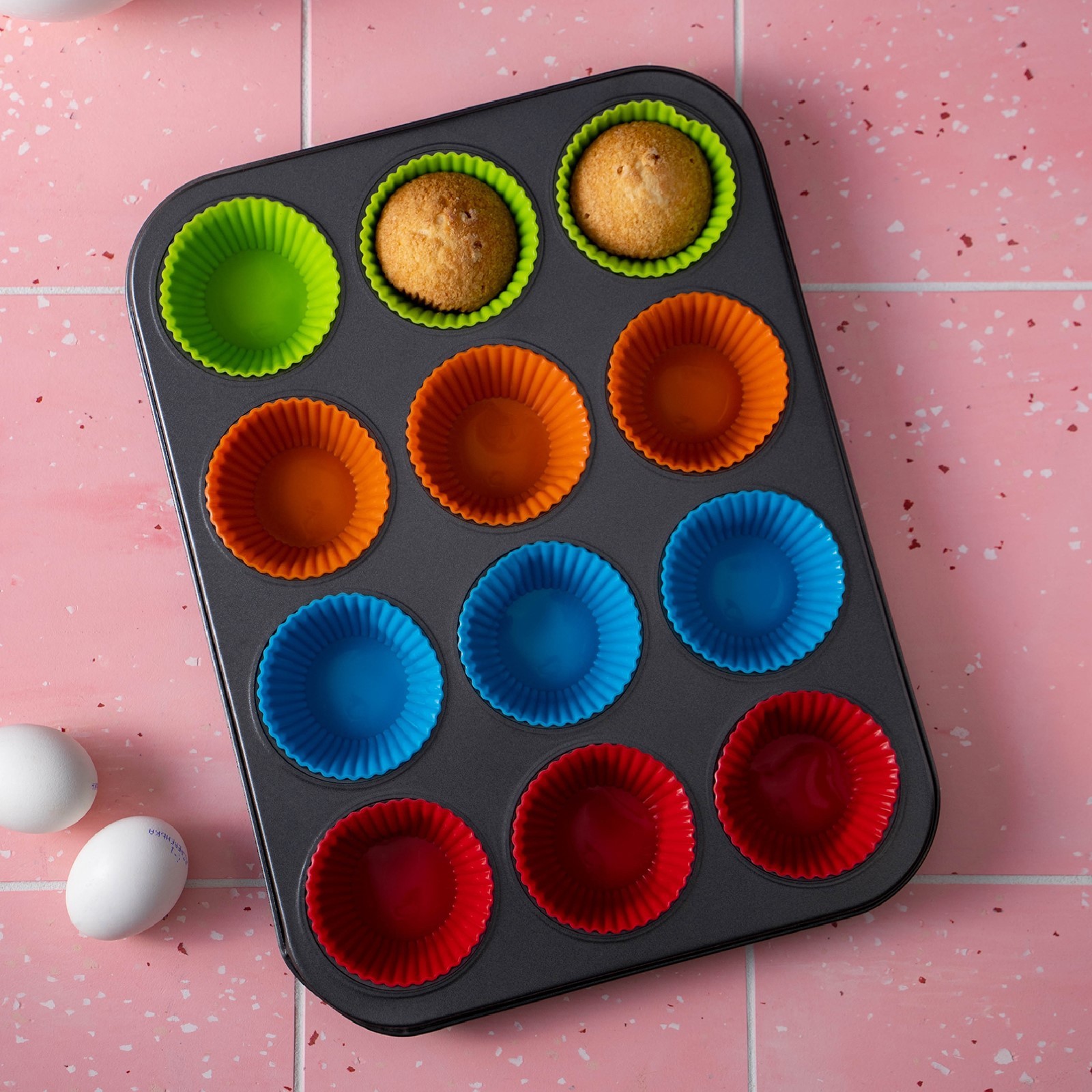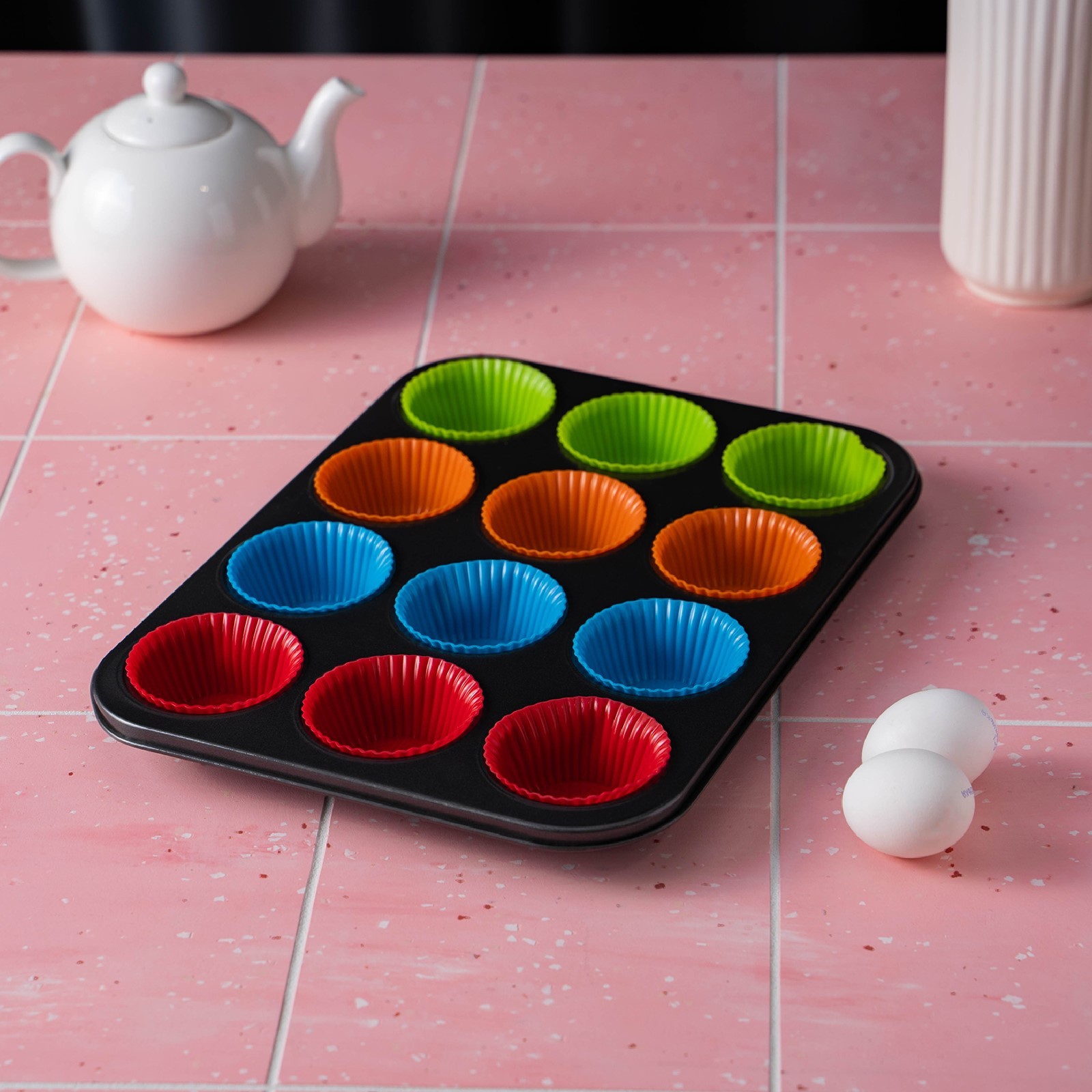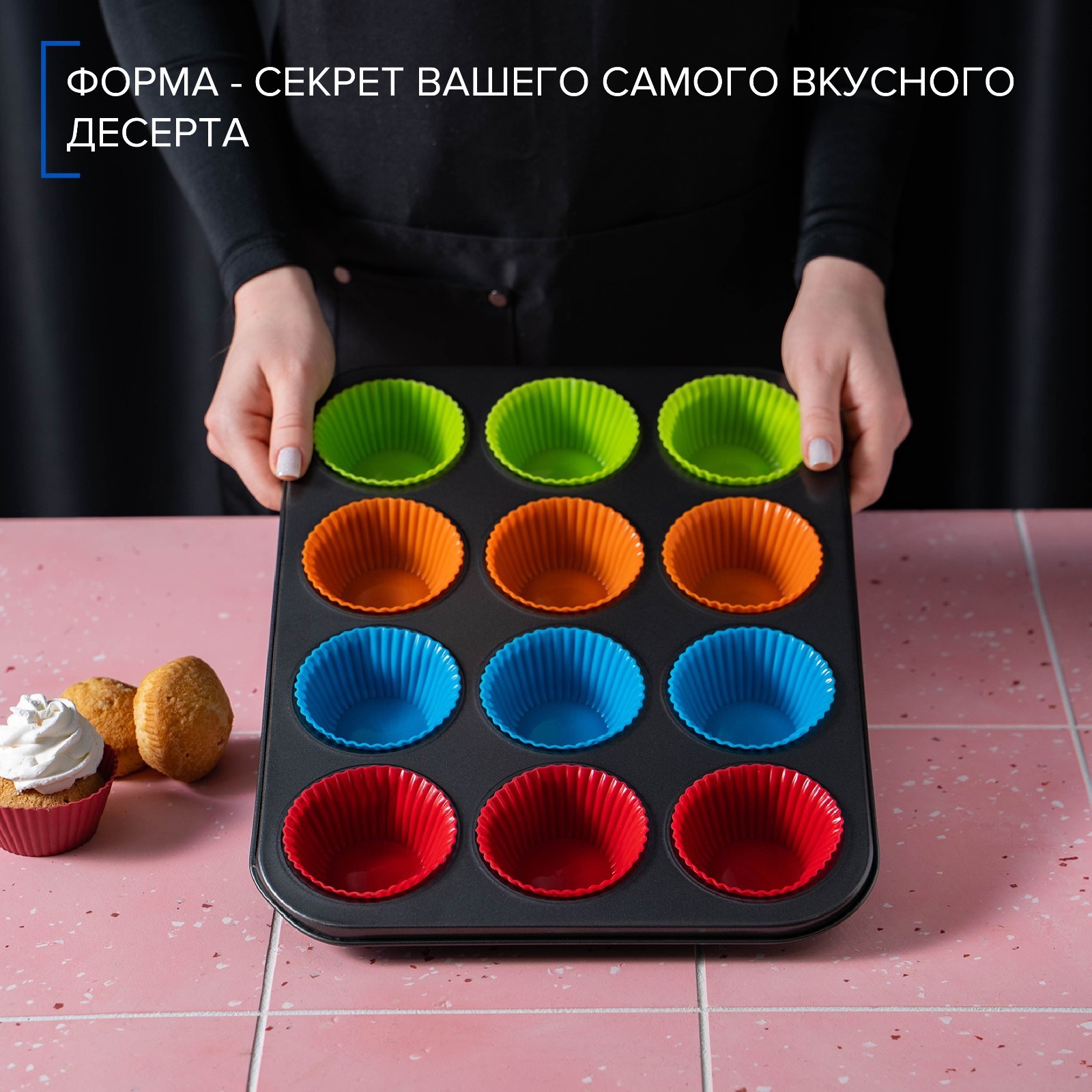 Форма для выпечки доляна «силикон плюс», 35x26,5x2,5 см, 12 ячеек, силиконовые вкладки, антипригарное покрытие, цвет формочек ми