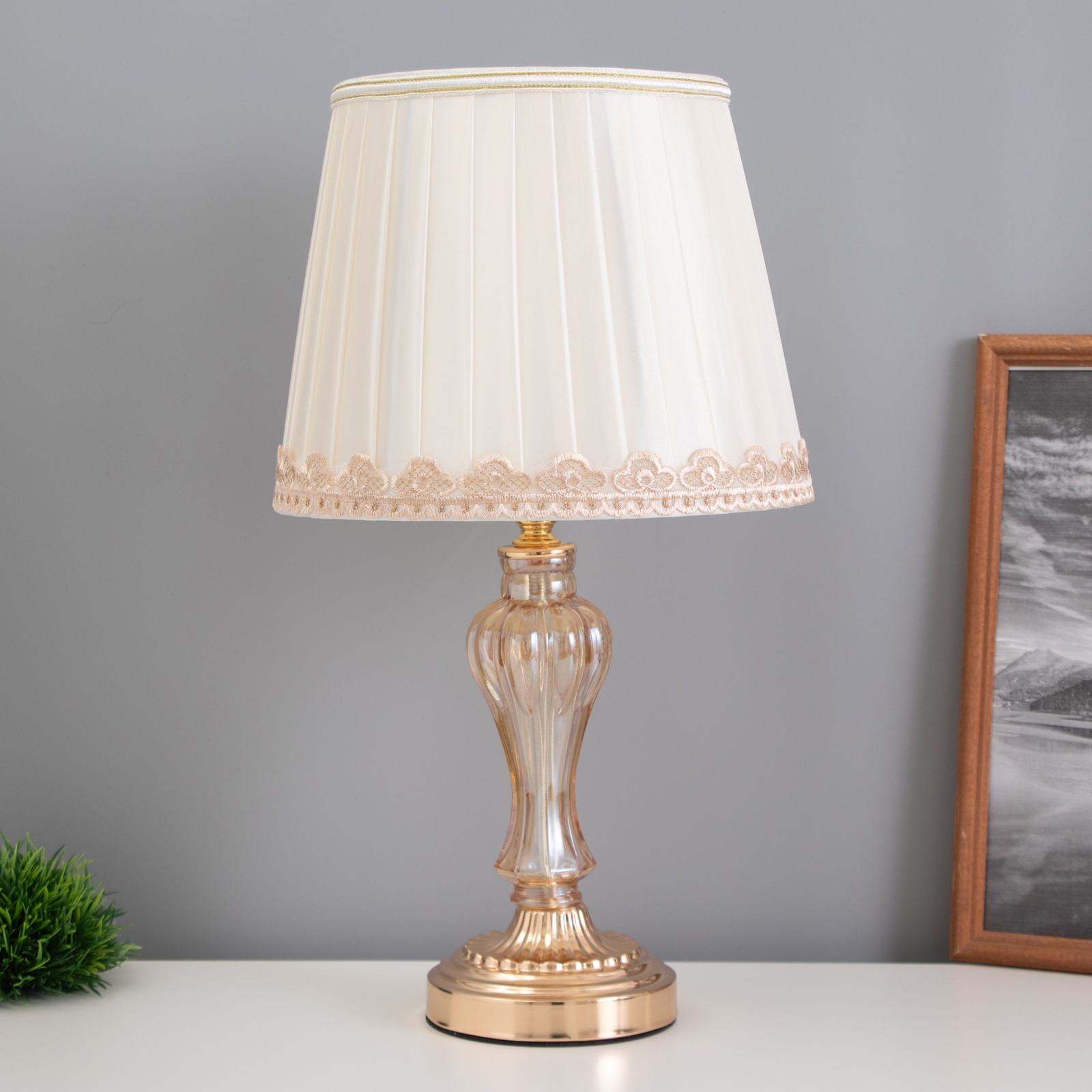 Лампа настольная «азарт» 1 60 вт e27 золото 26 26 43 см. Настольная лампа с золотым основанием станет прекрасным дополнением вашего интерьера. Она привнесет элегантность и стиль в любое помещение, будь то кабинет, спальня или гостиная. Трапециевидный абажур в светлых тонах мягко рассеивает свет, создавая атмосферу уюта и тепла. Особенности Высота 43 см и ширина 26 см делают лампу компактной и удобной для размещения на столе или тумбочке. Металлическое основание в золотом цвете придает изделию роскошный вид и надежность. Подходит для использования с лампами накаливания мощностью до 60 Вт с цоколем E27. Управление осуществляется с помощью выключателя на проводе, что обеспечивает удобство в использовании. Текстильный плафон в бежевом цвете создает мягкое и комфортное освещение.Создайте атмосферу Эта лампа не только освещает пространство, но и добавляет стильный элемент в ваш дом. Она станет отличным выбором для праздников, таких как 8 Марта, а также для повседневного использования. Позвольте себе насладиться её светом и элегантным дизайном, который подчеркнет ваш уникальный стиль. Вид лампы:Накаливания|Количество ламп:1|Цоколь:E27|Длина, см:26|Ширина, см:26|Высота, см:43|Гарантийный срок, мес.:12|Мощность на цоколь, Вт:60|Тематика праздника:8 Марта|Материал основания:Металл|Цвет основания:Золотой|Тип рассеивателя:Абажур|Оттенок рассеивателя:Светлые тона|Материал рассеивателя:Текстиль|Управление светильником:С выключателем на проводе|Форма рассеивателя:Трапеция|Направление рассеивателя:Вверх|Особенность стиля:Классика|Цвет рассеивателя:Бежевый|Тип питания:От сети 220 В|Тип источника освещения:Лампа не в комплекте|Страна:Китай  развернуть описание ▼