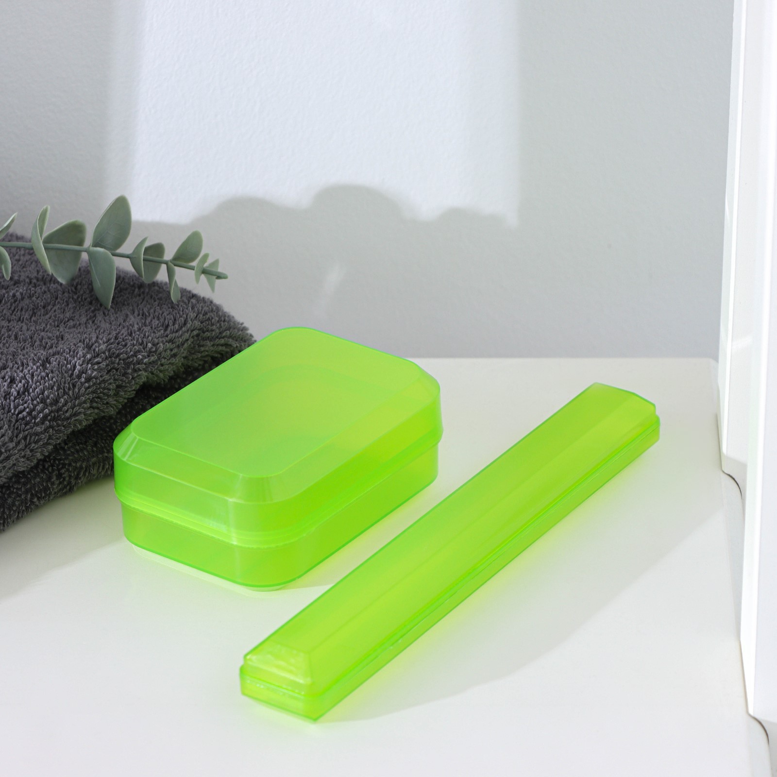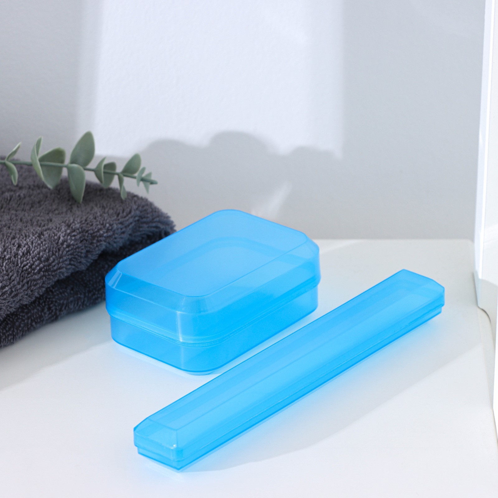 Набор дорожный, футляр для зубной щётки 19 см, мыльница 10x6x3,5 см, цвет микс