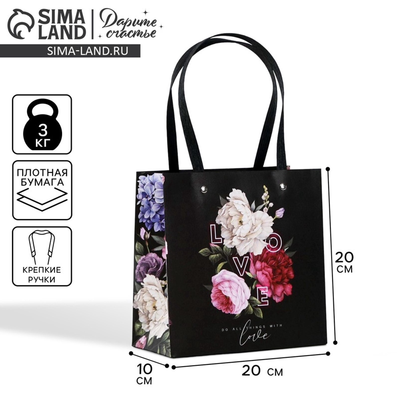 Пакет подарочный, упаковка, Love, 20 х 20 х 10 см