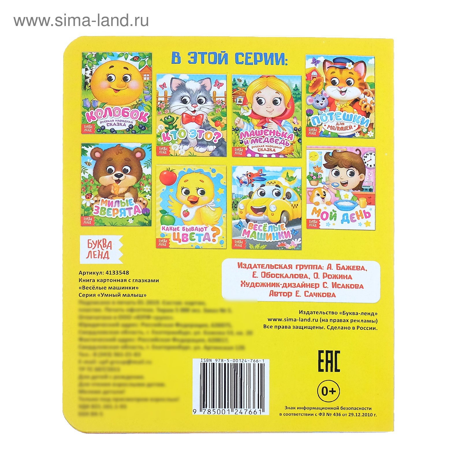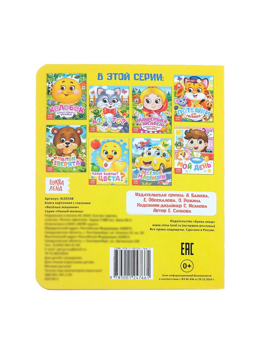 Книга картонная с глазками «весёлые машинки», 10 стр.