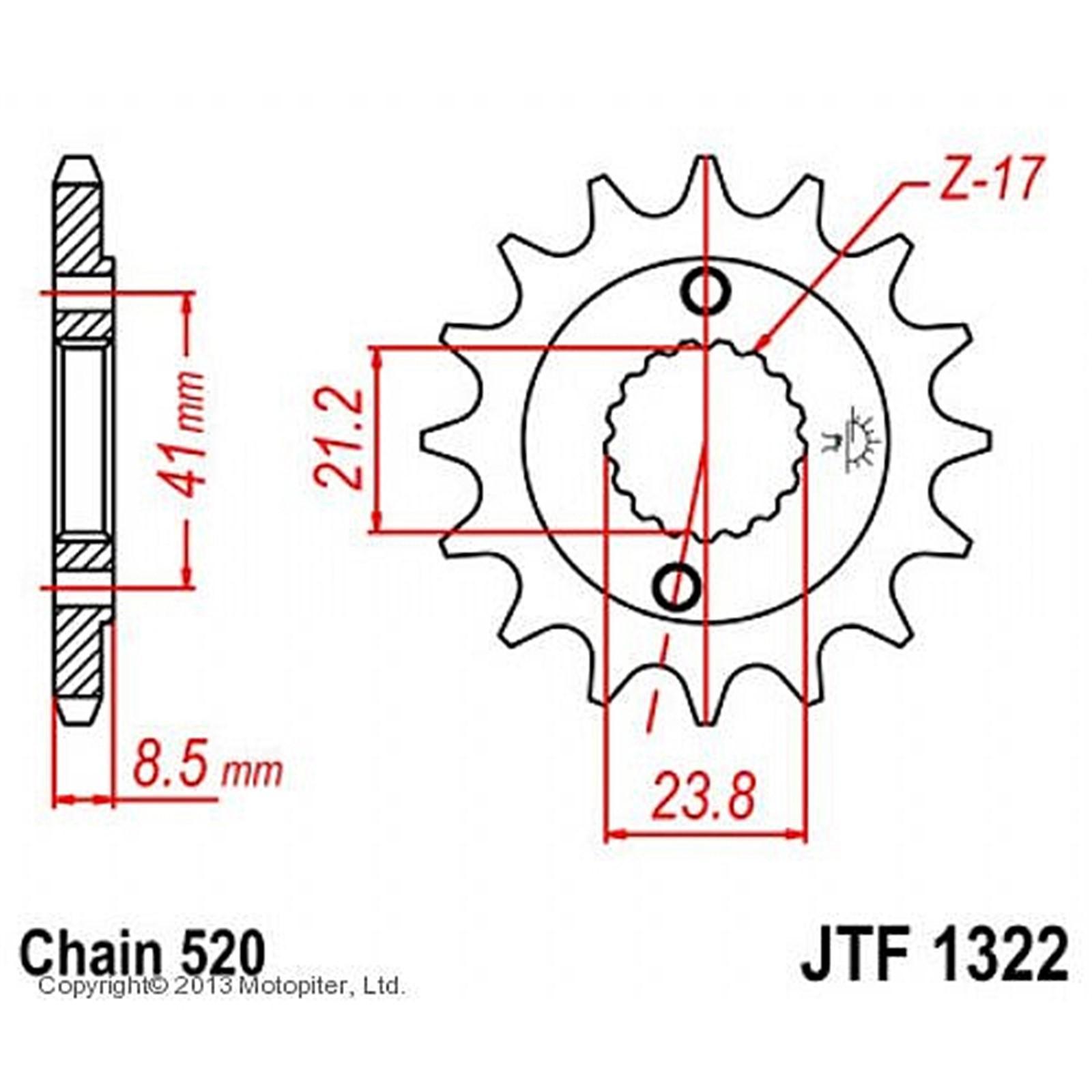 Звезда передняя, ведущая jtf1322, стальная, цепь 520, 14 зубьев.