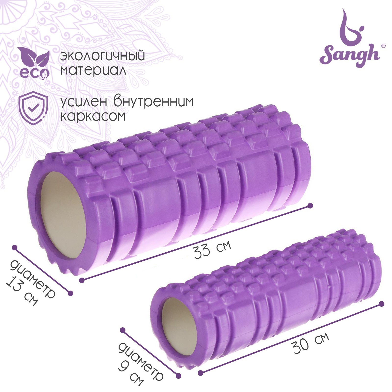 Набор массажных роликов 2 в 1 sangh, 33х13 см и 30х9 см, цвет фиолетовый. Роллер для йоги — спортивный инвентарь, который помогает настроить мышцы на работу перед тренировкой, удерживать правильное положение тела во время неё и ослабить боль в мышцах и суставах после. Параллельно способствует восстановлению всего организма. Ролик позволяет практиковать миофасциальное расслабление (МФР). Использование изделия становится доступной альтернативой массажной терапии. В комплект входят 2 ролика. Цвет: Фиолетовый Вид: Ролики  развернуть описание ▼