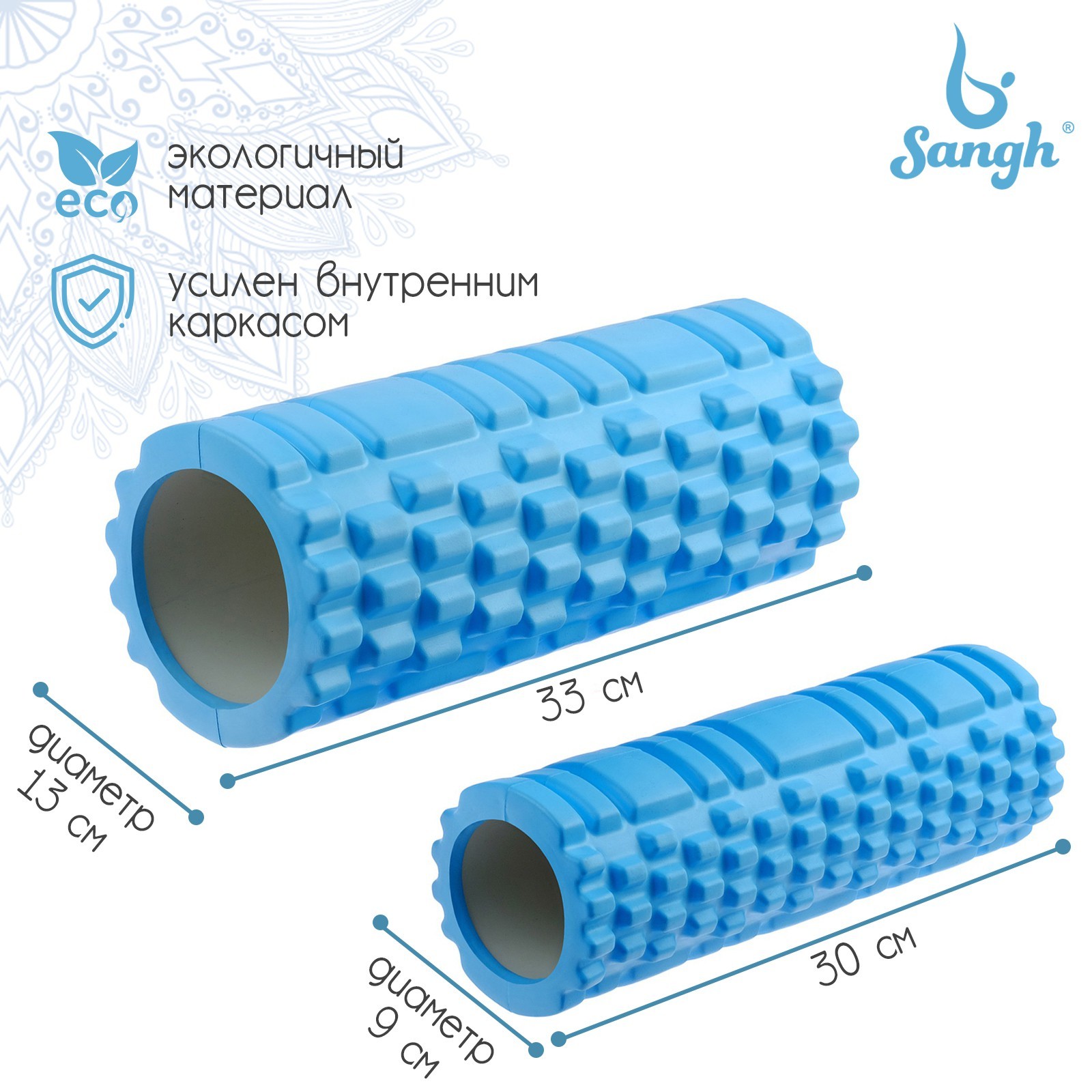 Набор массажных роликов 2 в 1 sangh, 33х13 см и 30х9 см, цвет голубой. Роллер для йоги — спортивный инвентарь, который помогает настроить мышцы на работу перед тренировкой, удерживать правильное положение тела во время неё и ослабить боль в мышцах и суставах после. Параллельно способствует восстановлению всего организма. Ролик позволяет практиковать миофасциальное расслабление (МФР). Использование изделия становится доступной альтернативой массажной терапии. В комплект входят 2 ролика. Цвет: Голубой Вид: Ролики  развернуть описание ▼