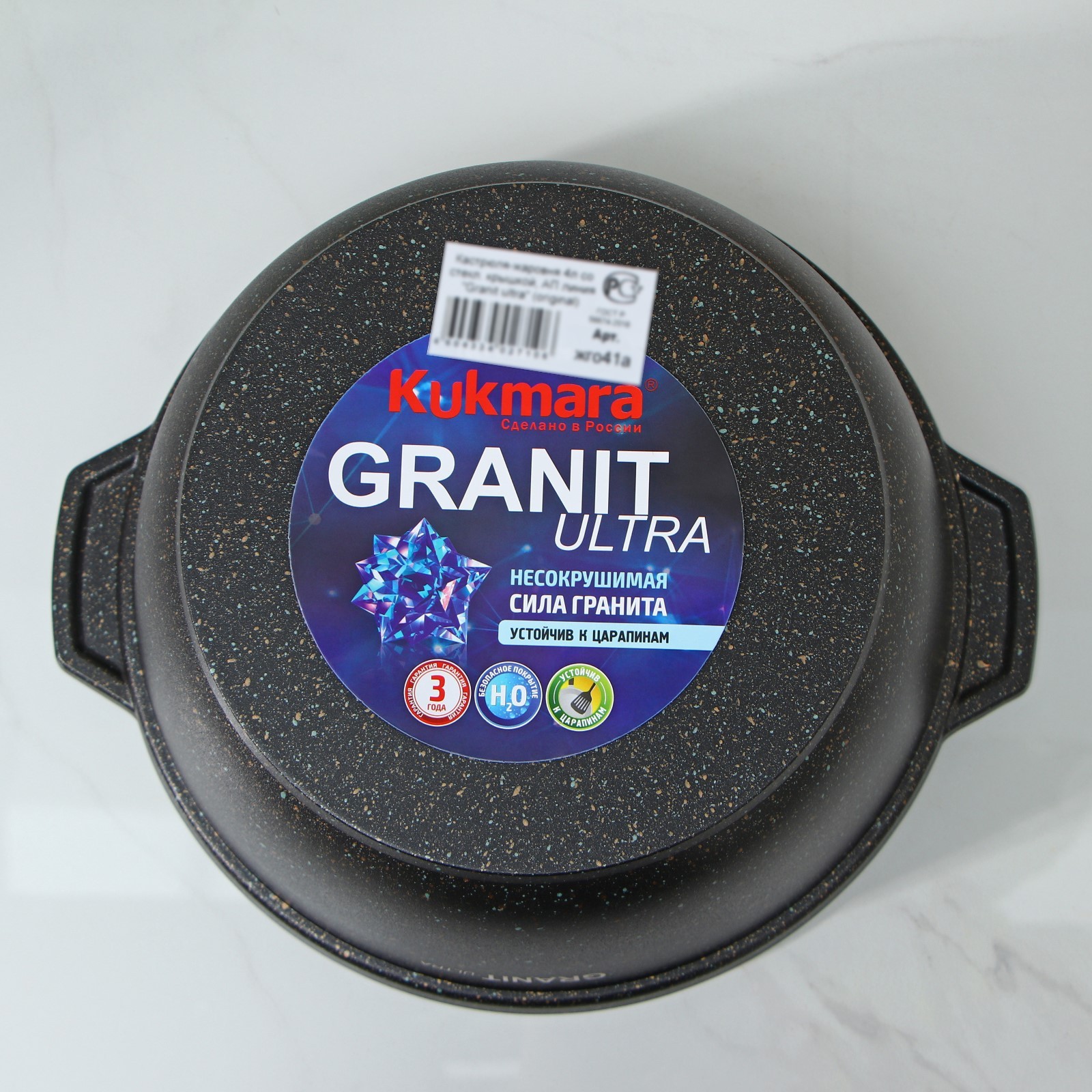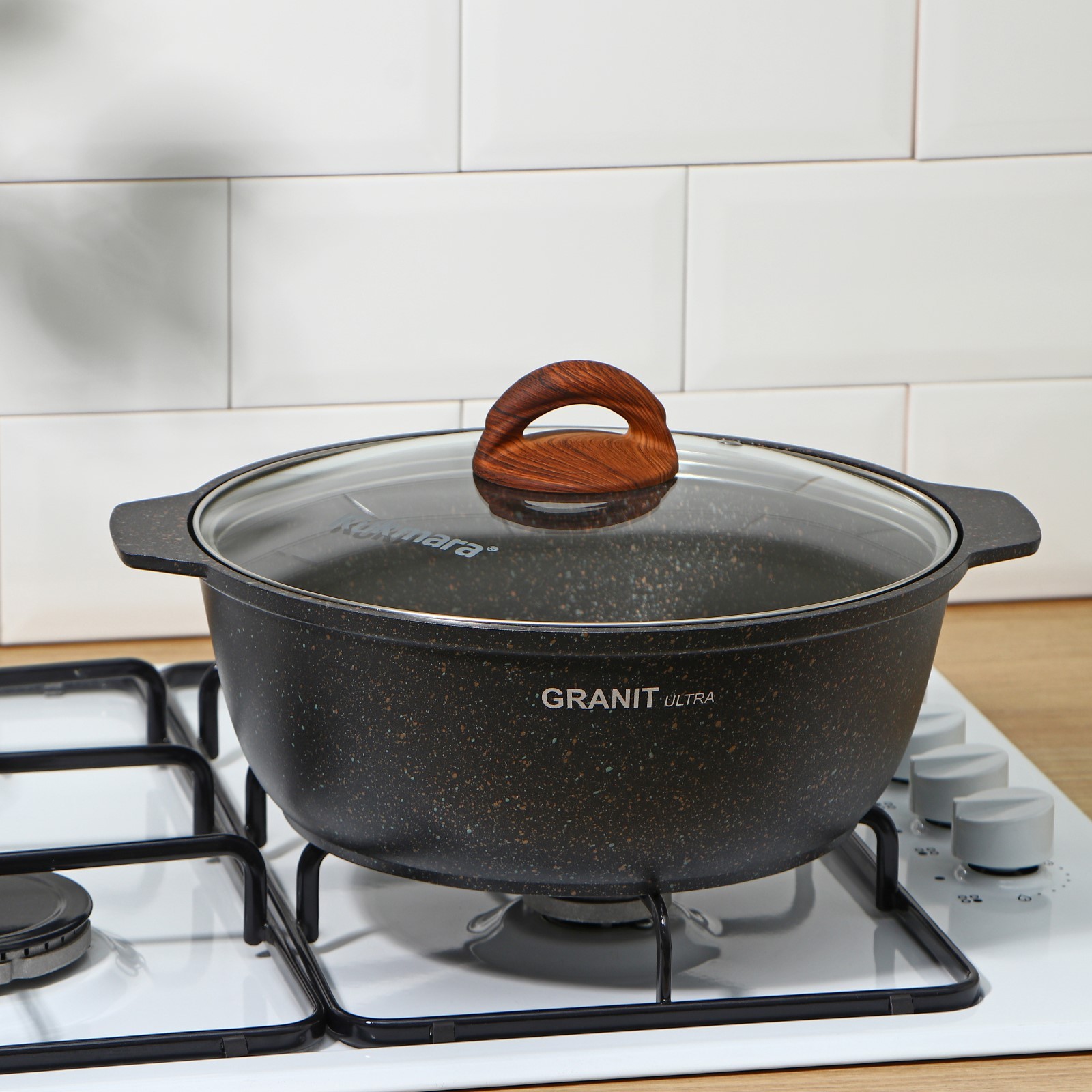 Кастрюля-жаровня Granit Ultra Original, 4 л, стеклянная крышка, антипригарное покрытие, цвет чёрный