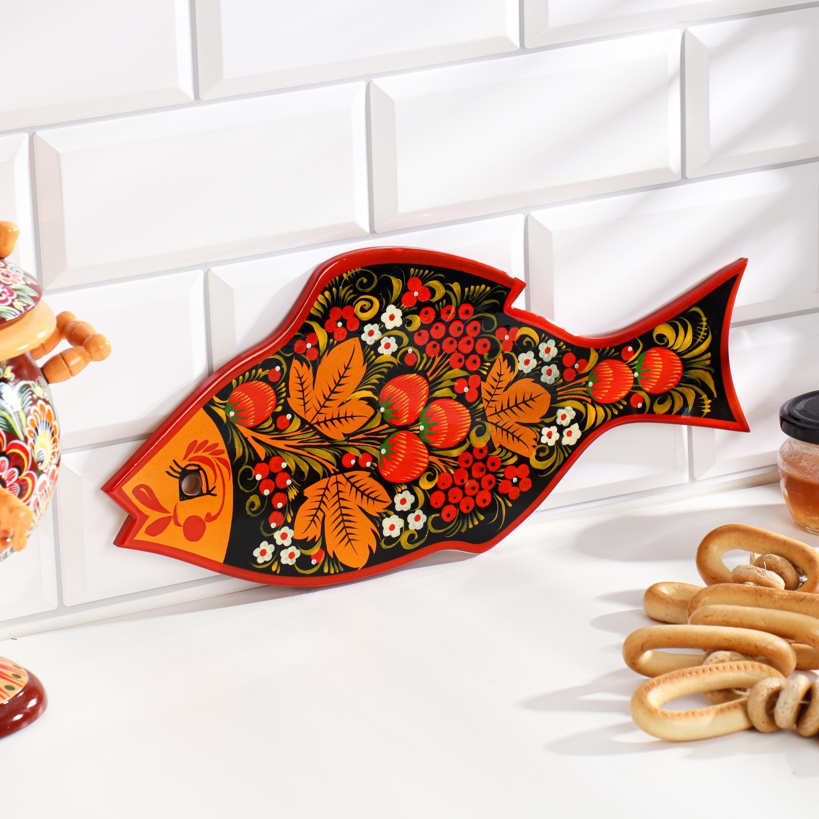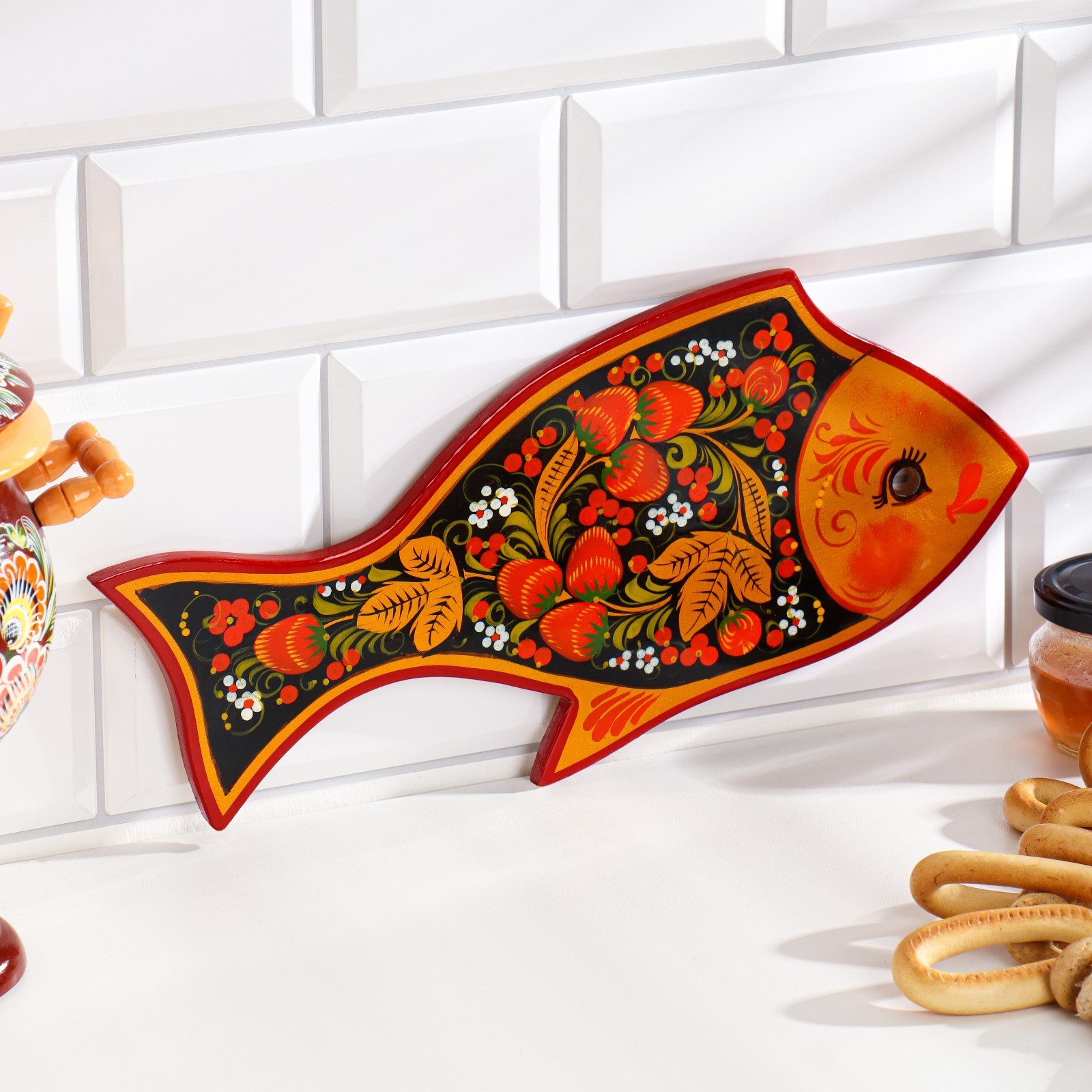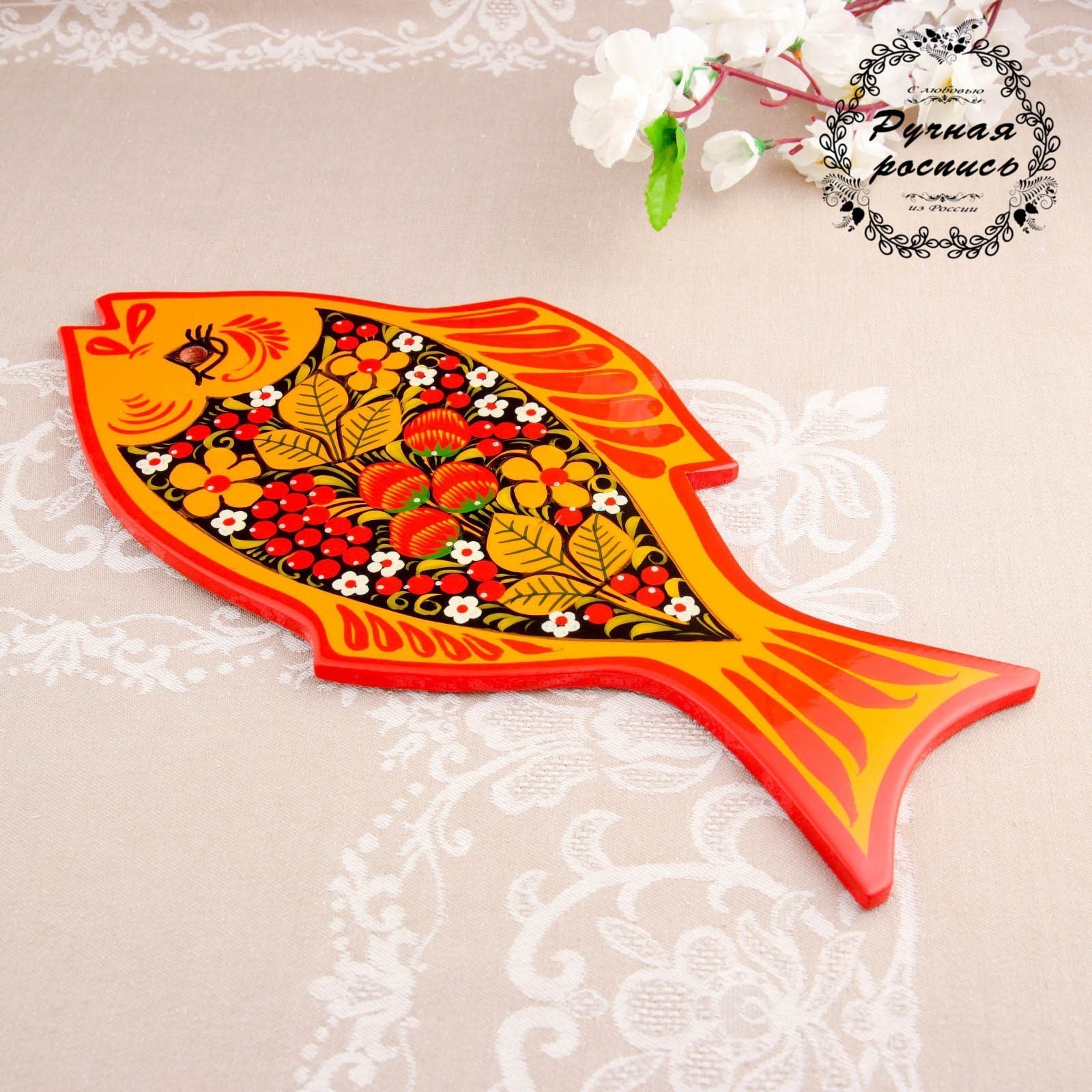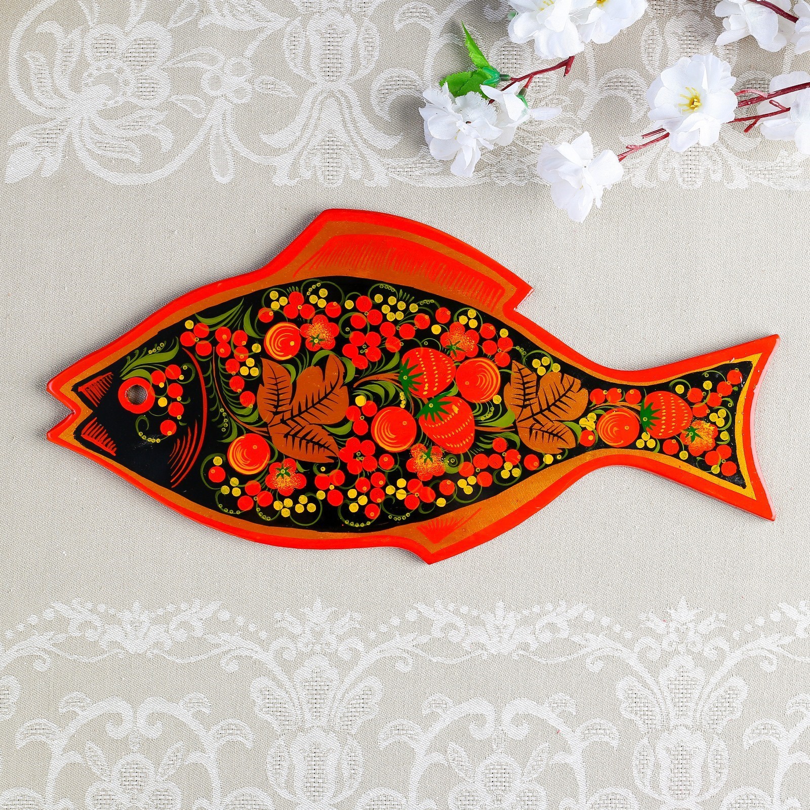 Доска разделочная «рыбка», 36x18 см, хохлома