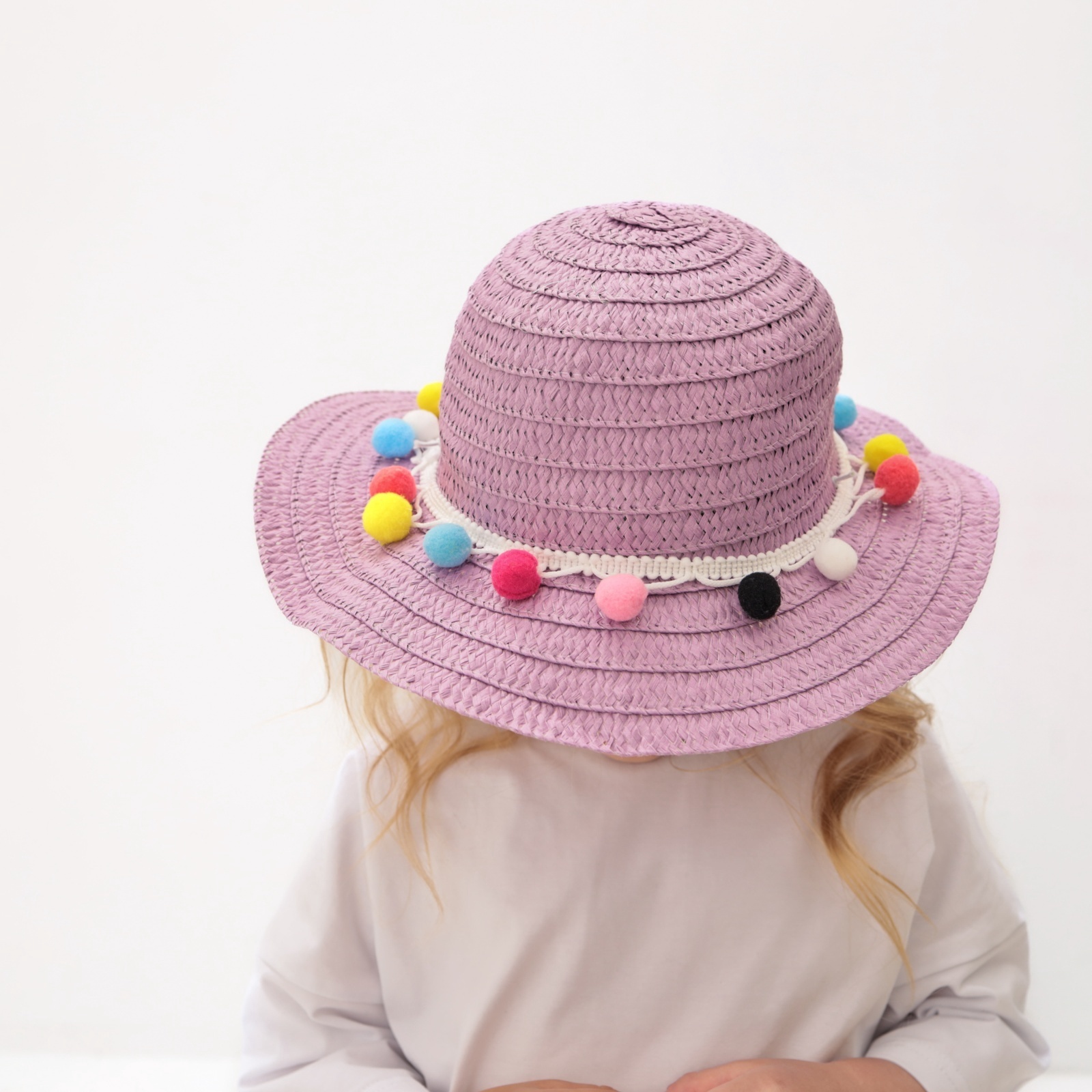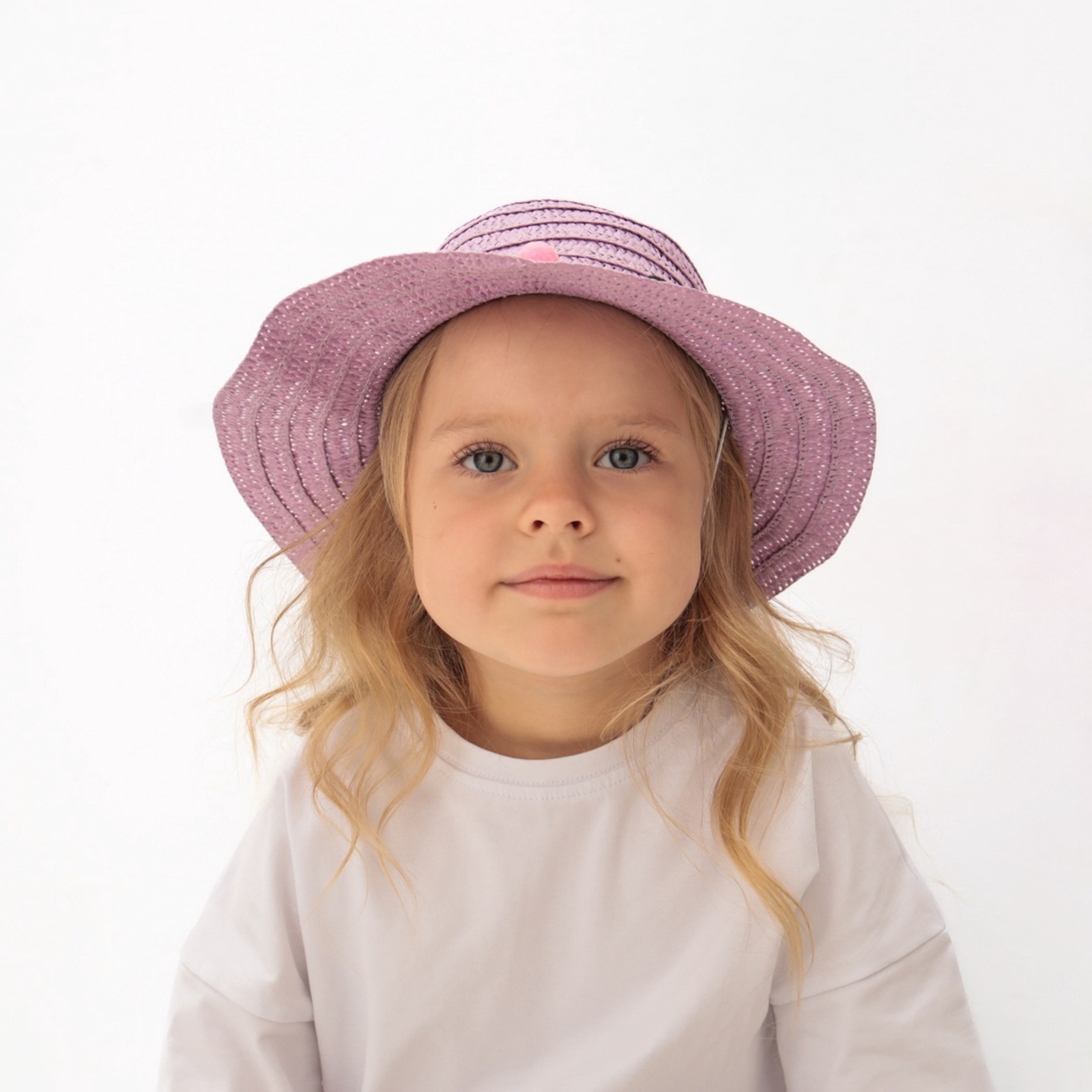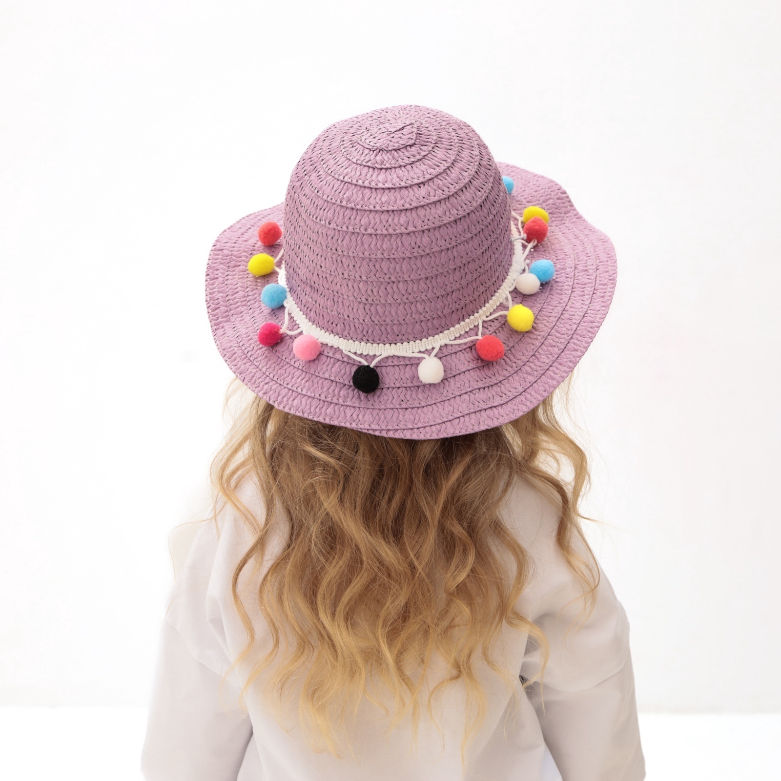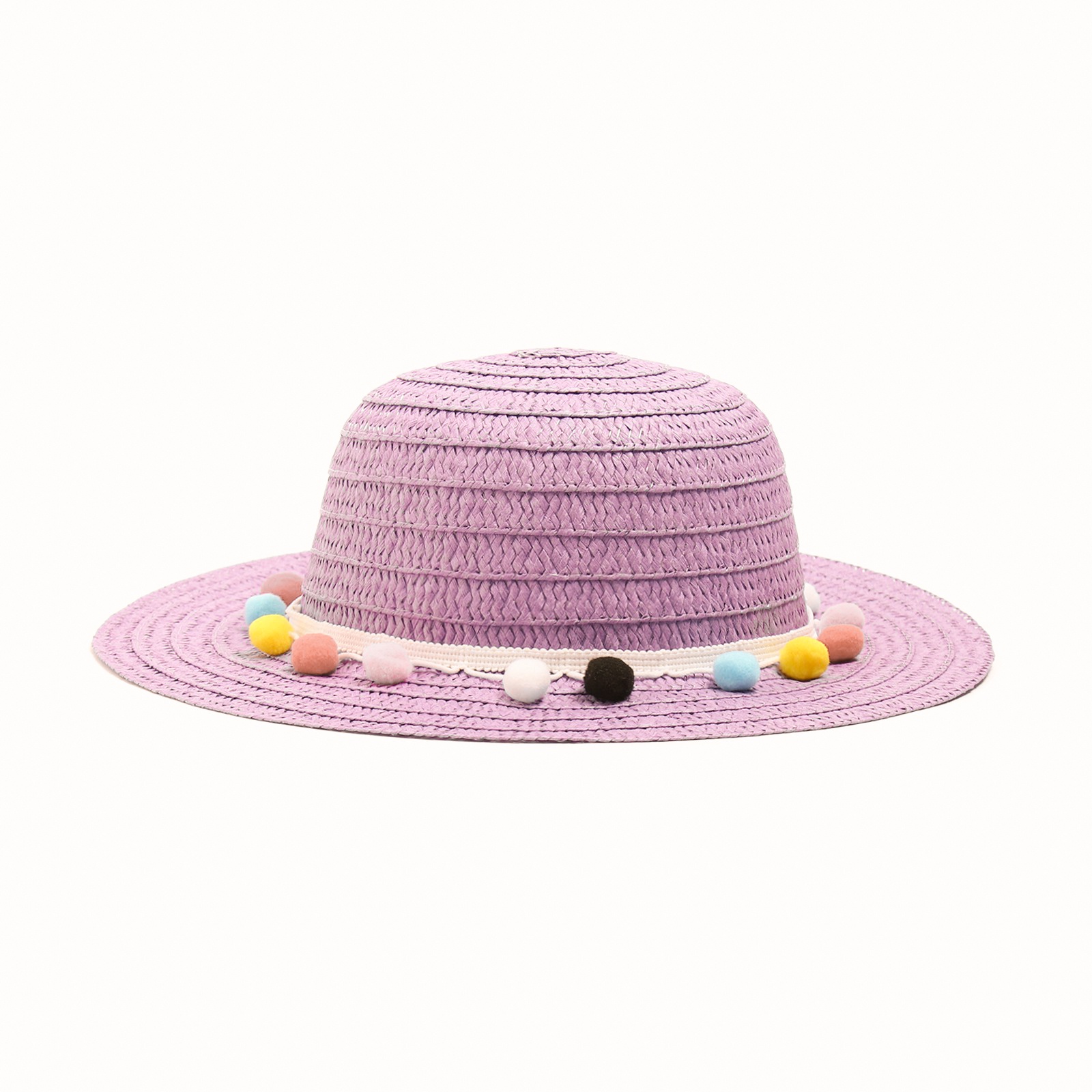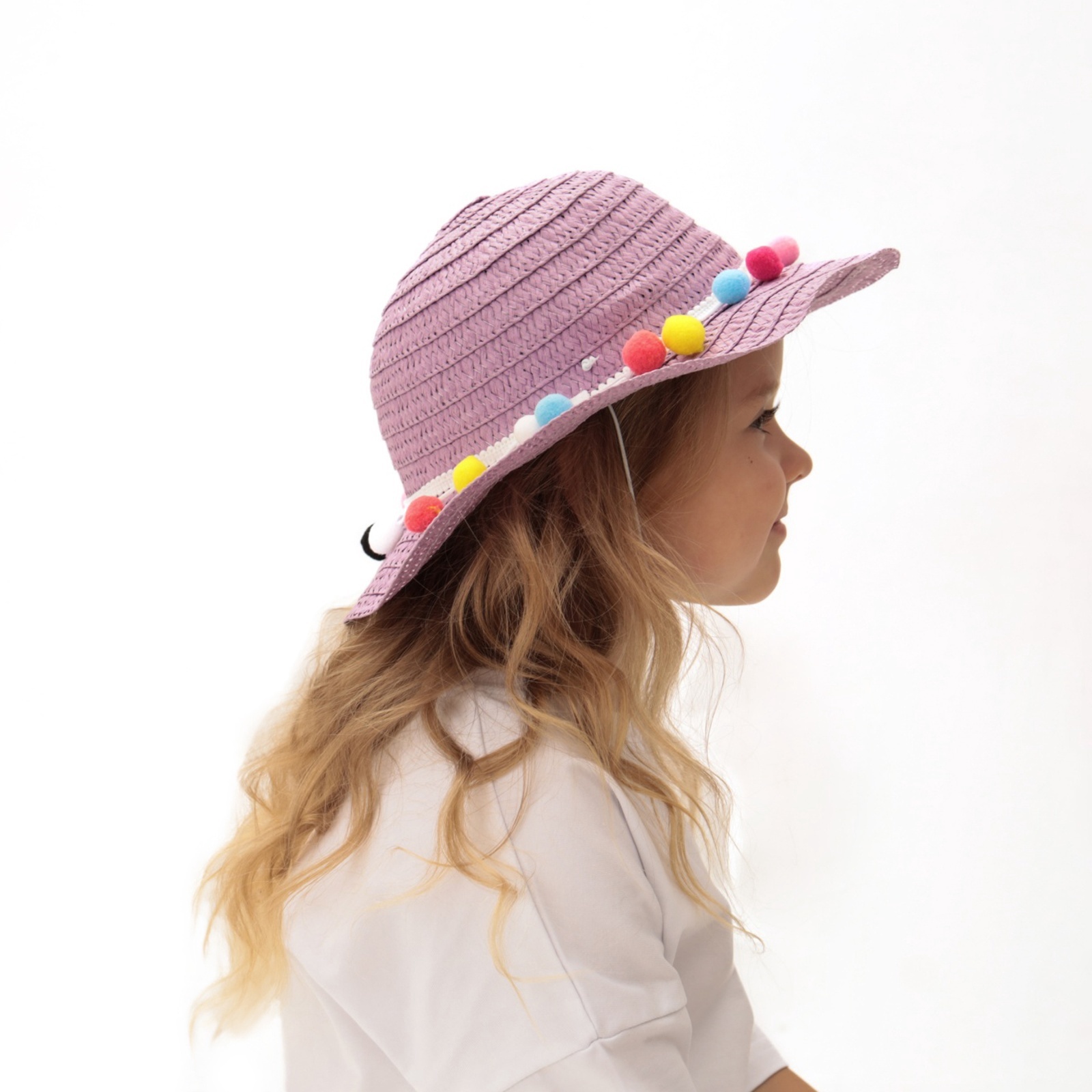 Шляпа с бомбошками для девочки Minaku, фиолетовая, размер 50