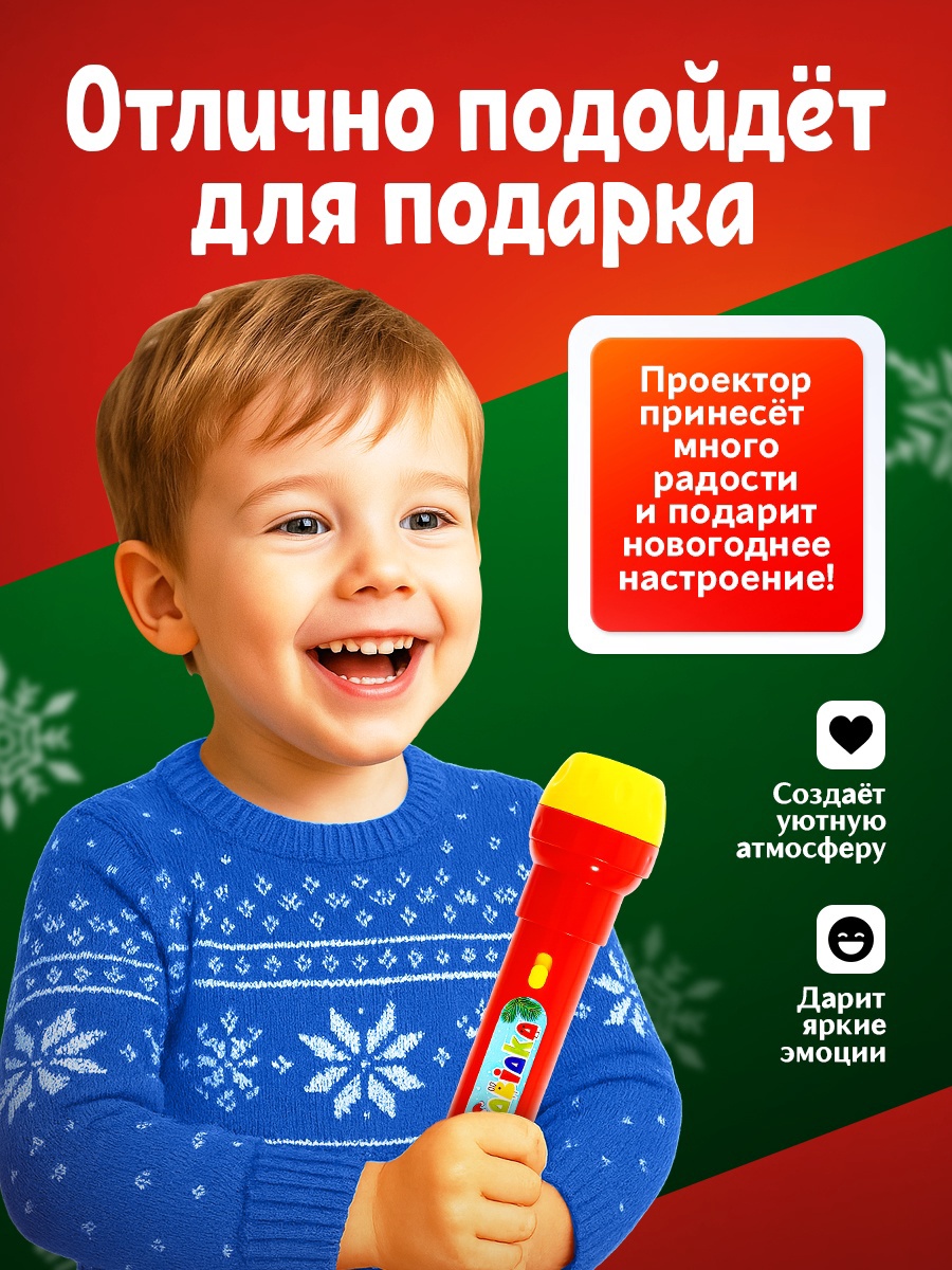 Проектор-фонарик «чудо проектор», 3 слайда, 24 картинки, цвета микс