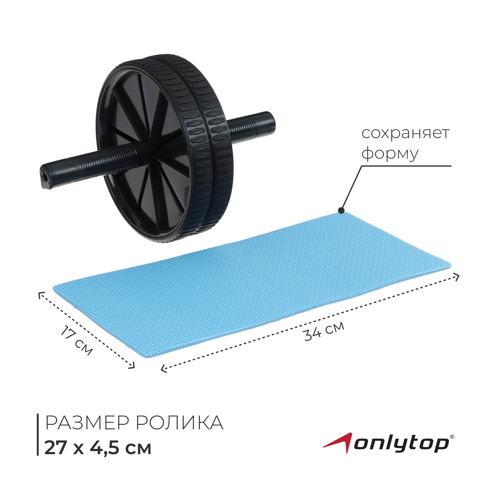 Ролик для пресса onlytop, 2 колеса, 20х17х17 см, цвета микс. Многие считают, что создать рельефный пресс могут только изнурительные и дорогостоящие тренировки в спортивном зале. Интернет-магазин Бельведор предлагает вам альтернативный, не менее эффективный вариант по низкой цене. Колесо-упор станет настоящей находкой даже для малогабаритной квартиры. С его помощью вы сможете: похудеть и привести мышцы в тонус; сэкономить средства и время от посещения спортивного зала; заниматься спортом даже на отдыхе; улучшить осанку; развить мышцы (около 20). Техника проста и легка в исполнении. Возьмите ролик в руки и зафиксируйте тело в позе стоя на четвереньках, расположите снаряд на вытянутых руках под плечами. На выдохе прокатите ролик вперёд, увлекая тело за руками, в горизонтальное положение. Задержитесь на несколько секунд и вернитесь в исходную позицию. Повторите это упражнение несколько раз. Материал: Металл Материал: Пластик  развернуть описание ▼