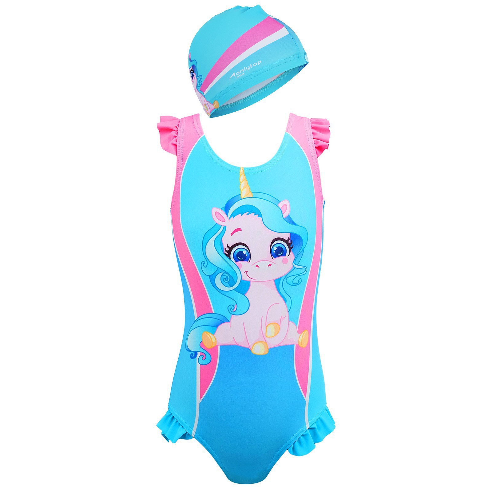 Купальник для девочек + шапочка Onlitop, р. 28, рост 110 см, обхват 46-52 см