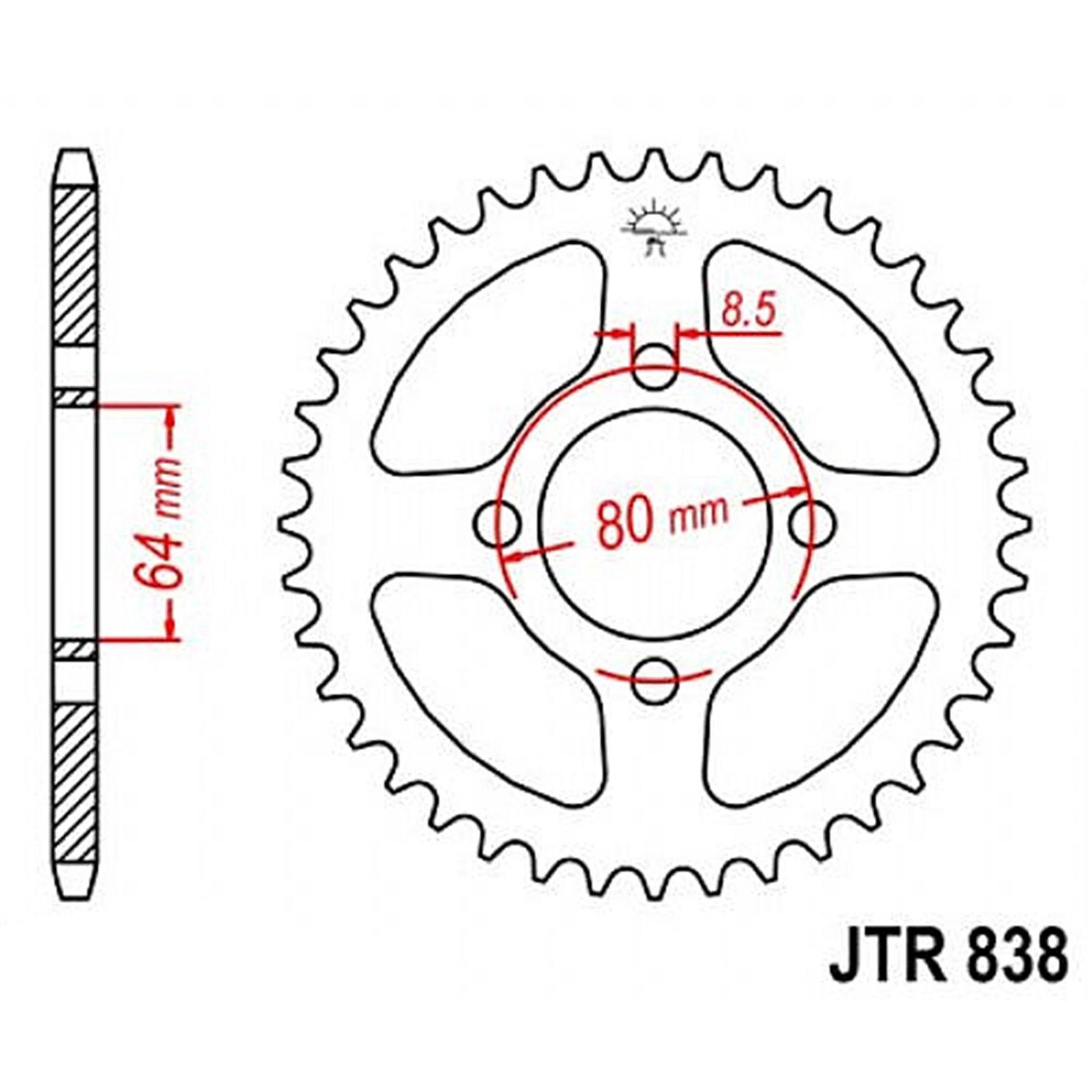 Звезда задняя, ведомая, Jtr838 для мотоцикла стальная, цепь 428, 45 зубьев