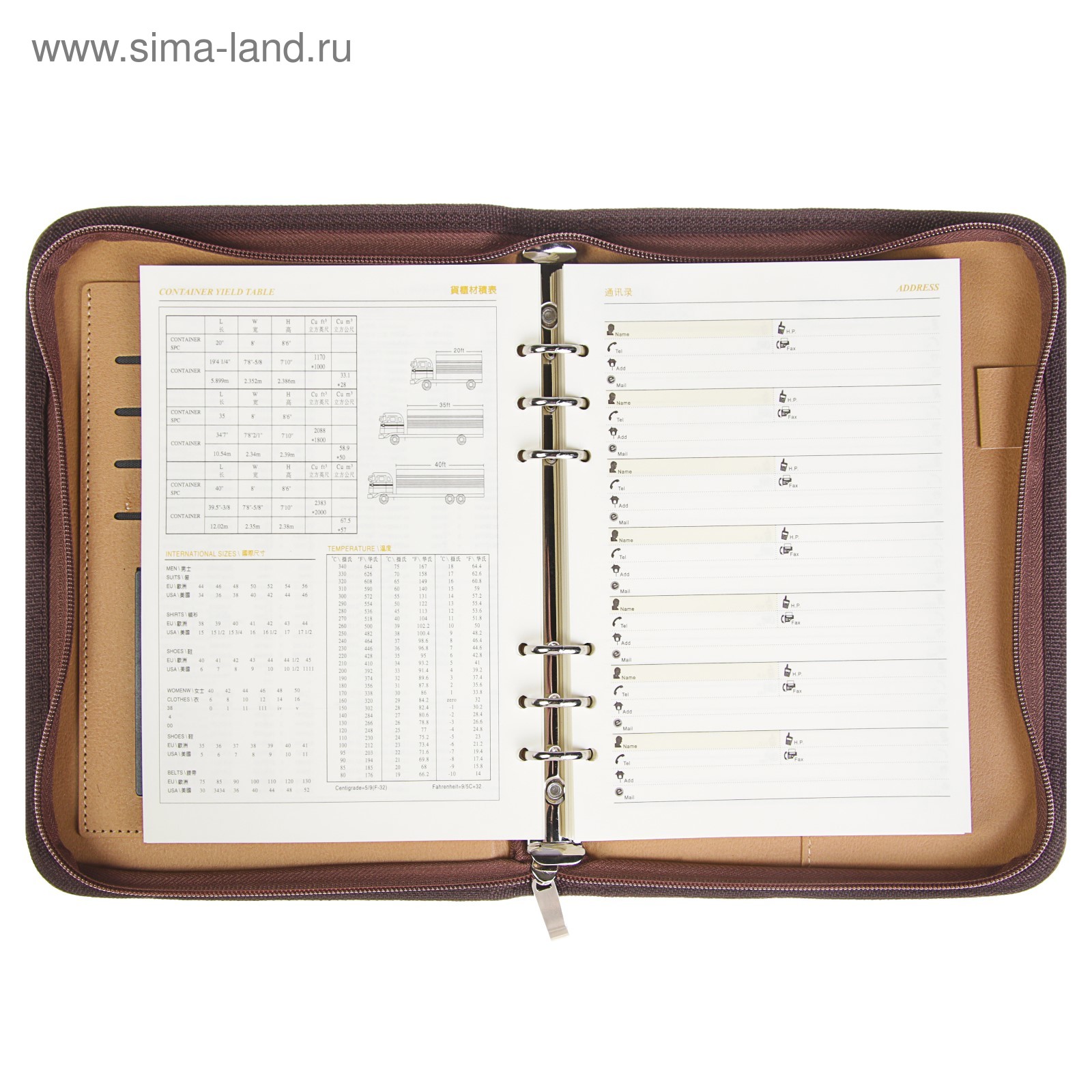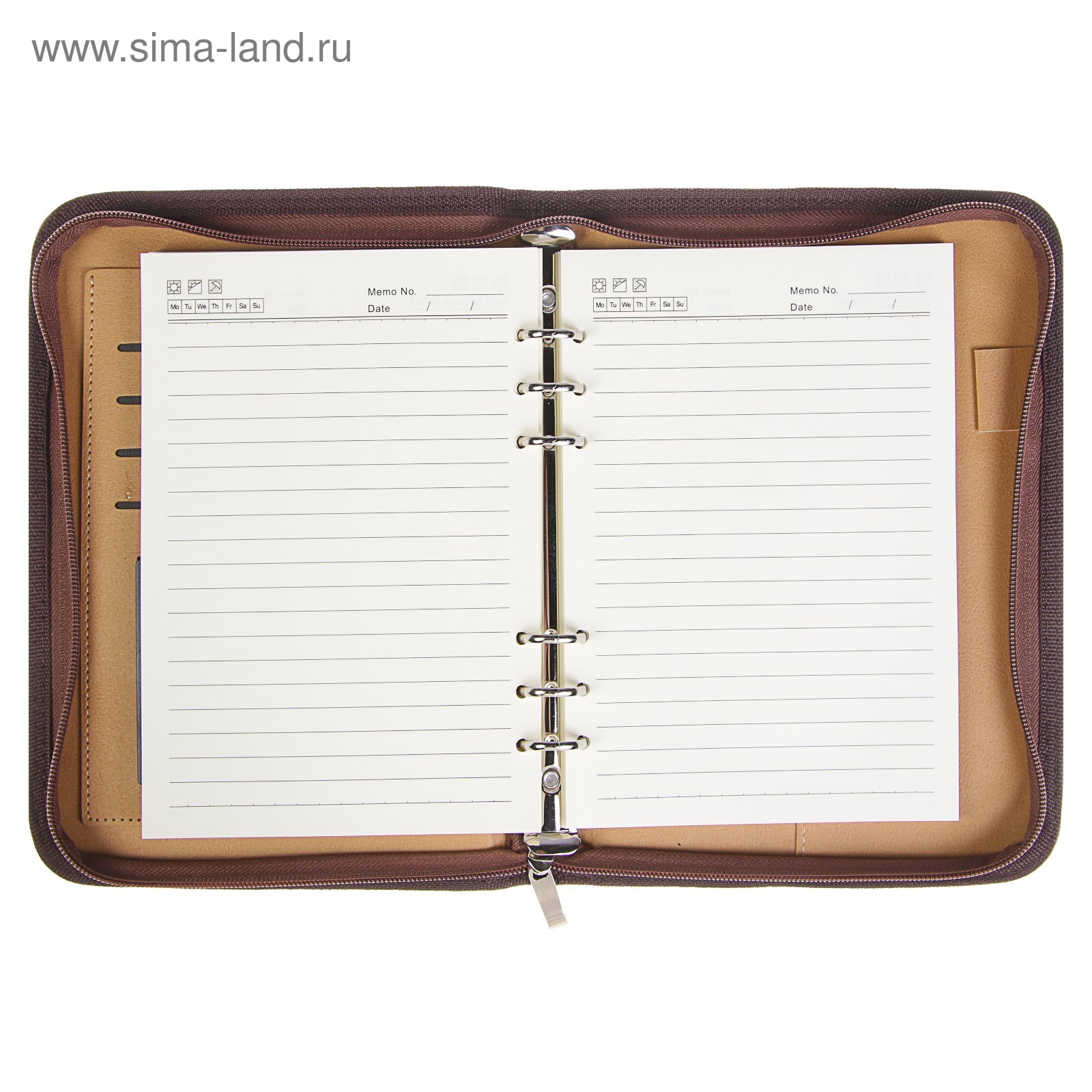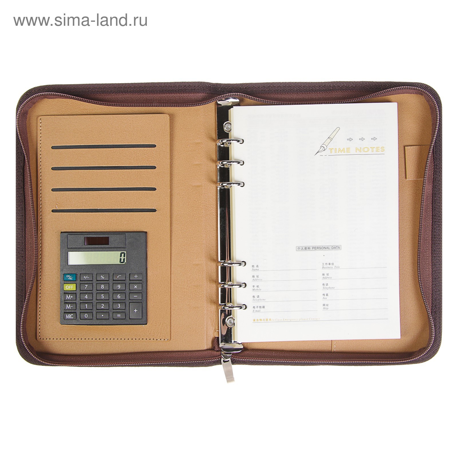 Органайзер на кольцах а5, 100 листов в линейку, с калькулятором, на молнии, коричневый