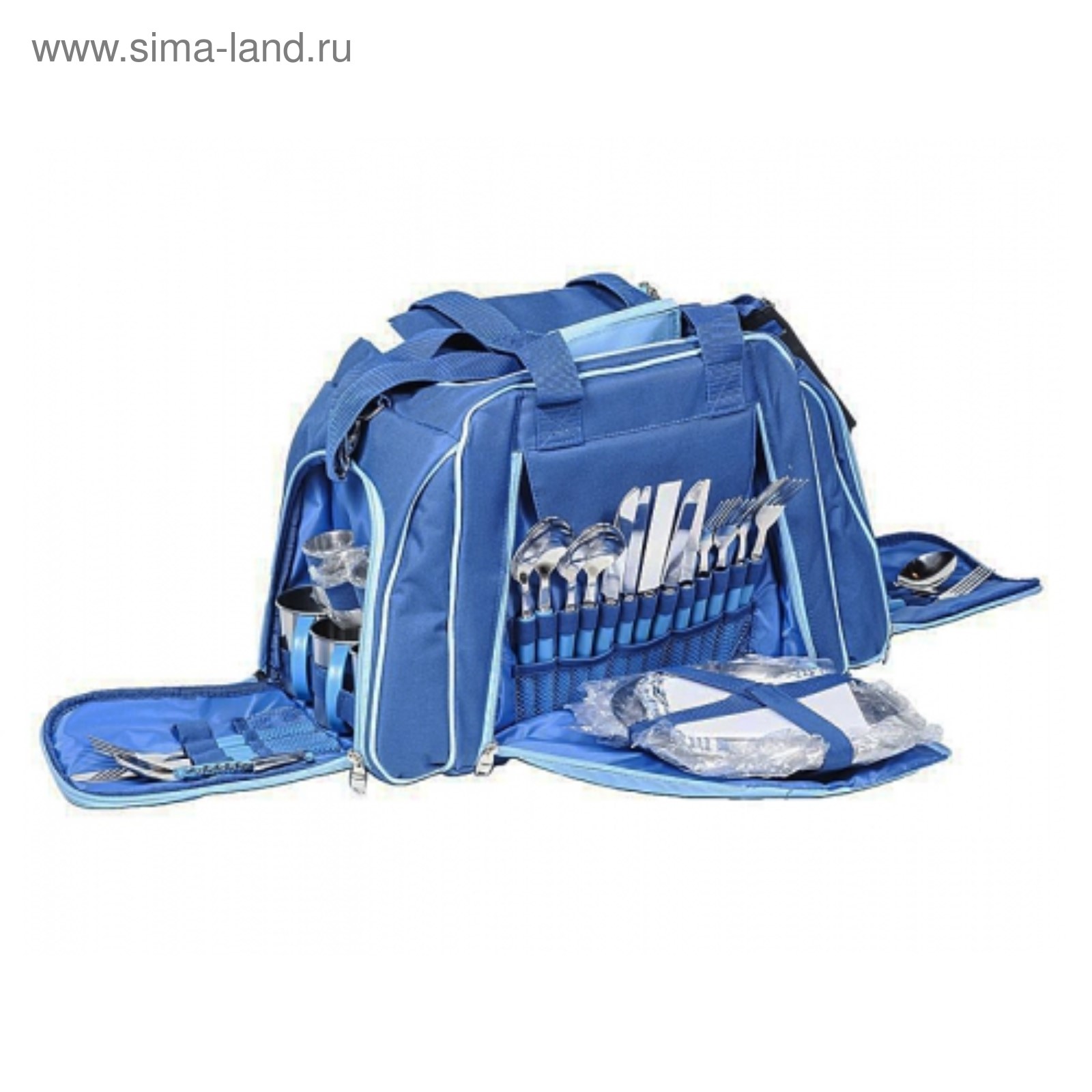 Набор для пикника на 6 человек, 46 предметов, 25 л, синяя сумка. Цвет: Синий Количество персон: 6 В наборе, шт.: 47 Вид упаковки: Сумка-органайзер Материал: Стекло Материал: Металл Вид: Набор для приготовления и принятия пищи Назначение: Для приёма пищи Комплектация: Кухонные принадлежности Комплектация: Столовая посуда Комплектация: Столовые приборы  развернуть описание ▼