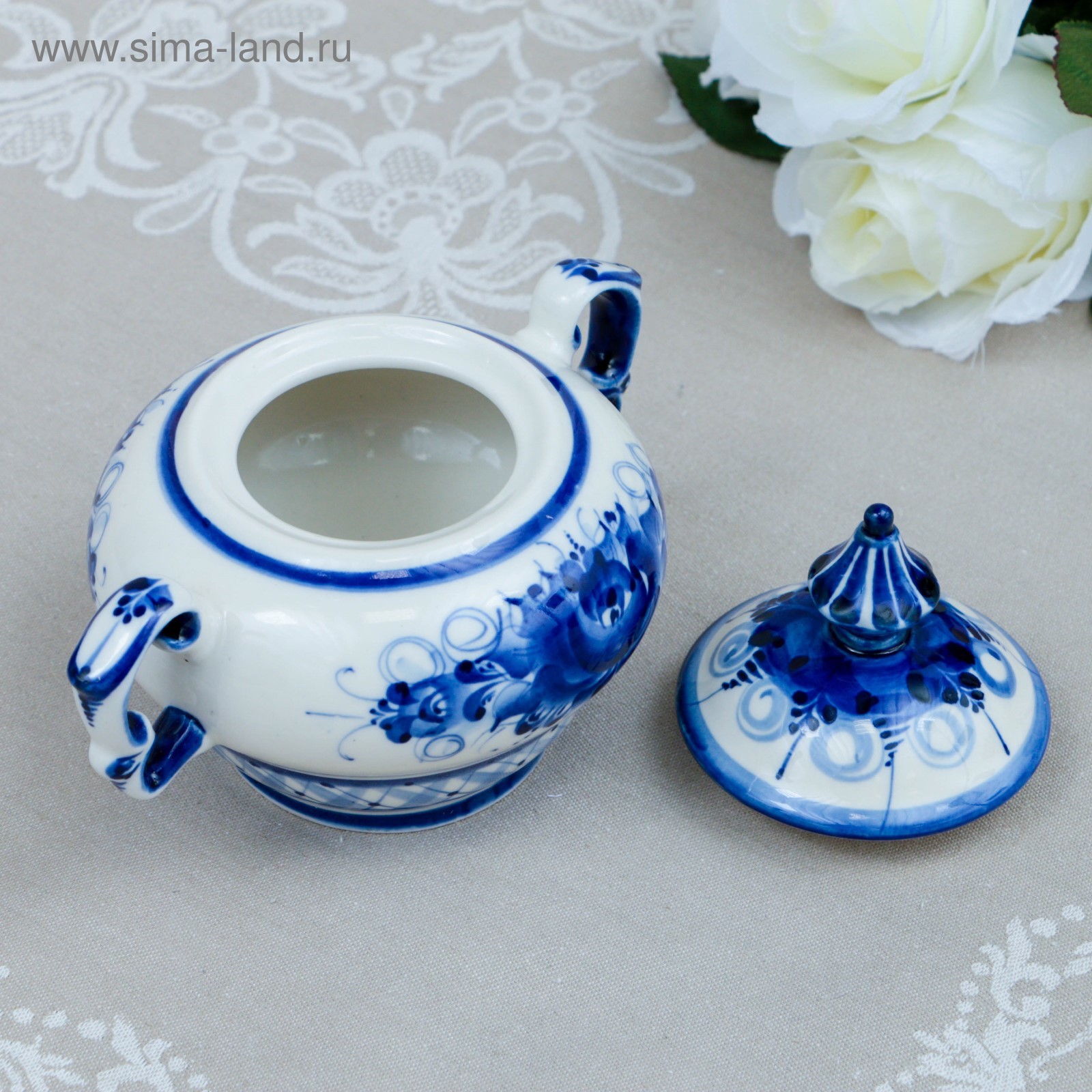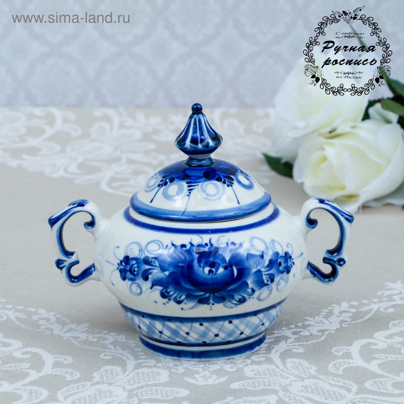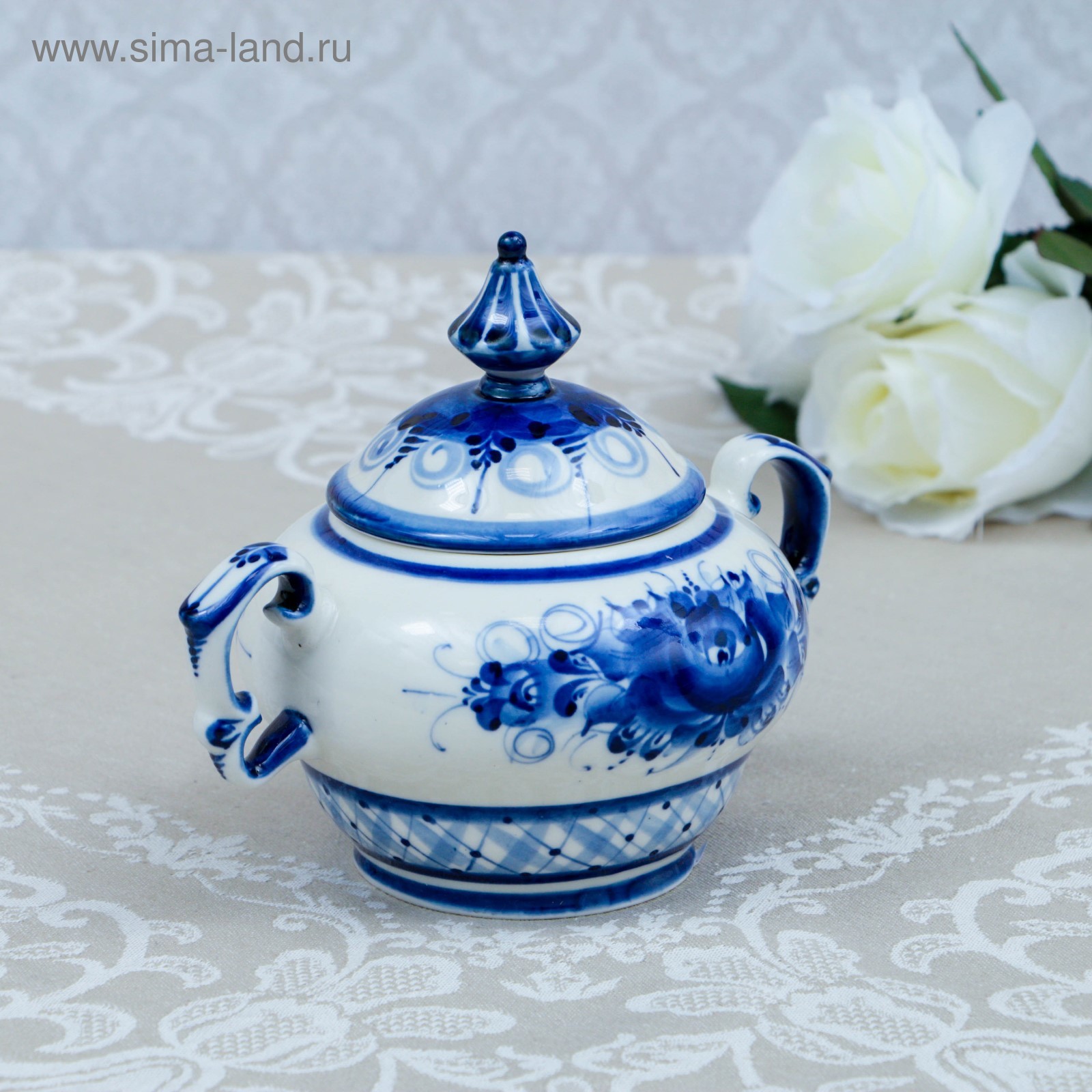 Сахарница, гжель, фарфор, автор маланина, 15х18 см
