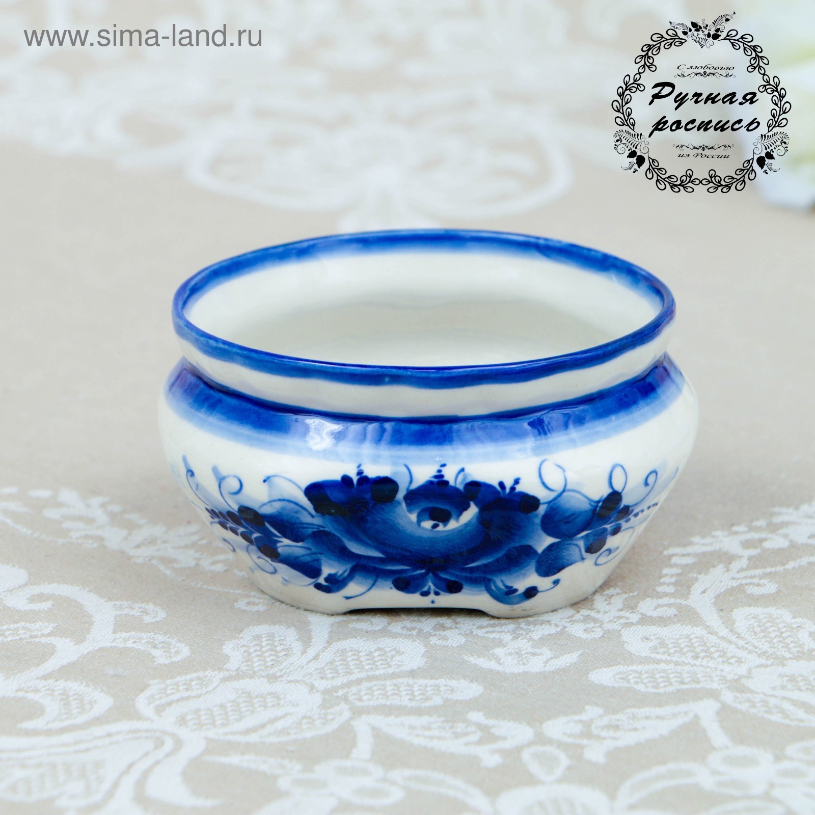 Миска-бульонница, гжель, фарфор, автор окулова, 6х11 см