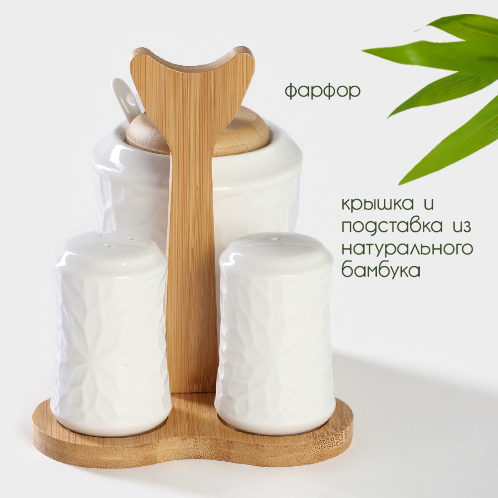 Набор фарфоровый для специй Bellatenero «кракле», 3 предмета: солонка 100 мл, перечница 100 мл, сахарница с ложкой 350 мл, цвет