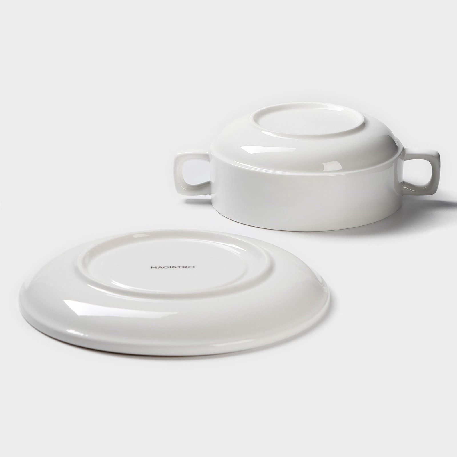 Бульонница фарфоровая Magistro «бланш», 2 предмета: бульонница 400 мл, блюдце D=18 см, белое