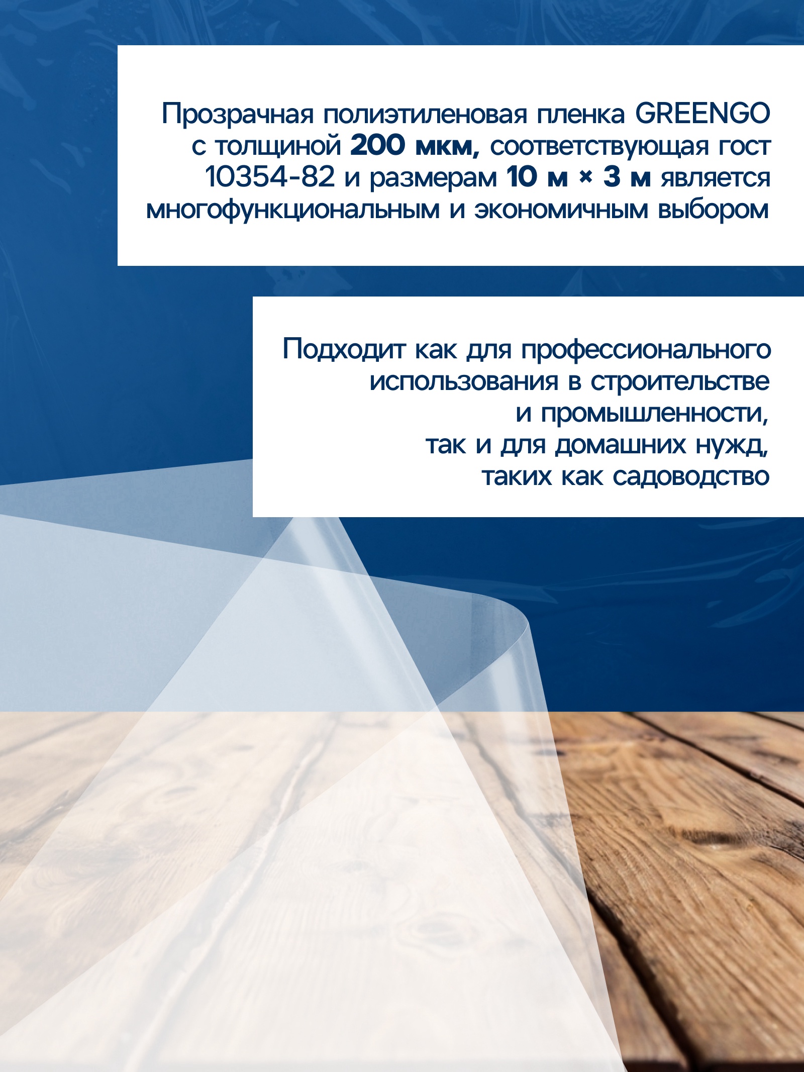 Плёнка полиэтиленовая, толщина 200 мкм, прозрачная, 10 3 м, рукав (1.5 м 2), гост 10354-82, Greengo