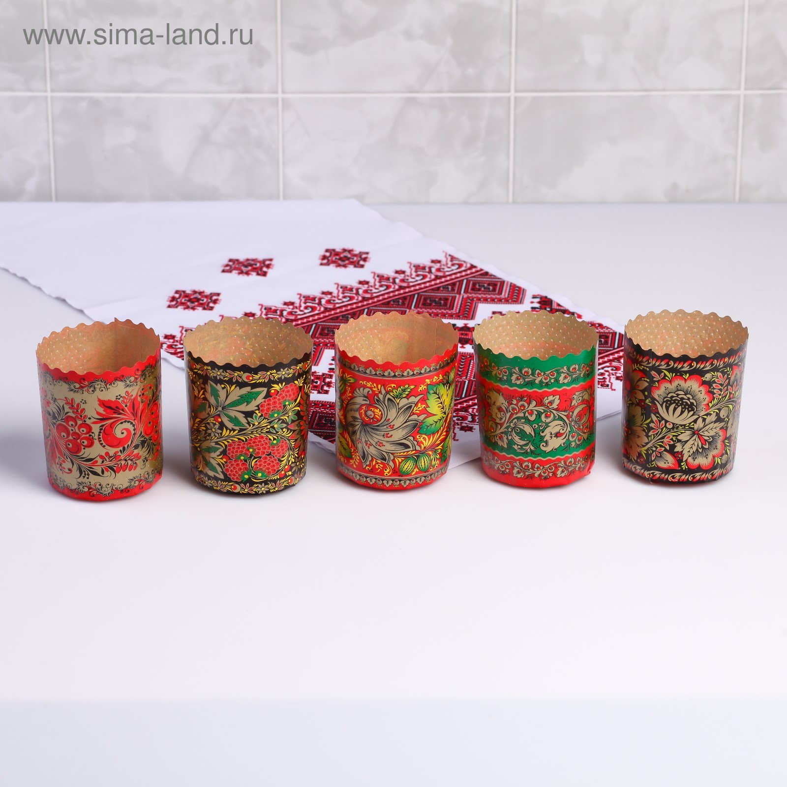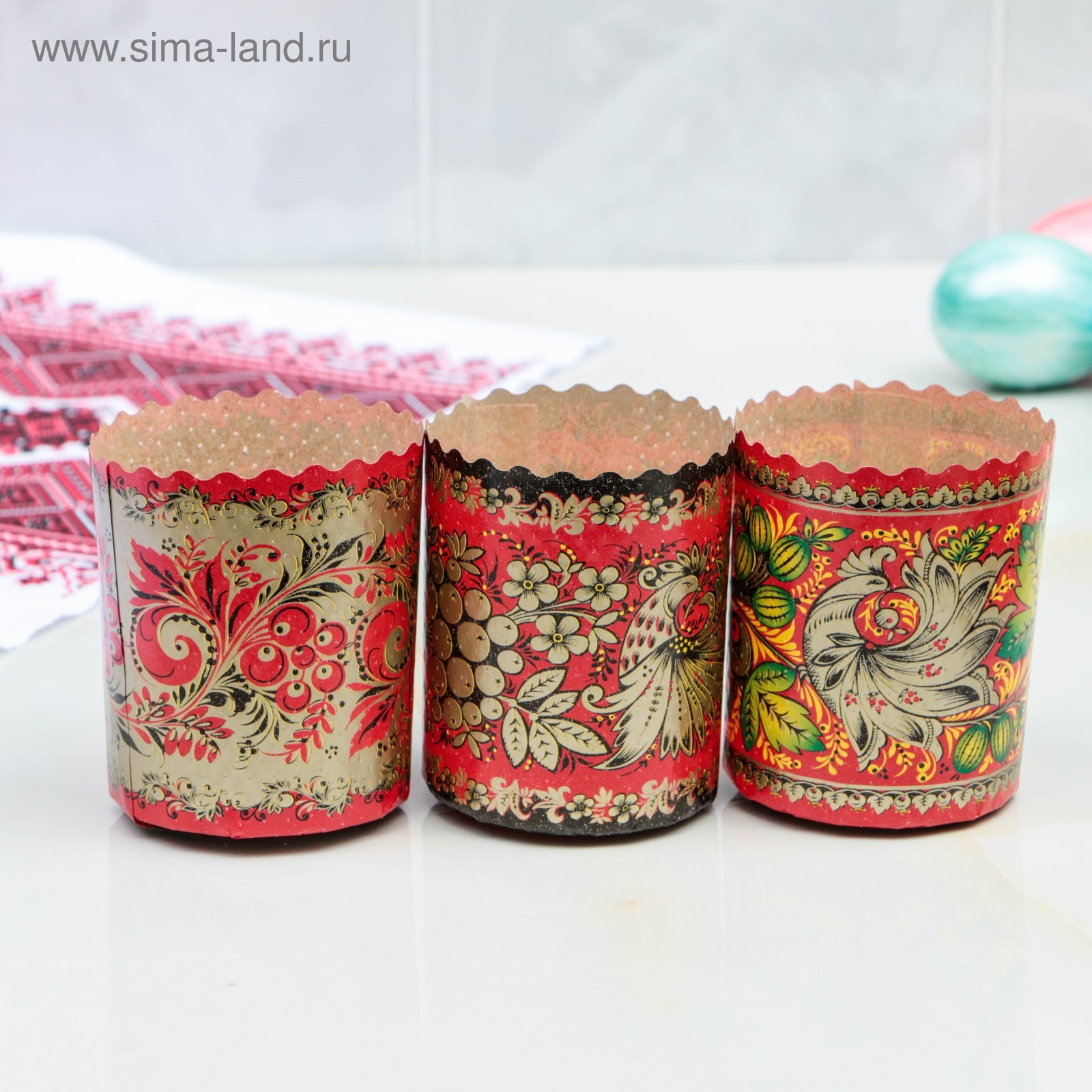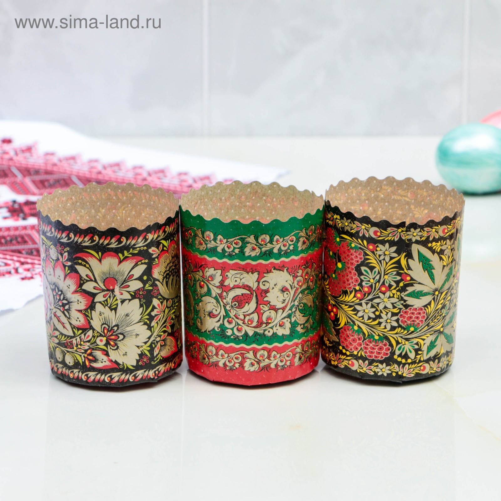 Форма бумажная для кулича "хохлома микс" 70 x 85 мм. Цвет: Разноцветный Форма: Цилиндрическая parts count: 0 Фасовка, шт.: 20 tnved: 4823699000 Крышка: Нет Материал: Пищевая бумага Тип покрытия: Без покрытия Ячейки: Нет Тип формы: Для куличей Разъёмная форма: Нет Назначение: Для кулича, пасхи Температурное ограничение: Нет Использование в духовом шкафу: Да Можно мыть в посудомоечной машине: Нет Форма: Круг, шар, цилиндр  развернуть описание ▼