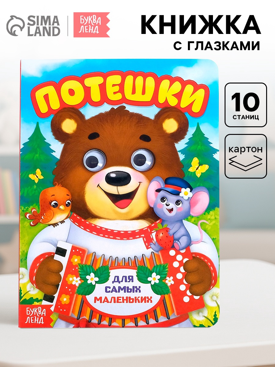 Книжка картонная с глазками «потешки», по 10 стр.. В книге вы найдёте небольшие стихи про милых зверят. Читайте потешки, обучайте кроху простым действиям и помогайте запоминать распорядок дня. Особенности книги Во всех изданиях серии — выразительные глазки. Страничка за страничкой они будут принадлежать разным персонажам и добавлять реалистичности иллюстрациям.Страницы выполнены из плотного картона, поэтому книга будет радовать вас и малыша долгое время.Набор:Нет|Формат:А5+|Возраст:От 0 месяцев|Количество страниц:10|Тип:С глазками|Язык издания:Русский|Автор:Народное творчество|Страна:Россия  развернуть описание ▼